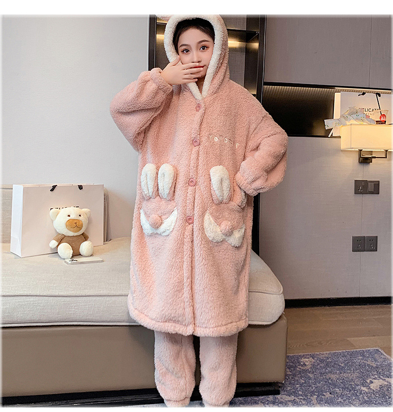 睡衣儿童珊瑚绒洋气加厚冬季女童可爱保暖睡袍小女孩法兰绒居家服