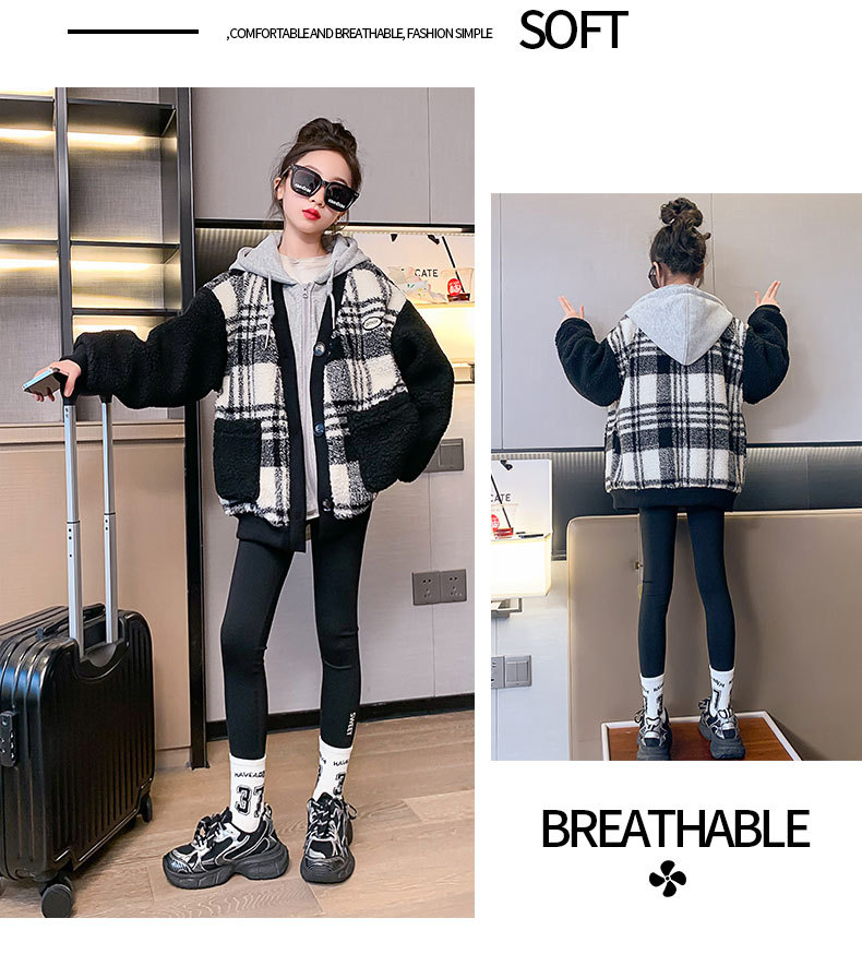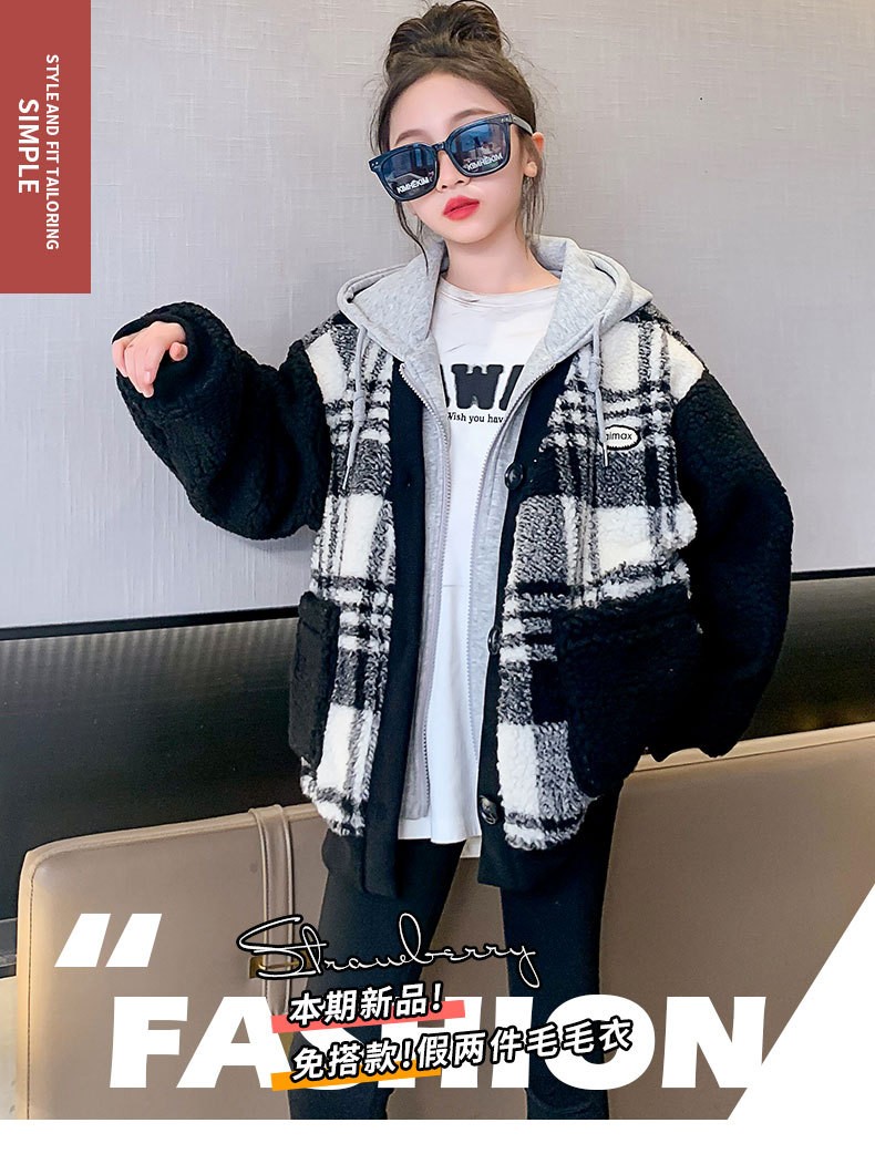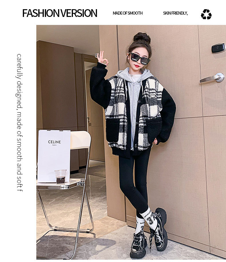 女童加厚外套秋冬2023新款儿童时髦洋气夹克大童羊羔绒保暖毛毛衣