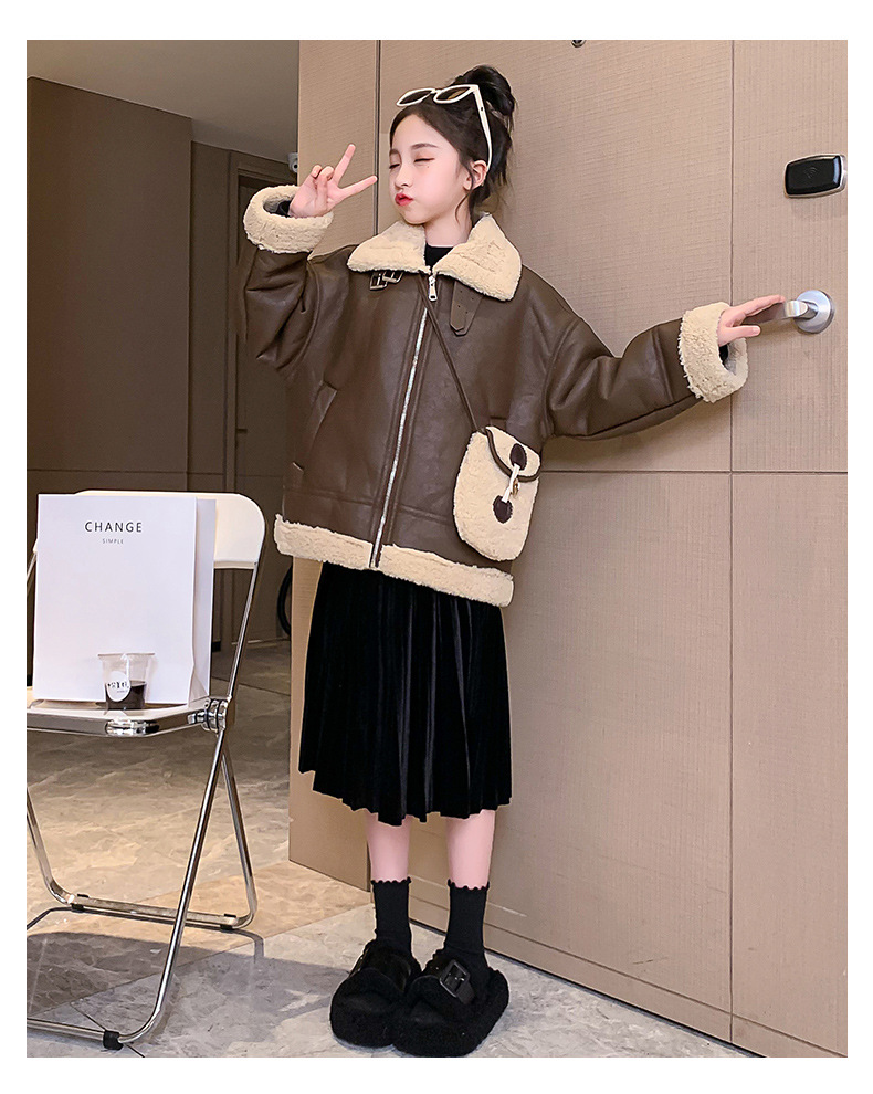 女童加绒外套2023新款冬季加厚儿童皮棉衣洋气大童派克服棉服冬装