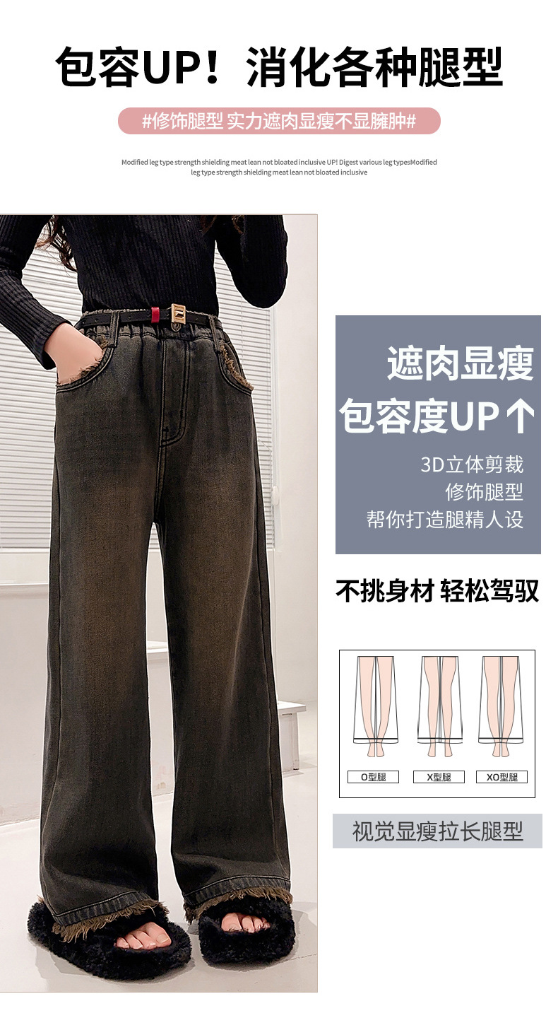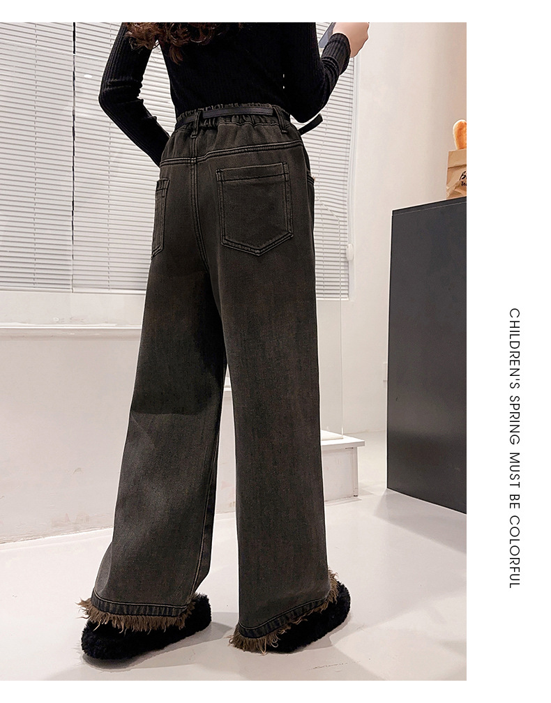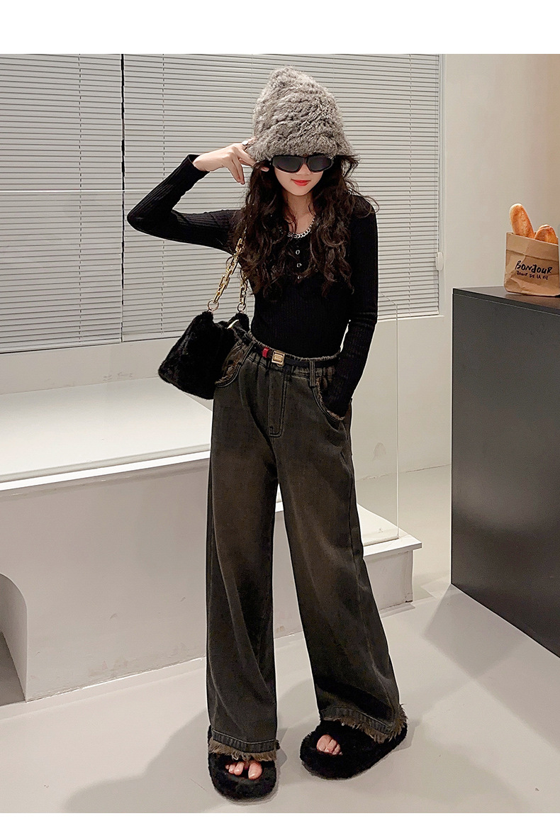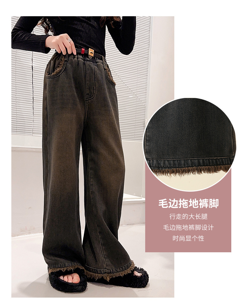 女童牛仔阔腿裤加绒加厚儿童秋冬装直筒休闲长裤子宽松洋气中大童