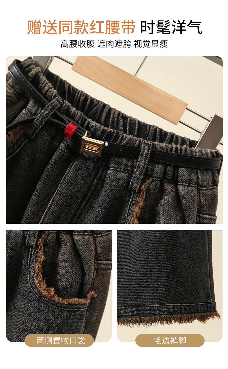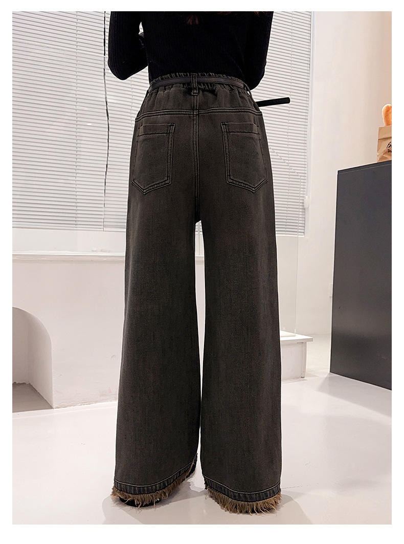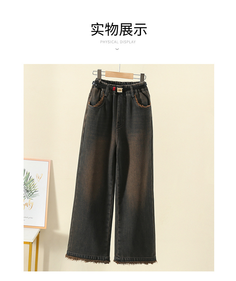 女童牛仔阔腿裤加绒加厚儿童秋冬装直筒休闲长裤子宽松洋气中大童