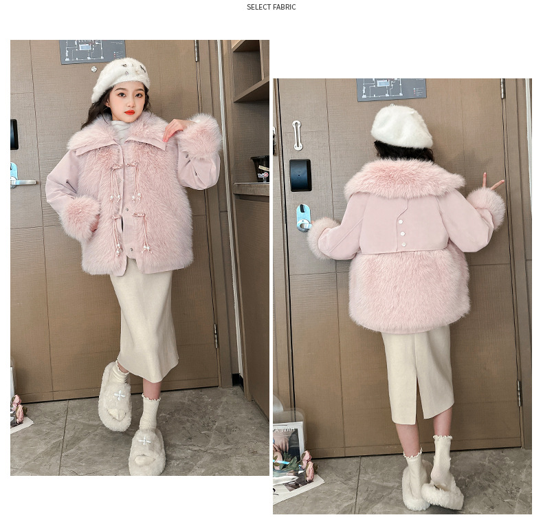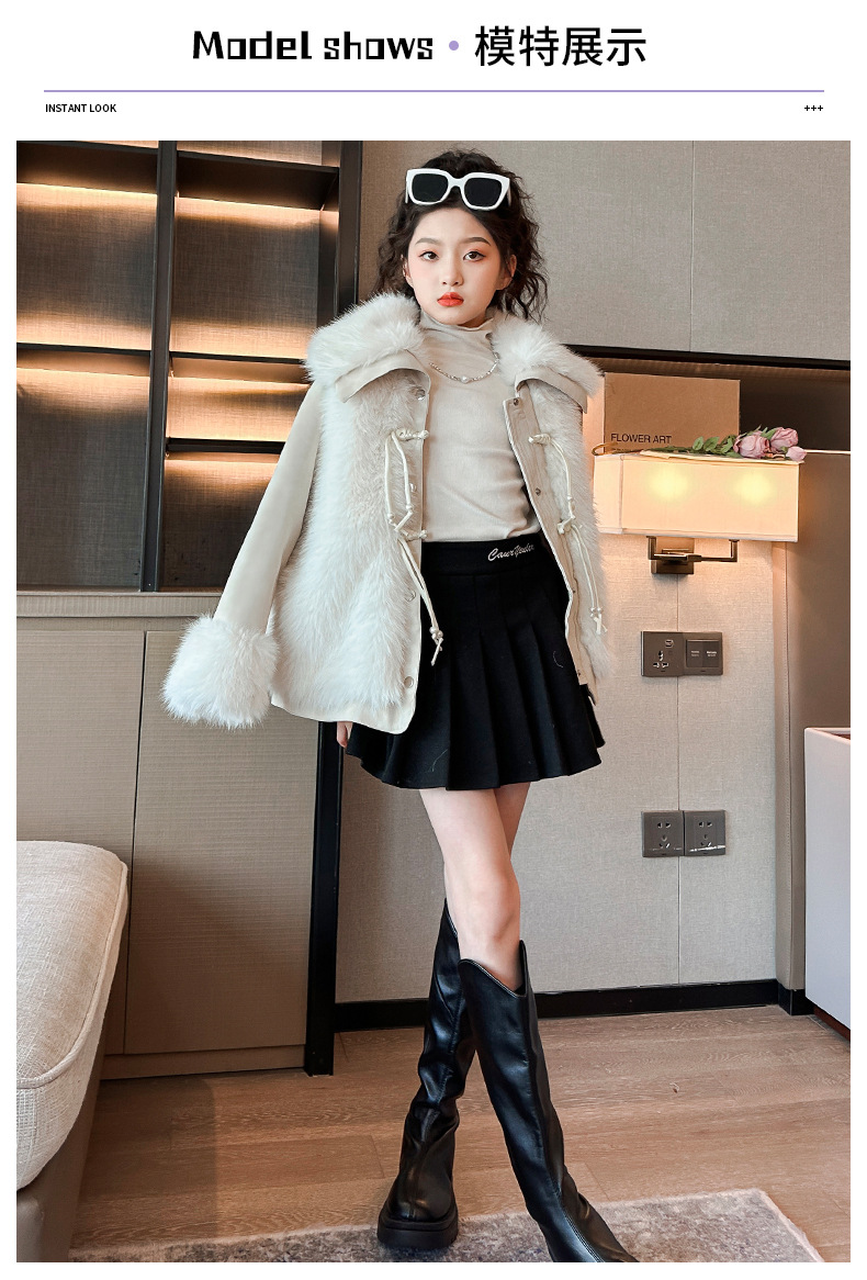 女童小香风外套2023新款秋冬款加绒加厚儿童皮毛一体洋气大童网红