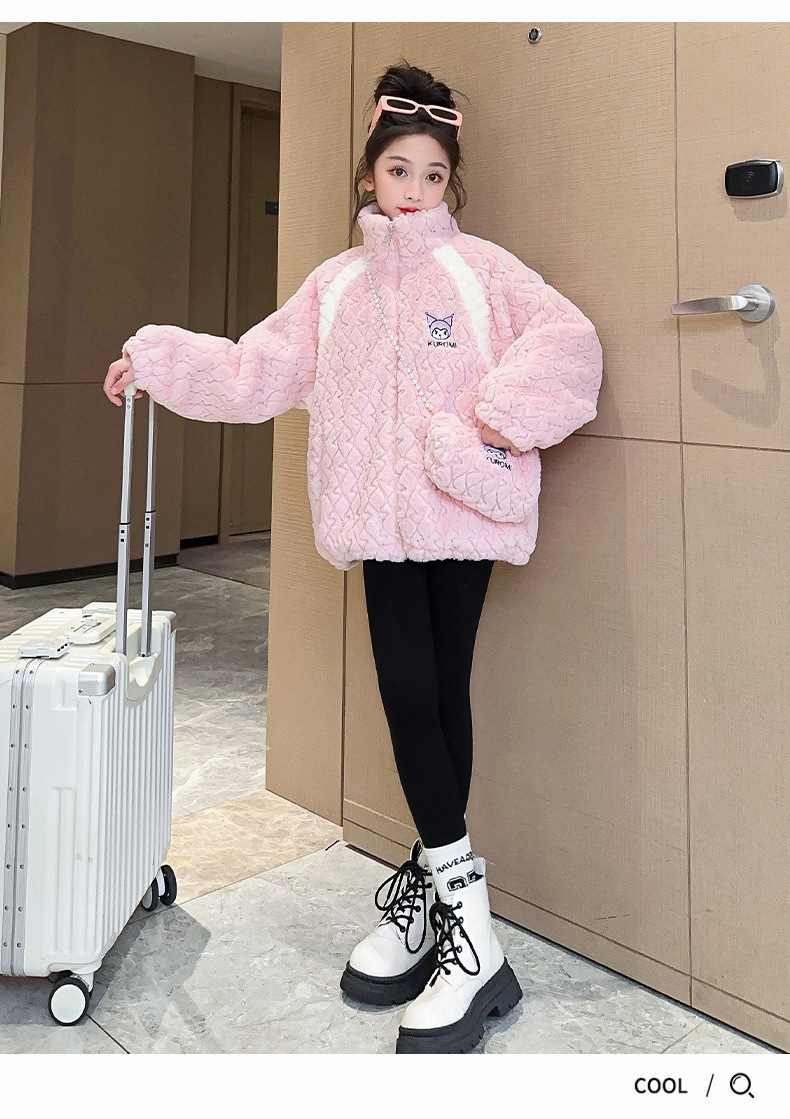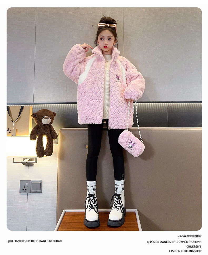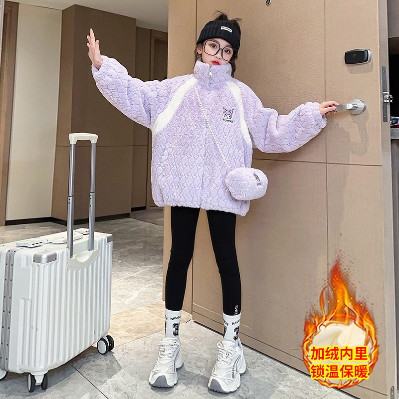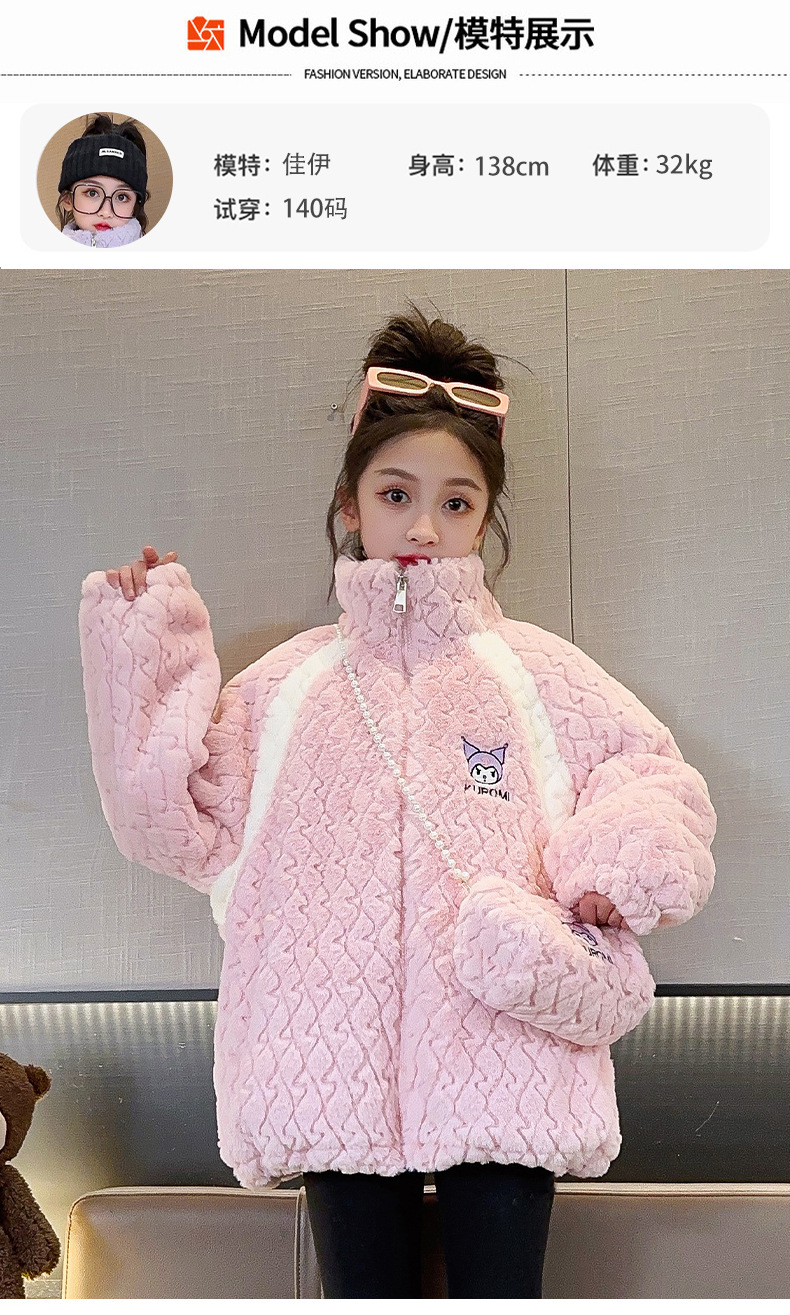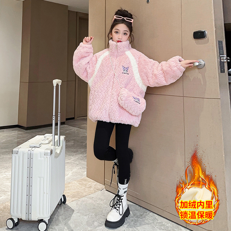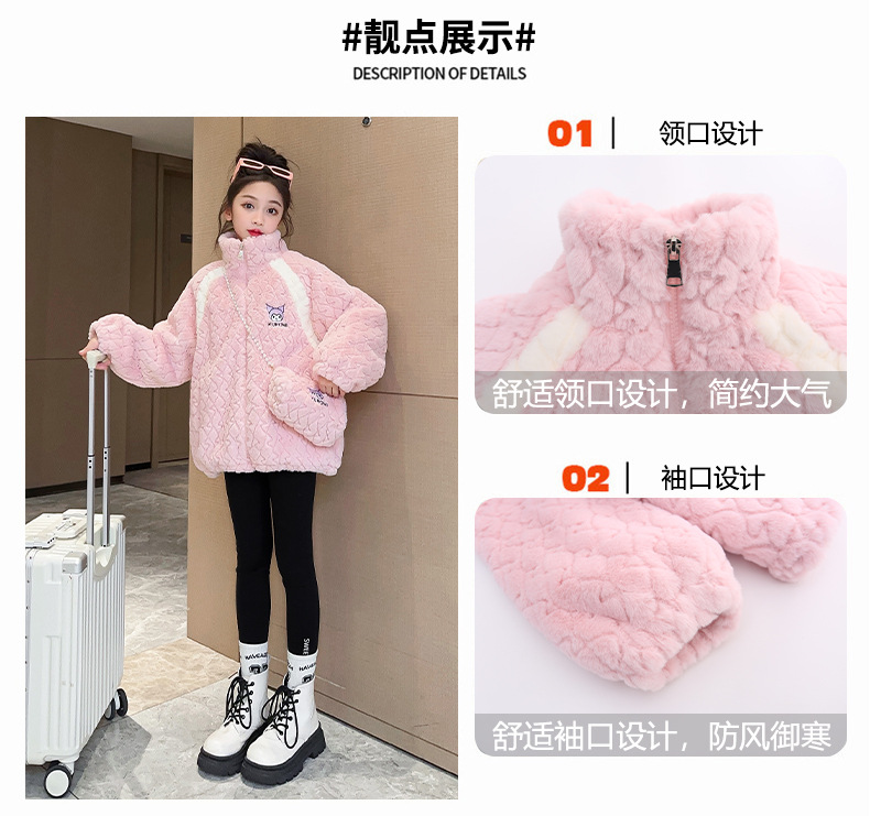 女童秋冬装外套2023新款洋气小女孩加绒加厚时髦羊羔绒毛毛衣外套
