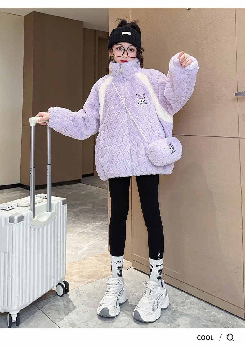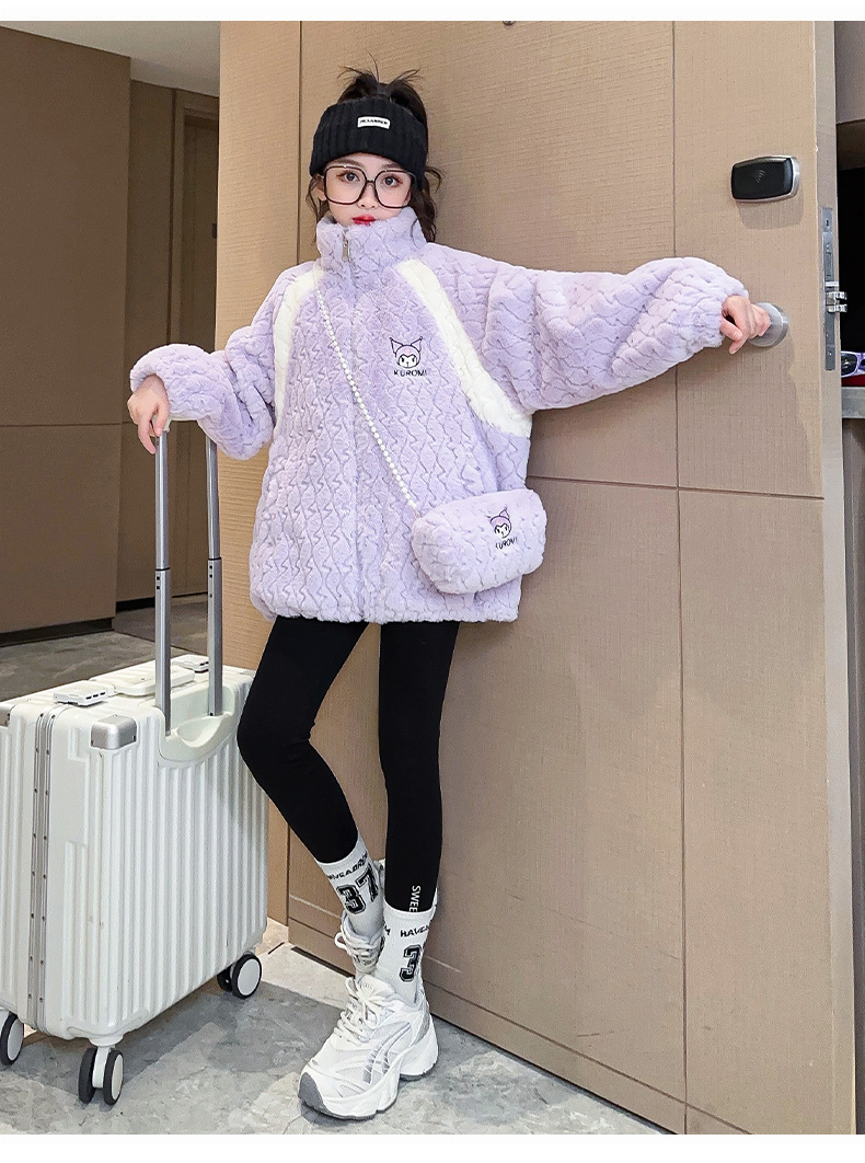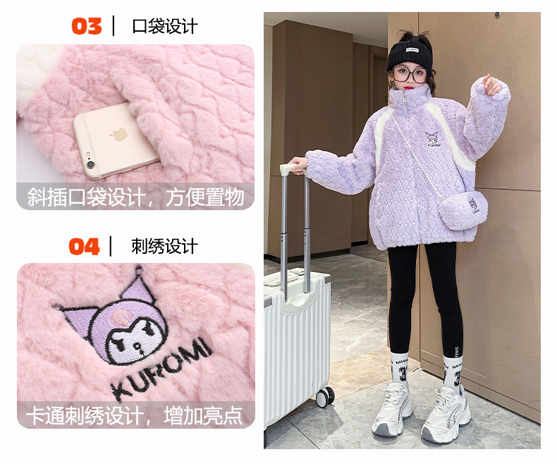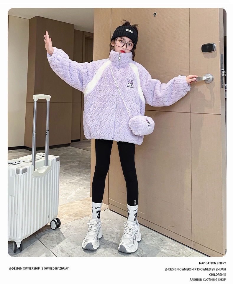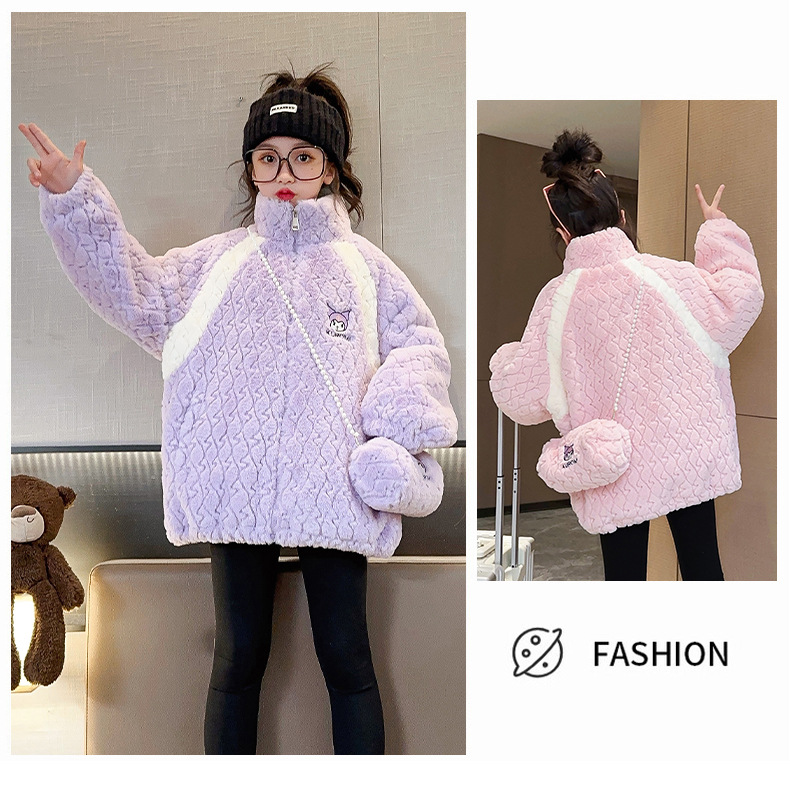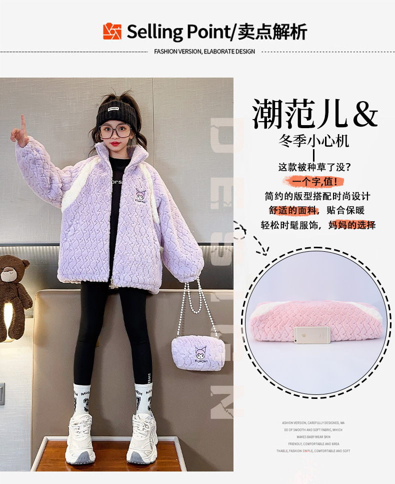 女童秋冬装外套2023新款洋气小女孩加绒加厚时髦羊羔绒毛毛衣外套