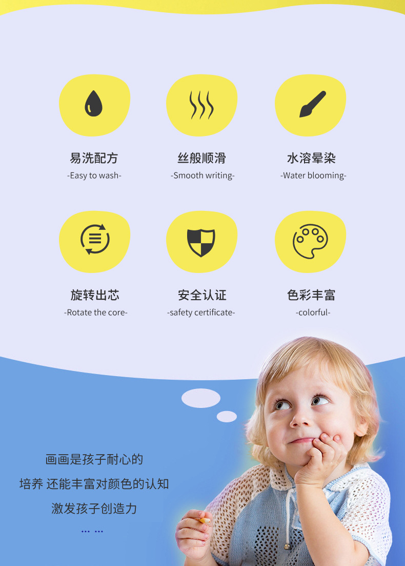 水溶性炫彩棒24色旋转蜡笔学生画笔丝滑口红笔画室幼儿园机构批发