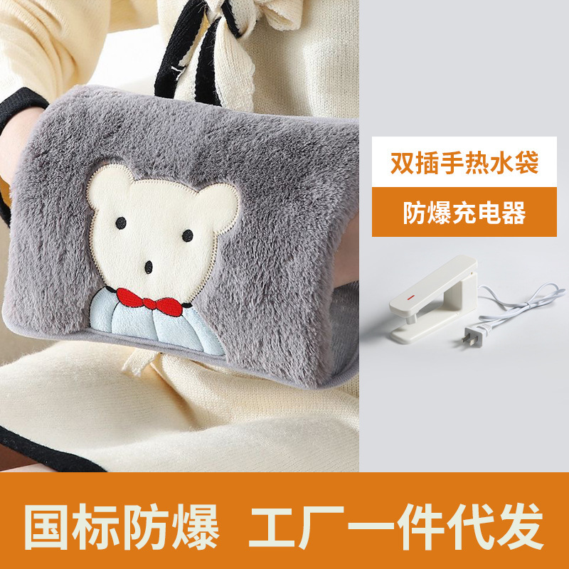 国标防爆热水袋充电式暖手宝毛绒暖水袋暖宝宝注水冬季款彩盒装