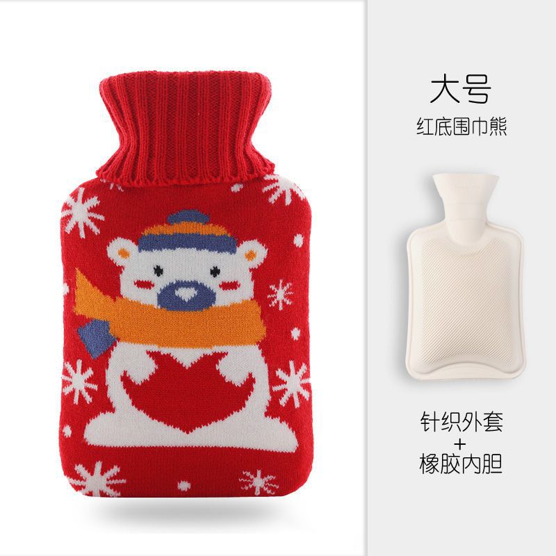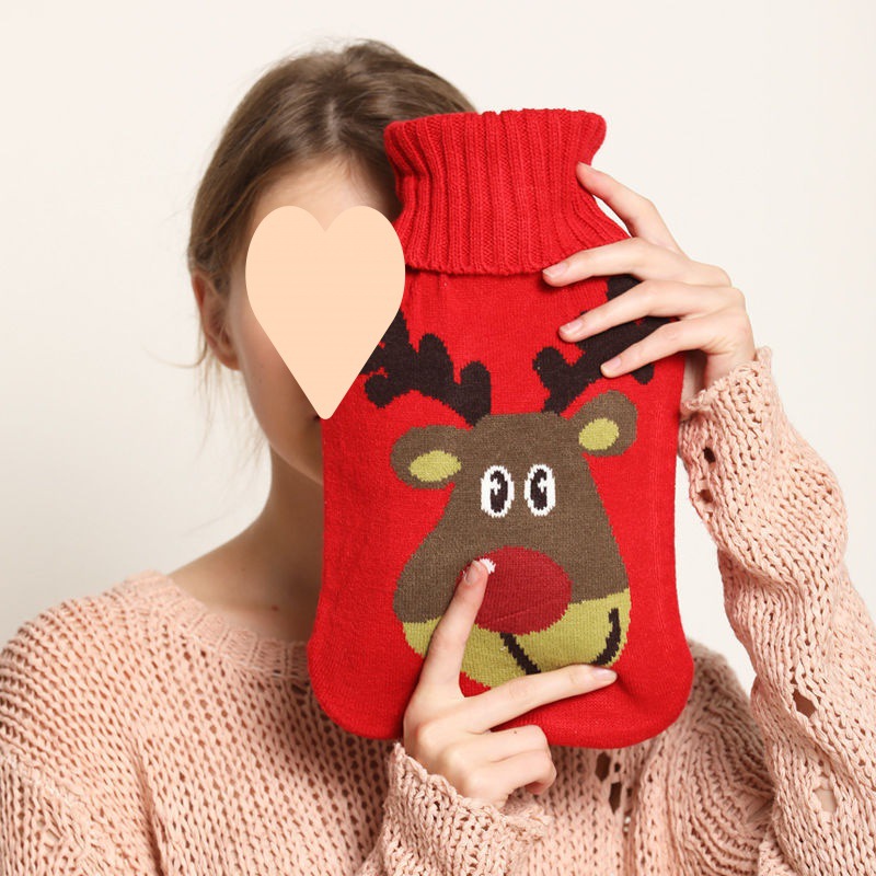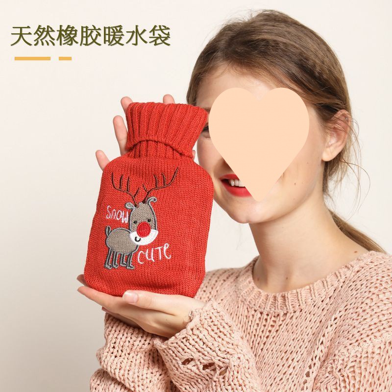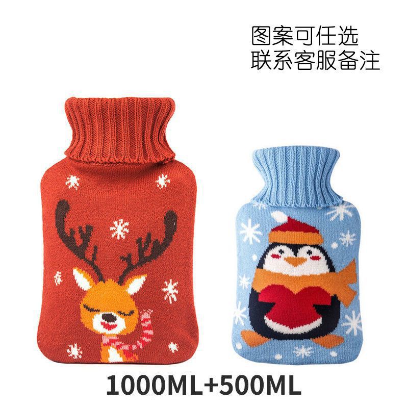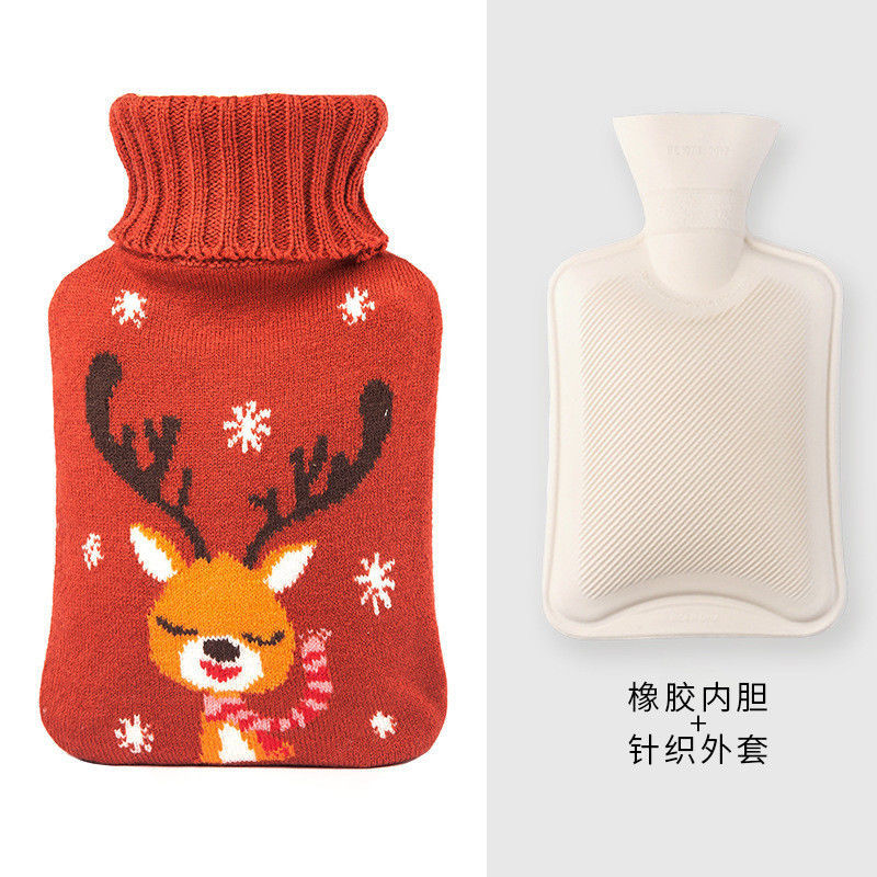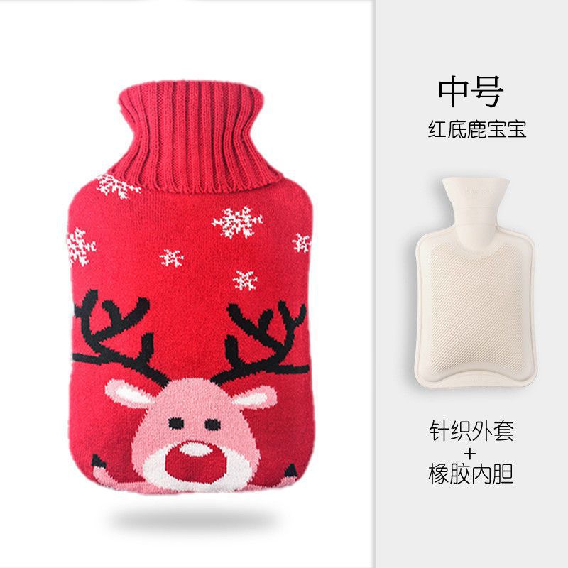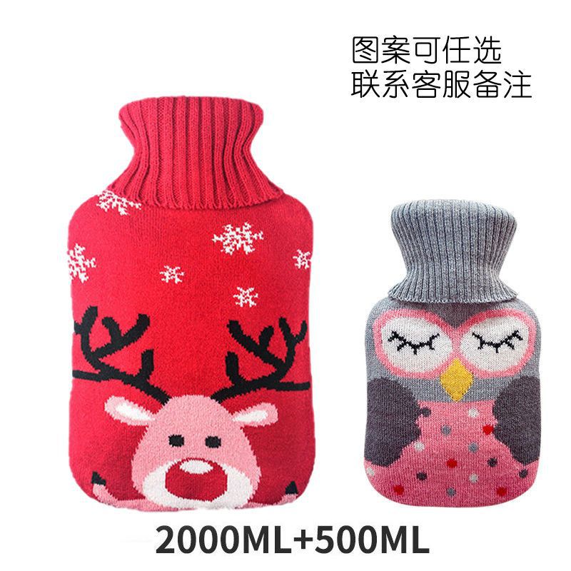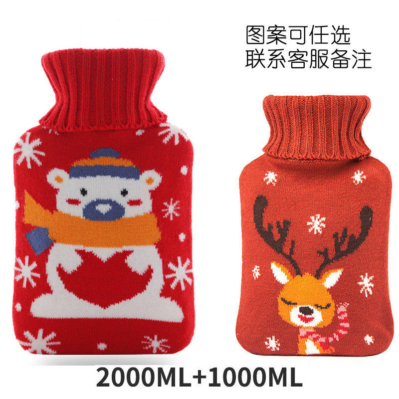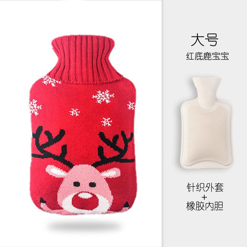 圣诞水袋卡通毛线编织暖水袋橡胶暖手宝式针织加厚防爆暖水袋