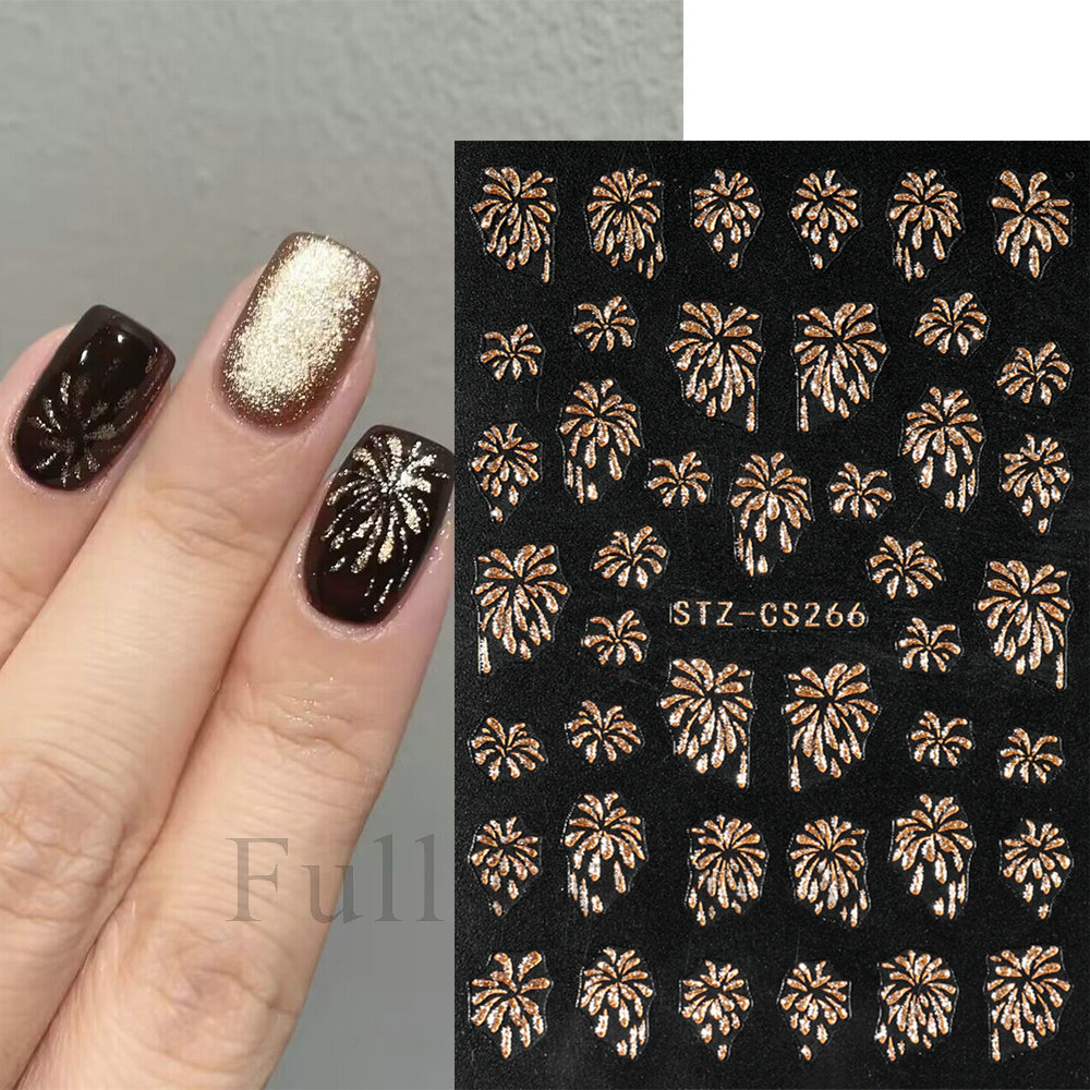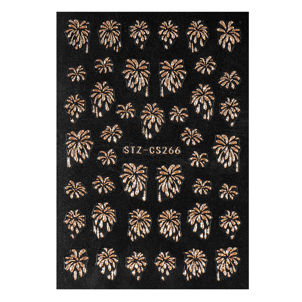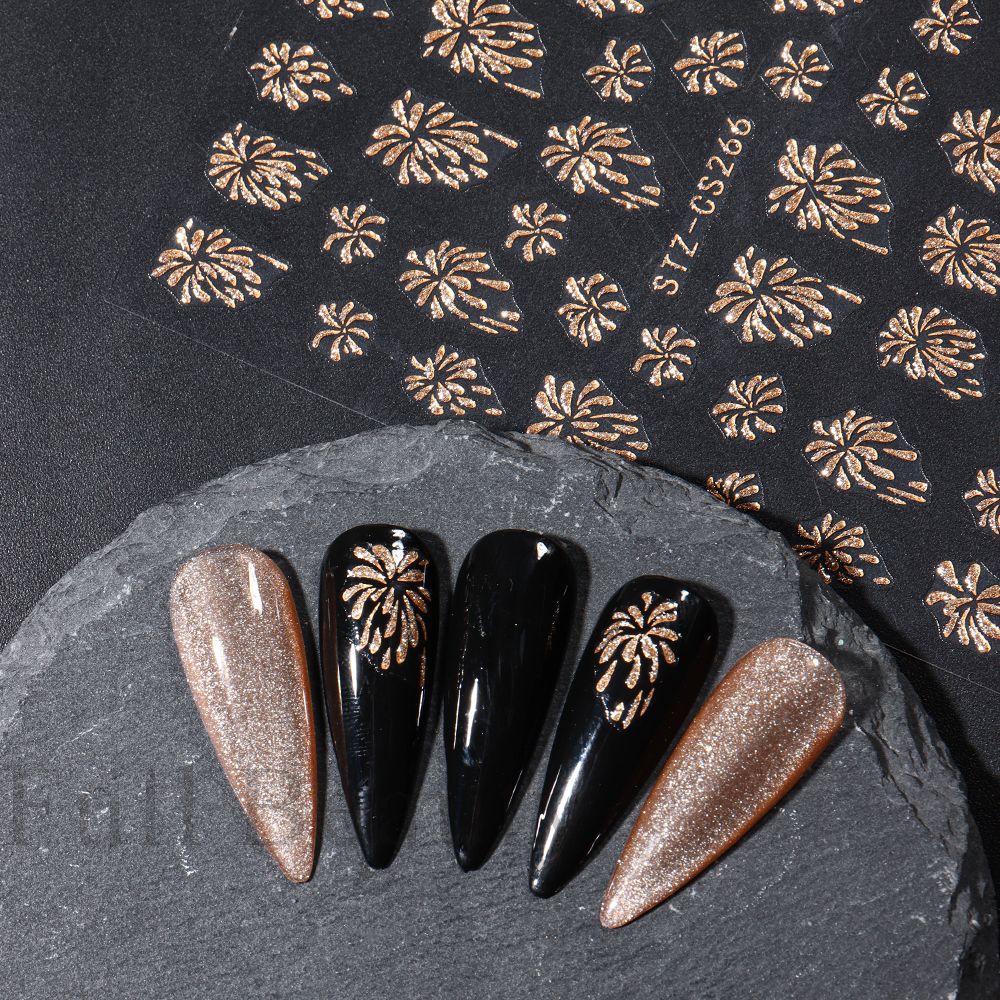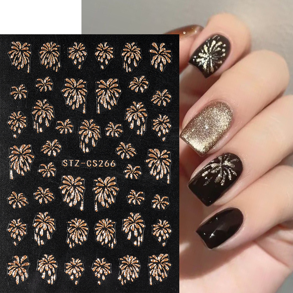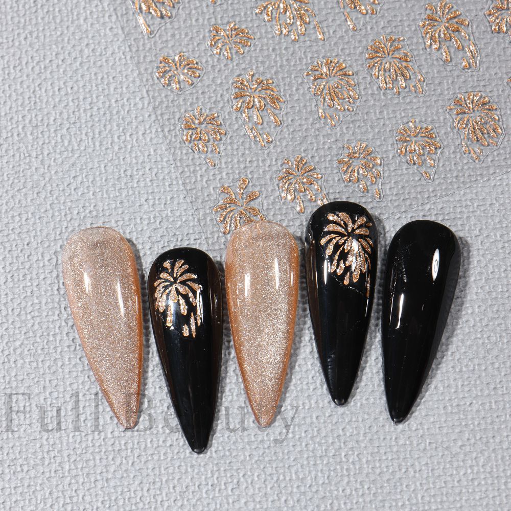 新款新年烟花美甲贴纸 3D渐变香槟金银炫彩烟花背胶指甲贴花批发