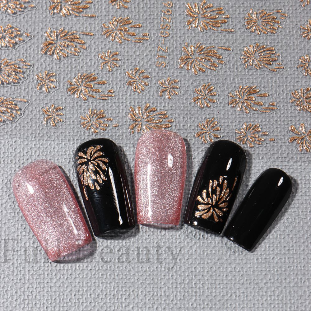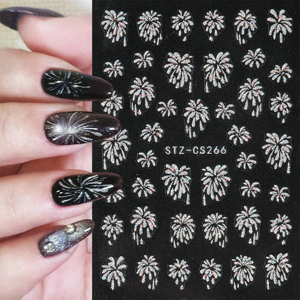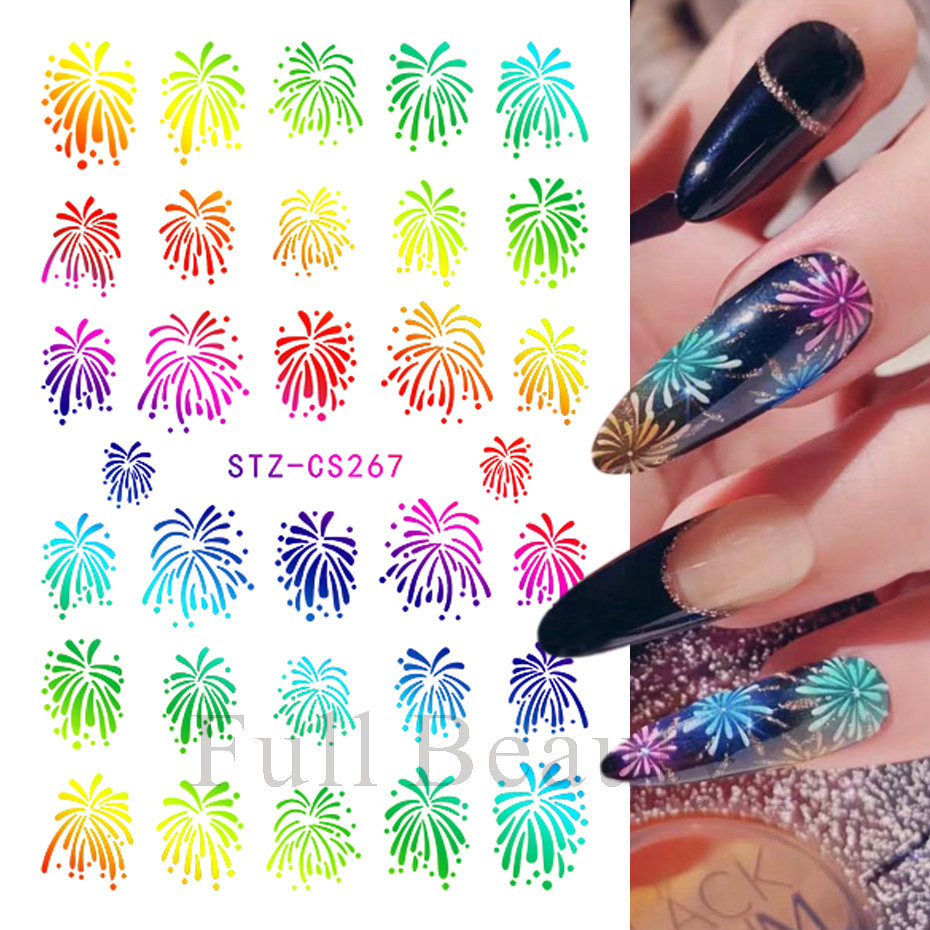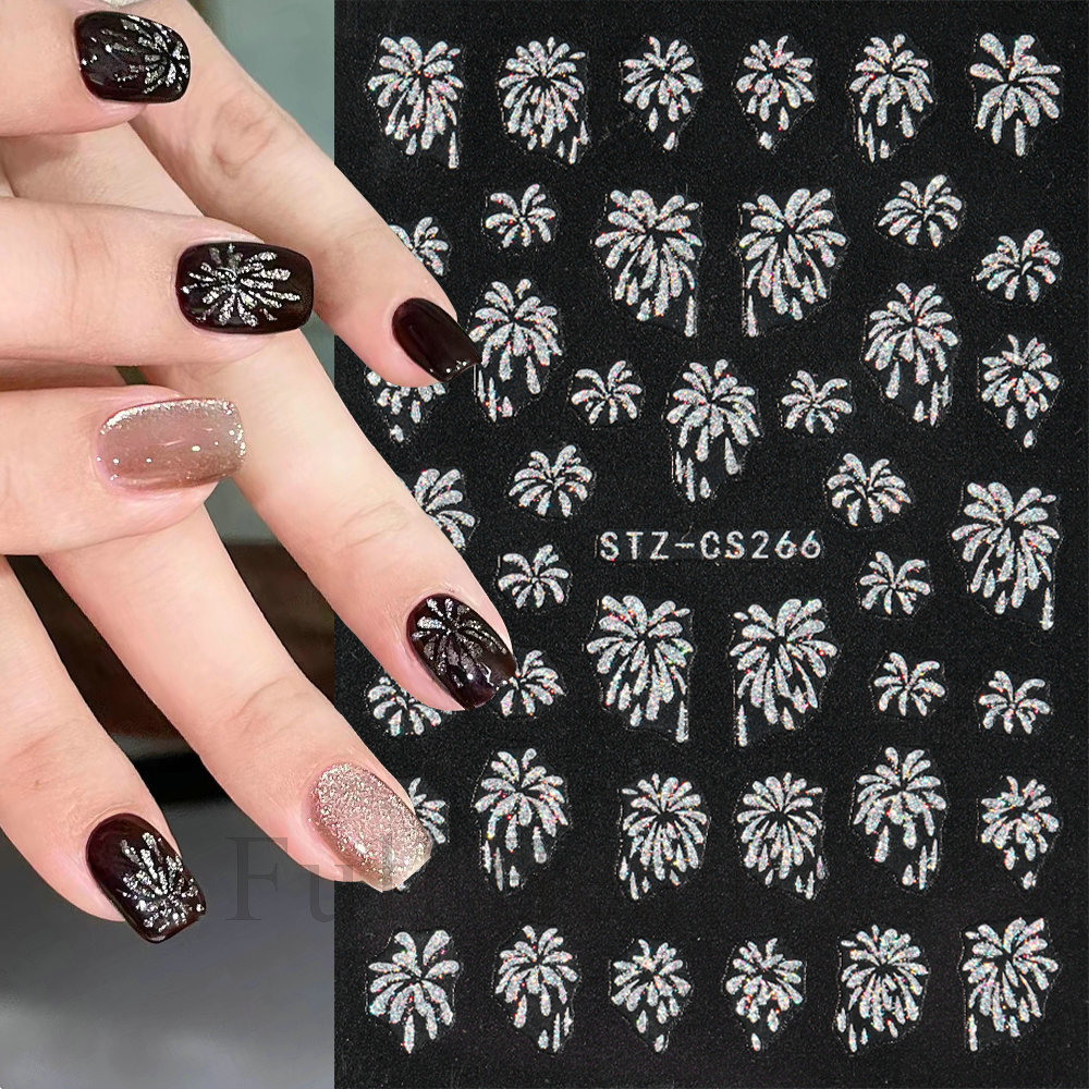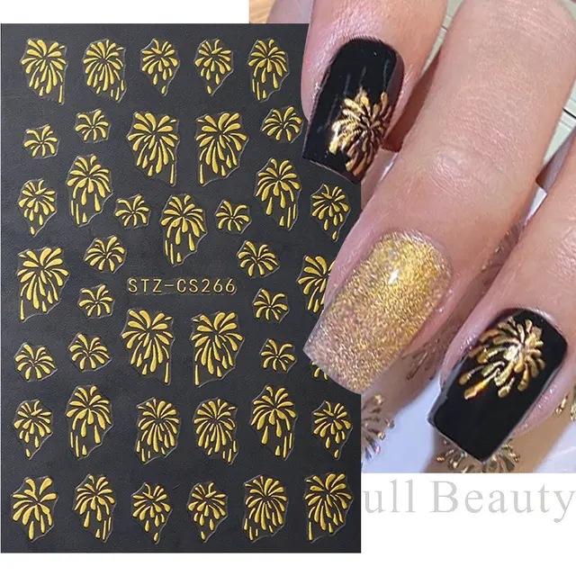 新款新年烟花美甲贴纸 3D渐变香槟金银炫彩烟花背胶指甲贴花批发