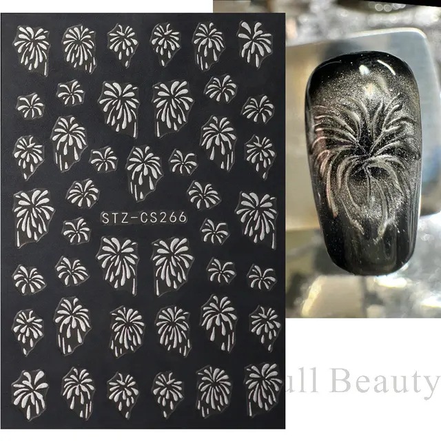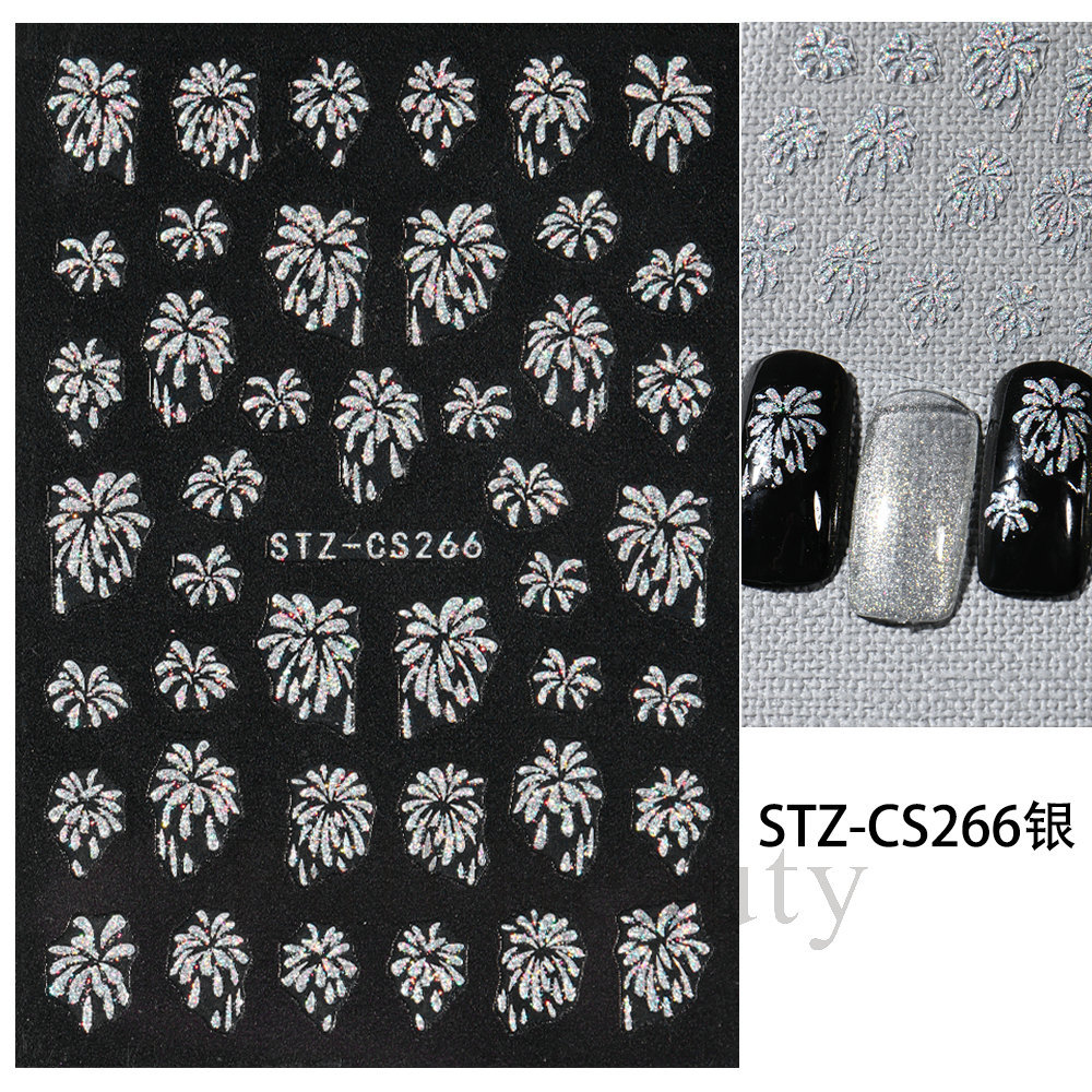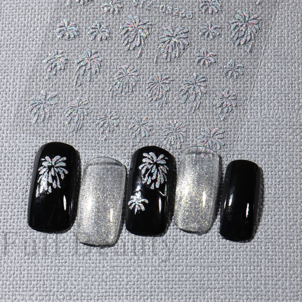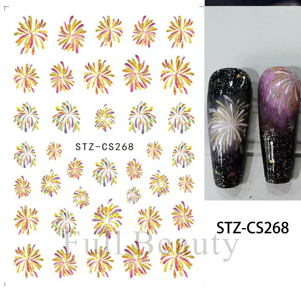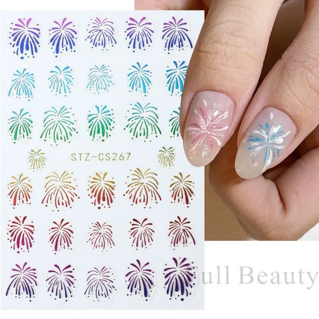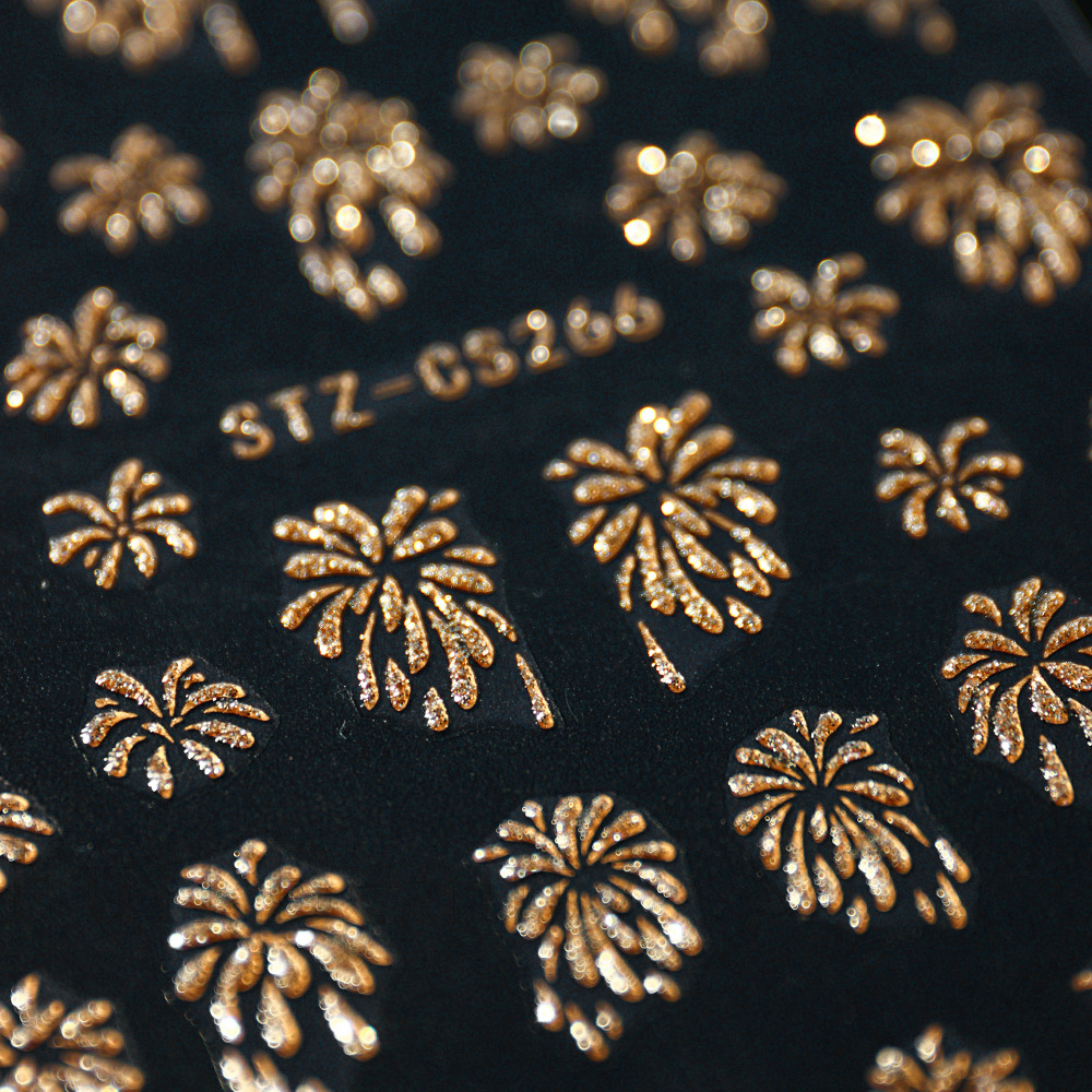 新款新年烟花美甲贴纸 3D渐变香槟金银炫彩烟花背胶指甲贴花批发
