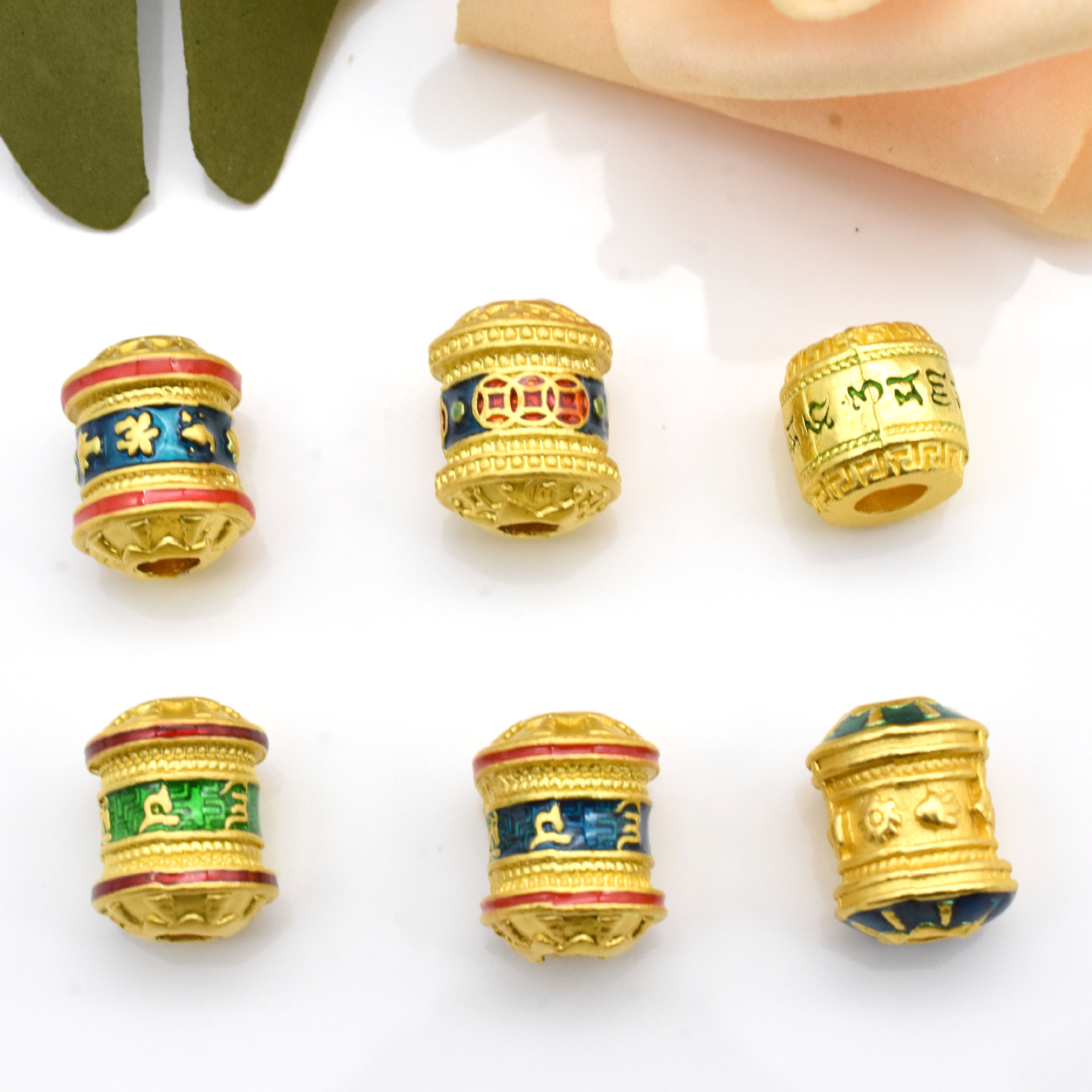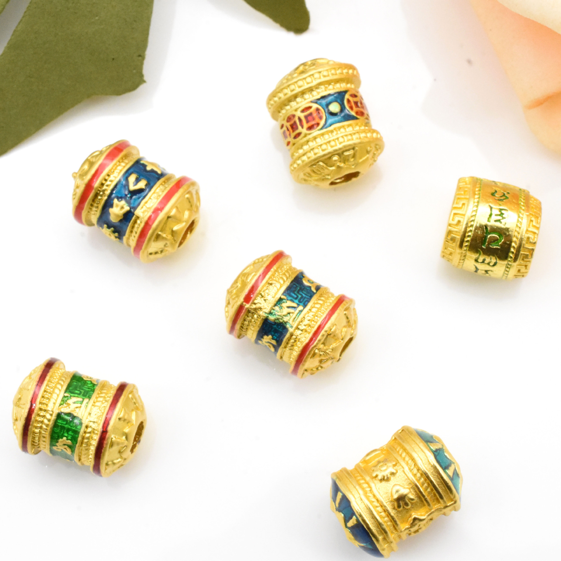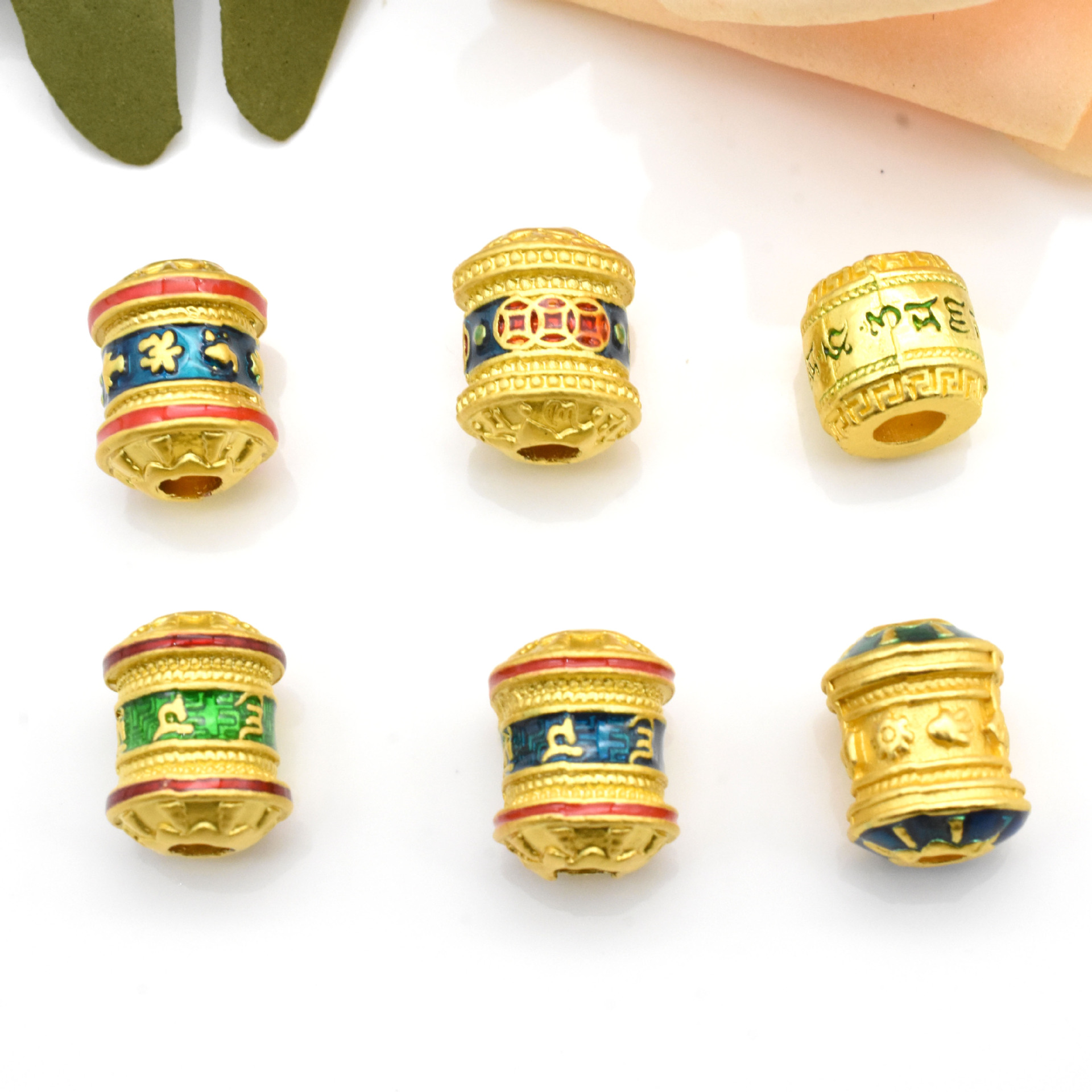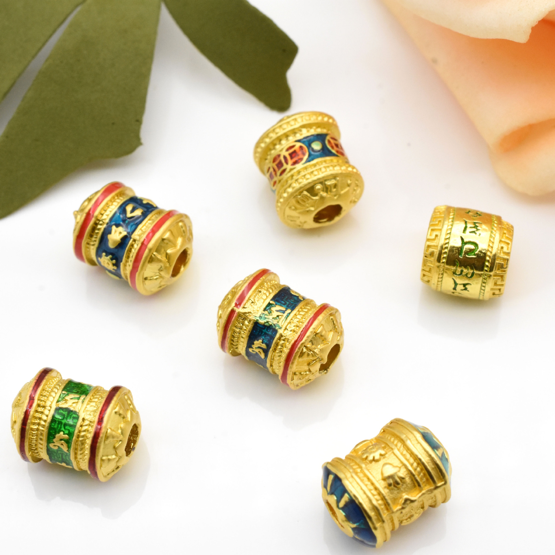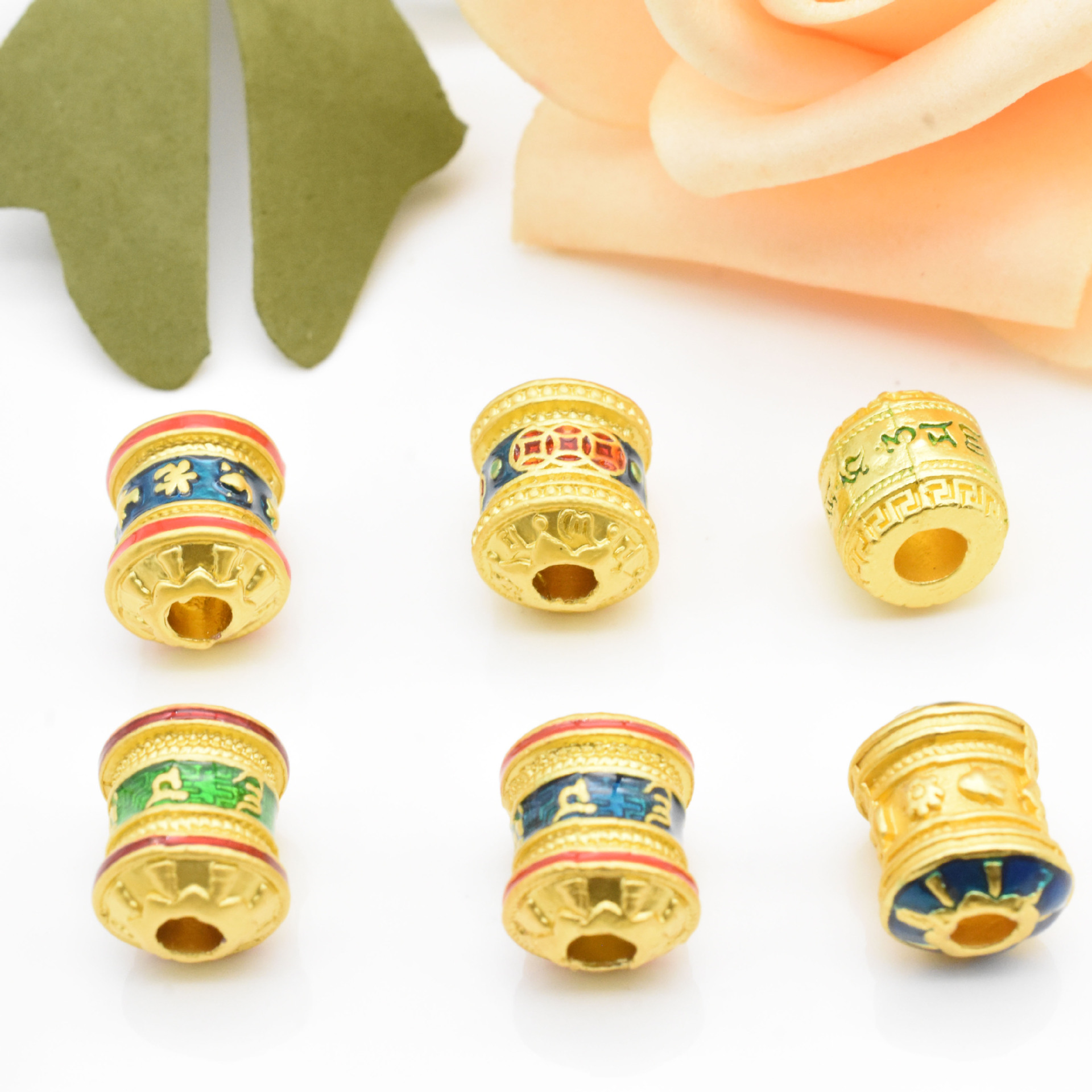 古法金串珠六字真言桶珠八字真言串珠钱币diy隔珠沙金配件批发