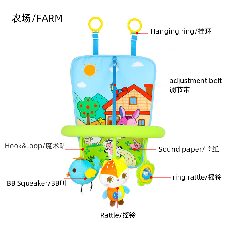彩色婴儿汽车座椅脚踏健身架宝宝床挂多功能锻炼毛绒玩具