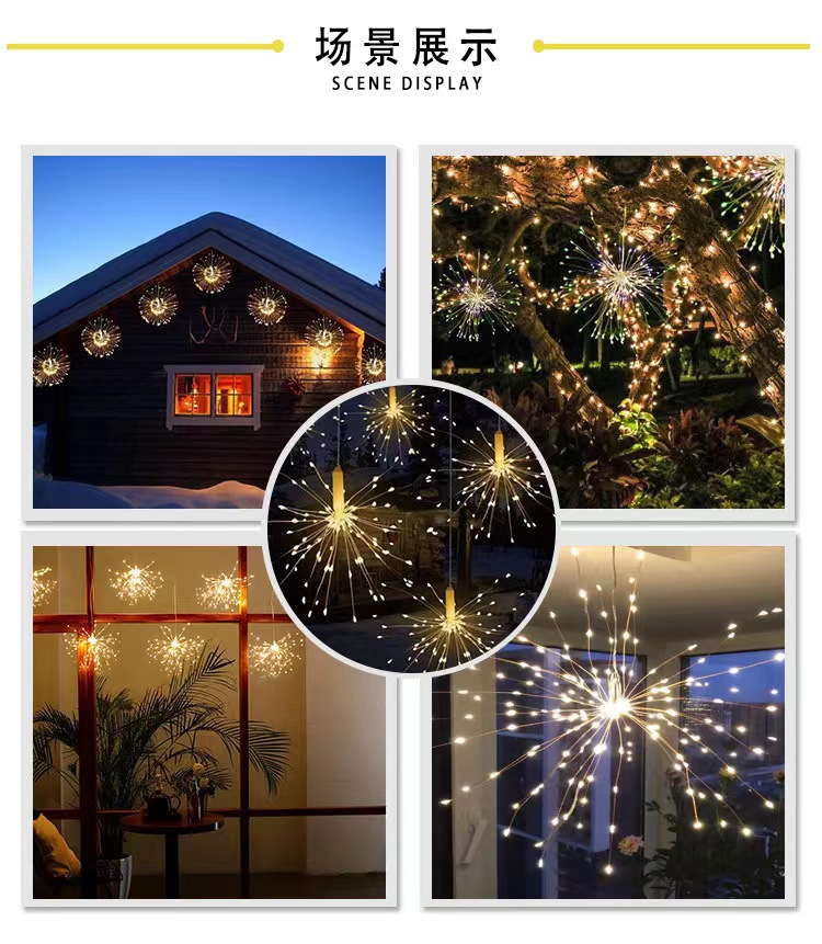 跨境户外派对LED爆炸星蒲公英铜线灯太阳能氛围装饰烟花圣诞灯带