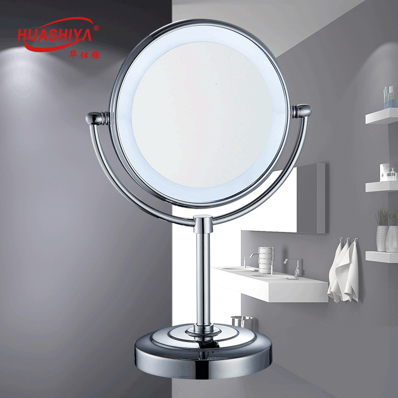 LED灯镀铬浴室镜伸缩美容镜男士化妆镜创意旋转化妆镜台式