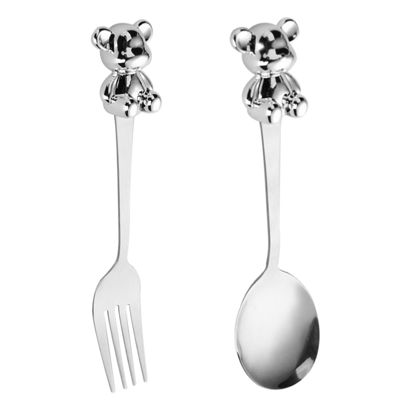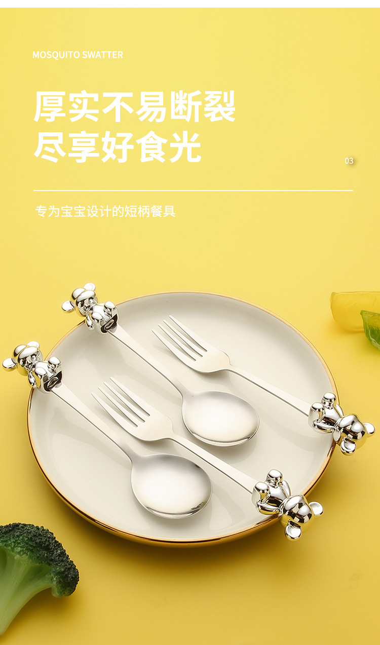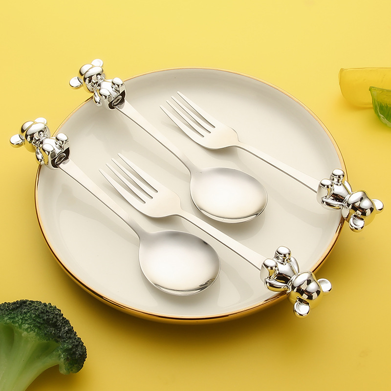 跨境不锈钢勺叉餐具高颜值儿童吃饭辅食勺甜品勺水果叉牛排叉批发