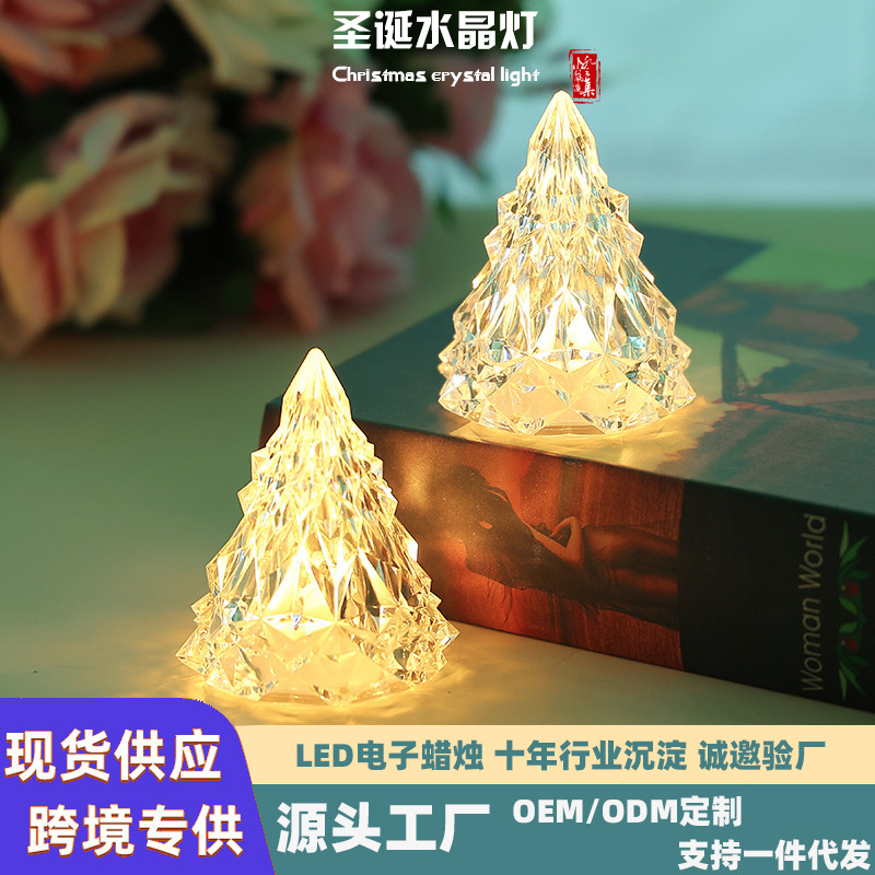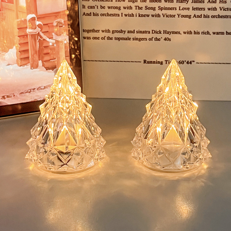 水晶冰山圣诞树灯创意圣诞节装饰摆件氛围灯跨境专供电子蜡烛灯