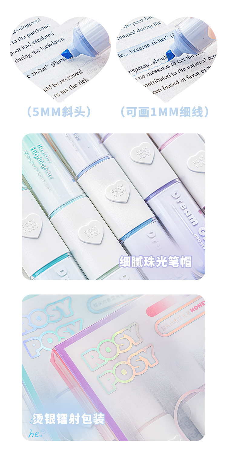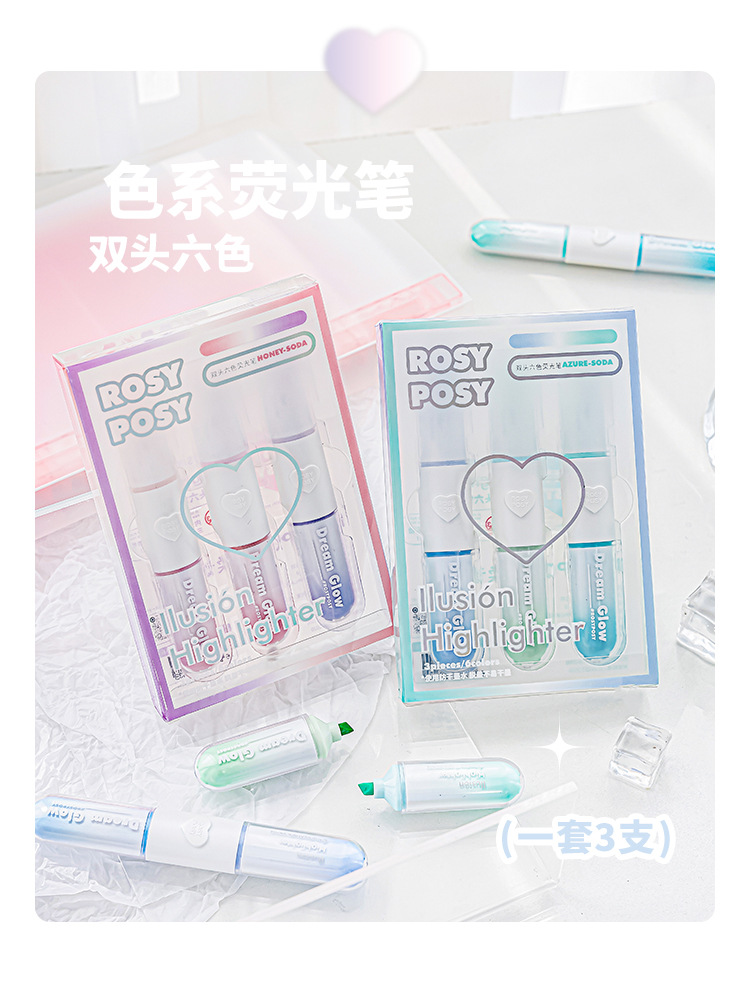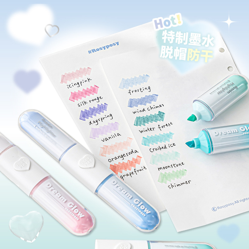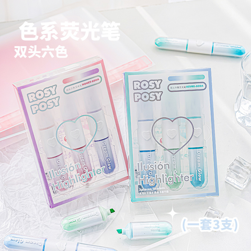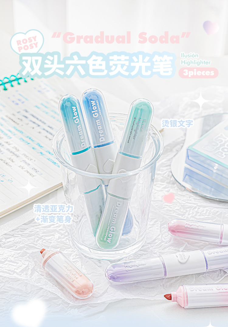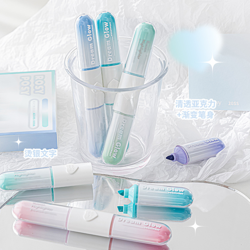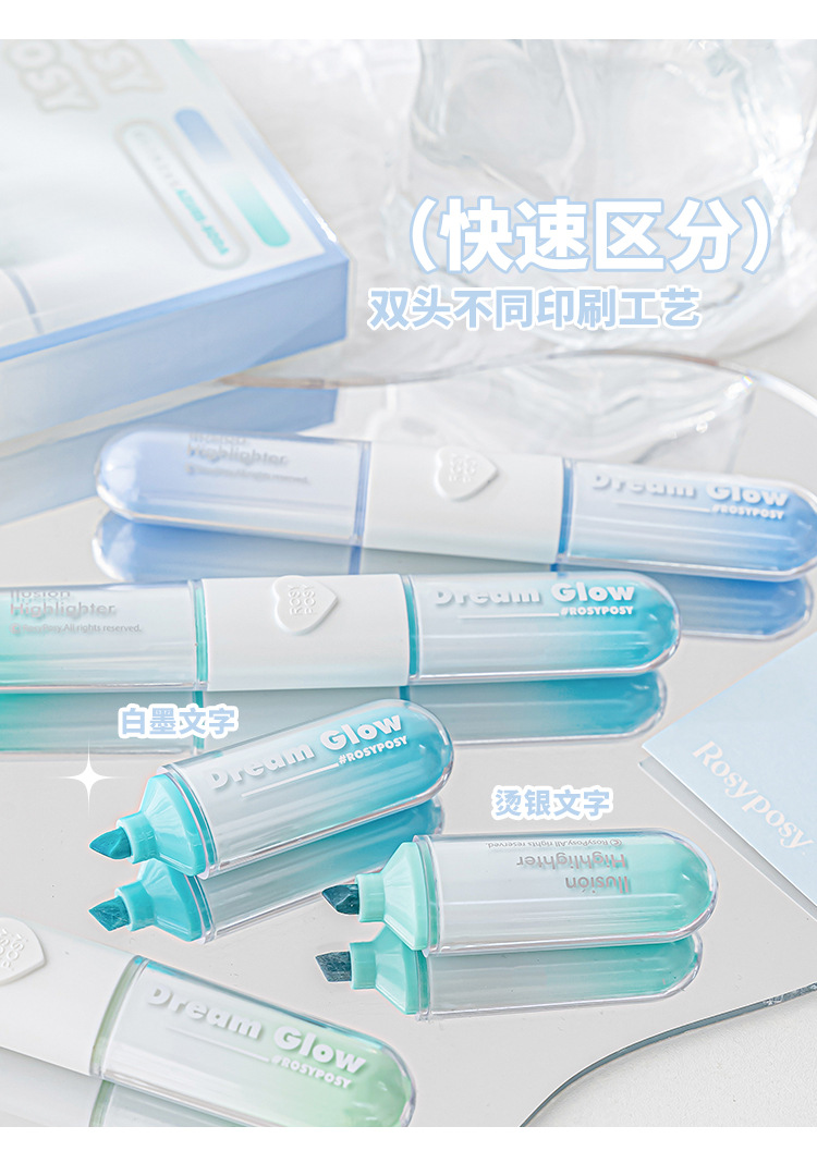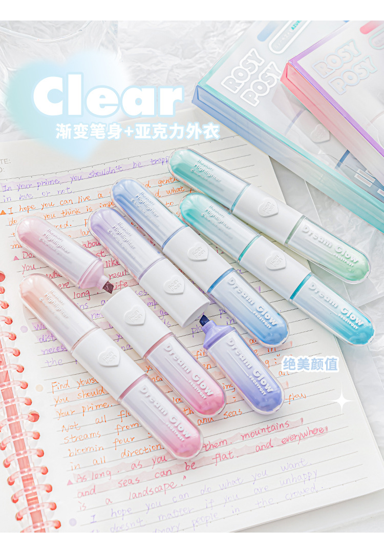 RosyPosy ilusion双头六色荧光笔 清透亚克力渐变笔身奶油荧光笔
