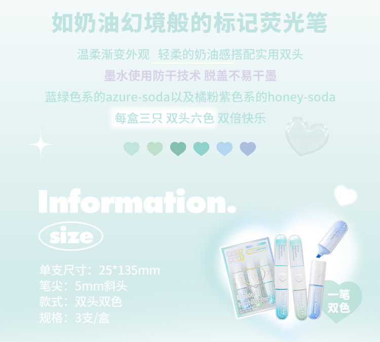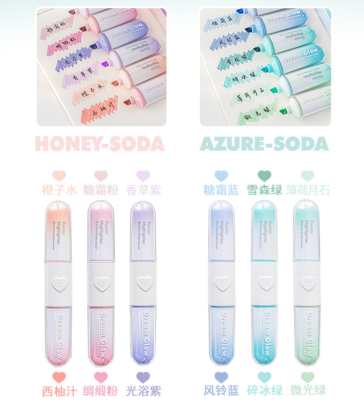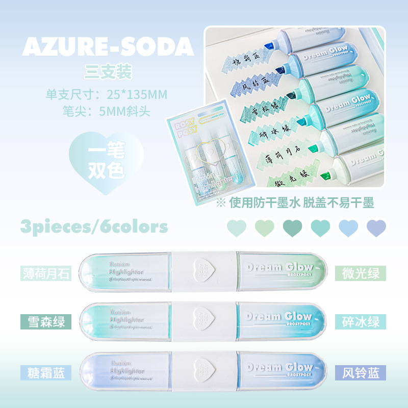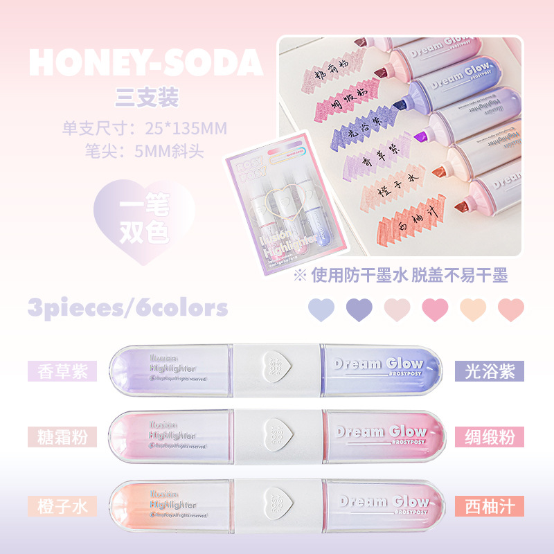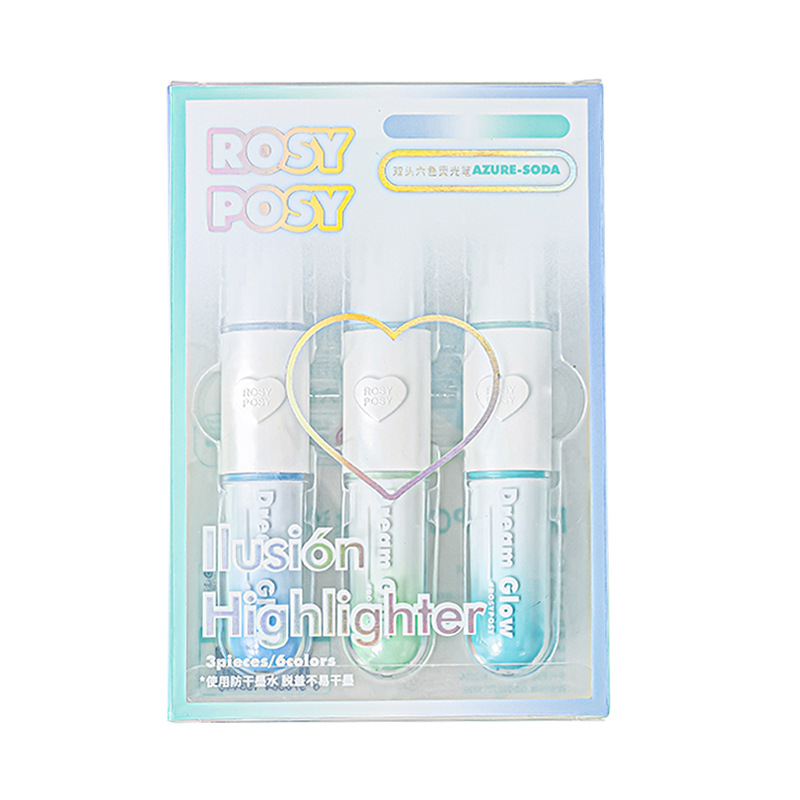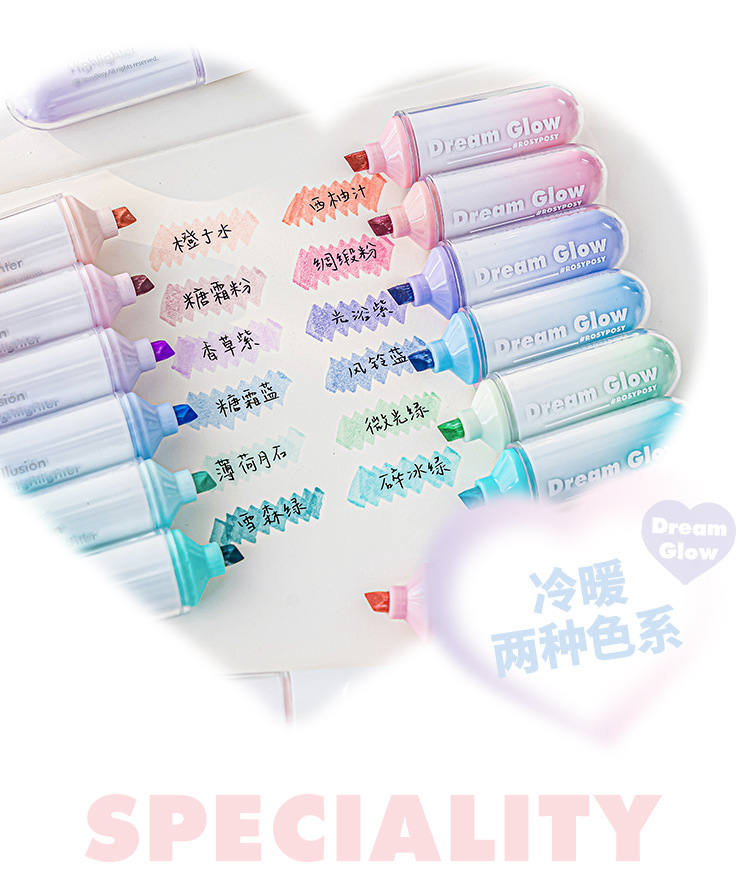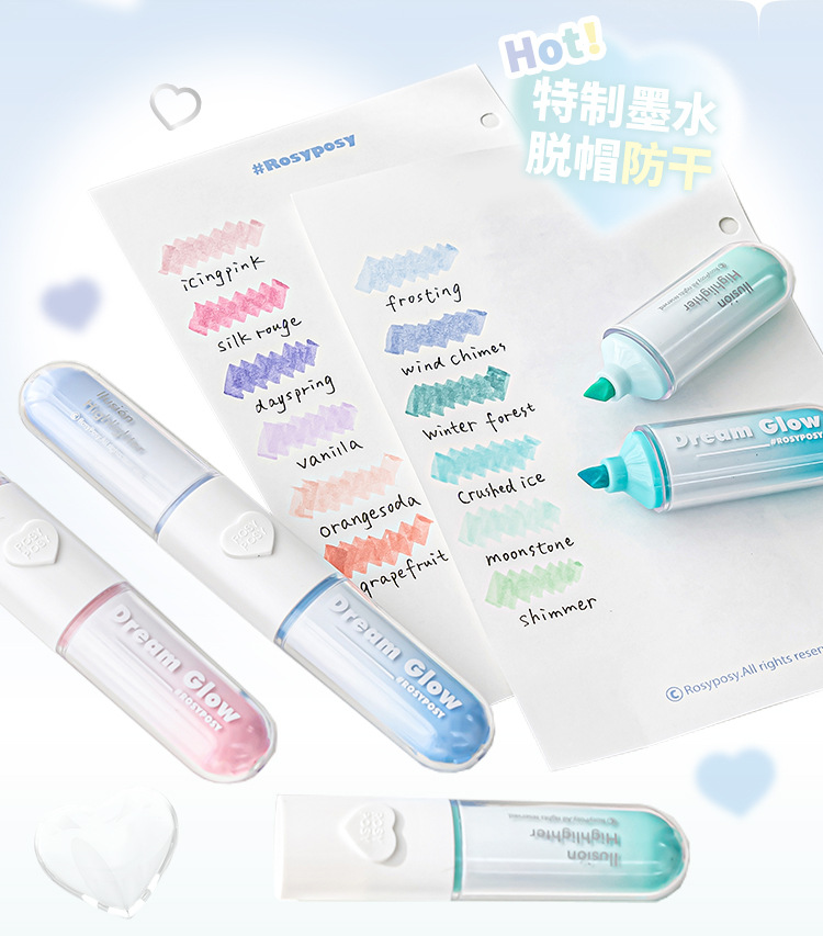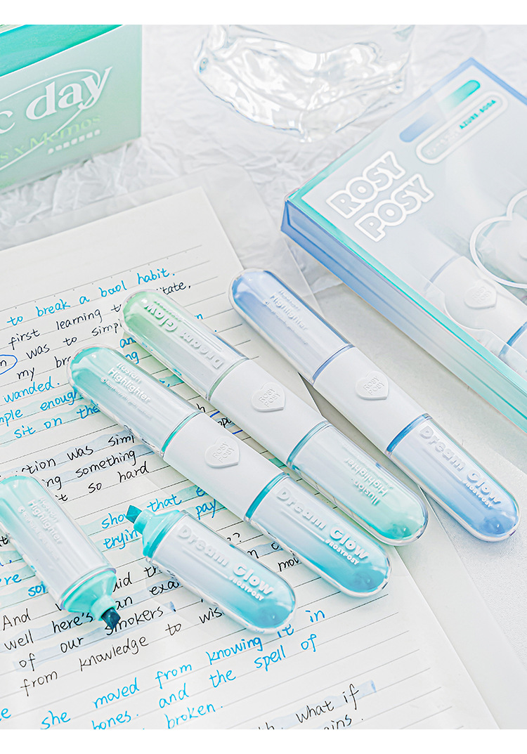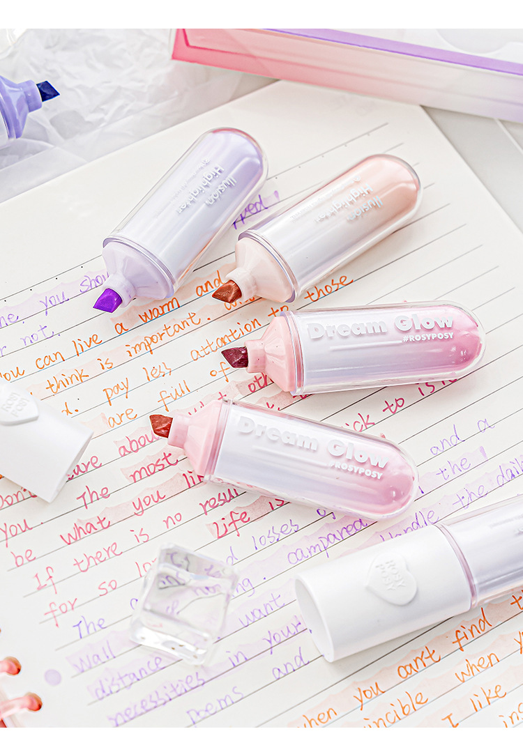 RosyPosy ilusion双头六色荧光笔 清透亚克力渐变笔身奶油荧光笔