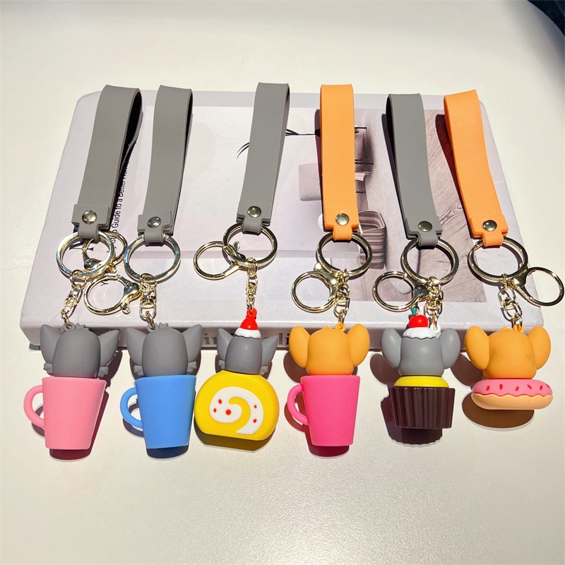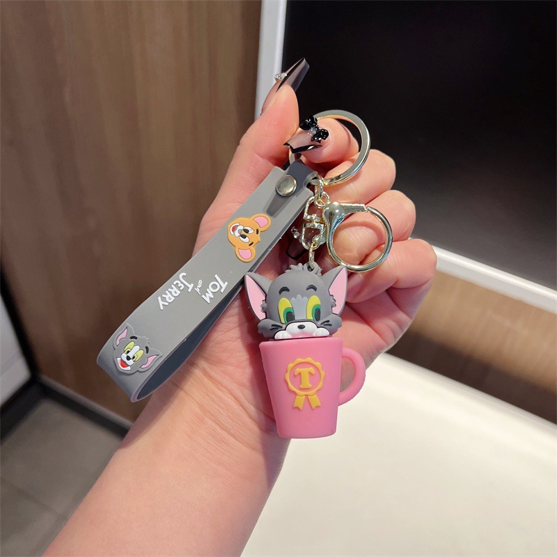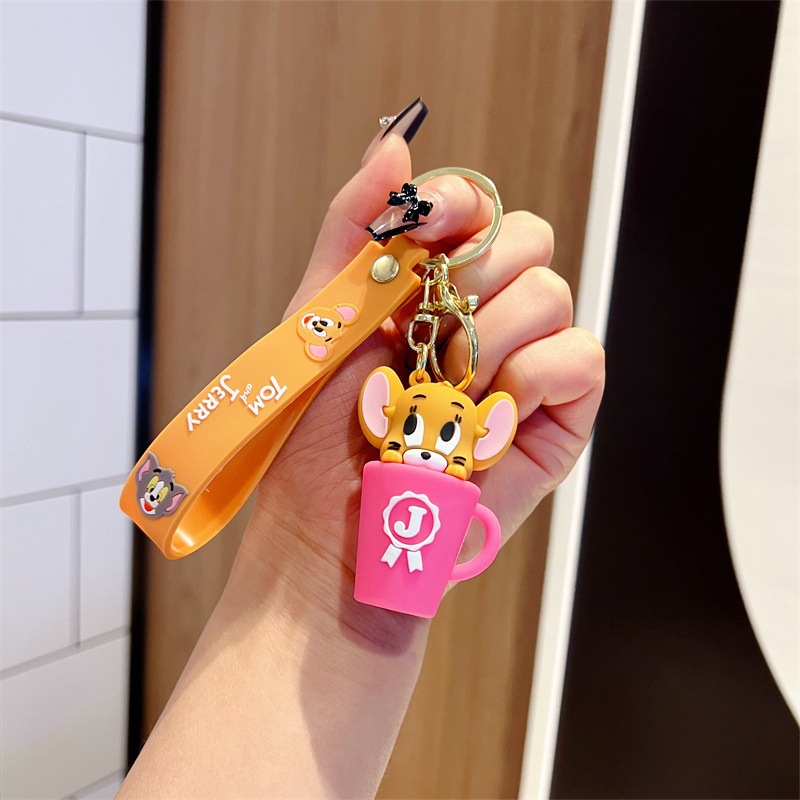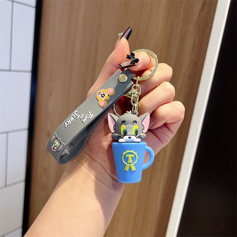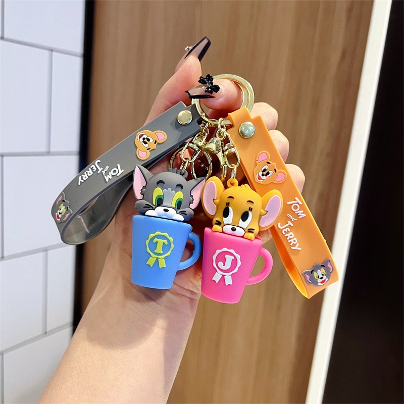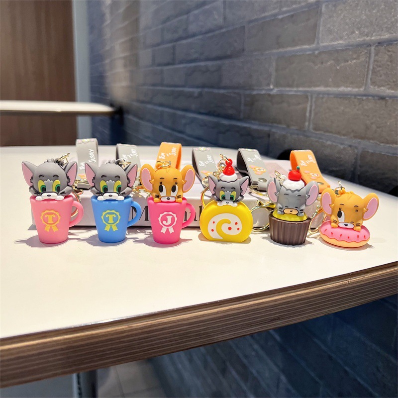 创意卡通猫和老鼠钥匙扣可爱茶杯猫和老鼠奶酪鼠钥匙链男女包挂件