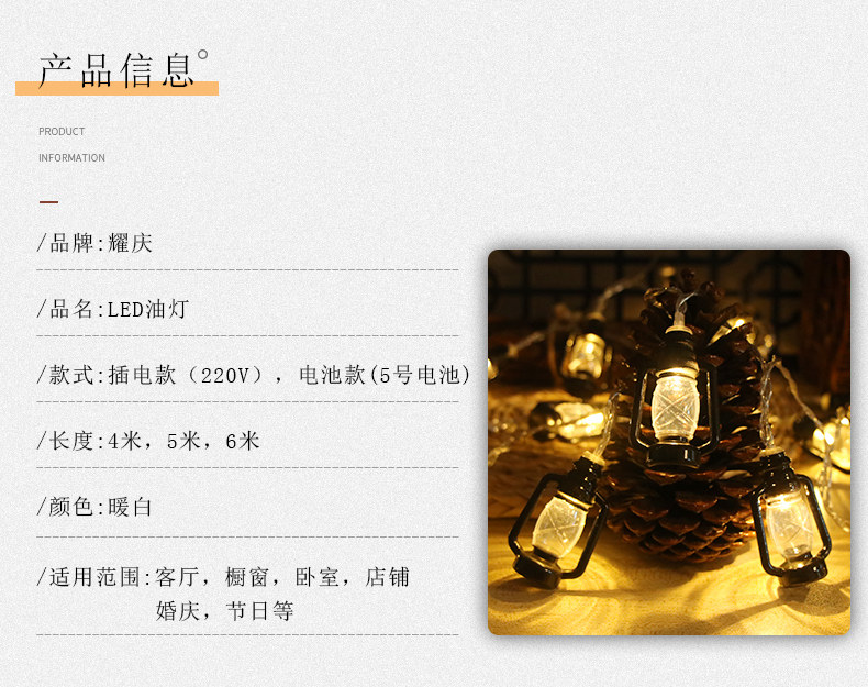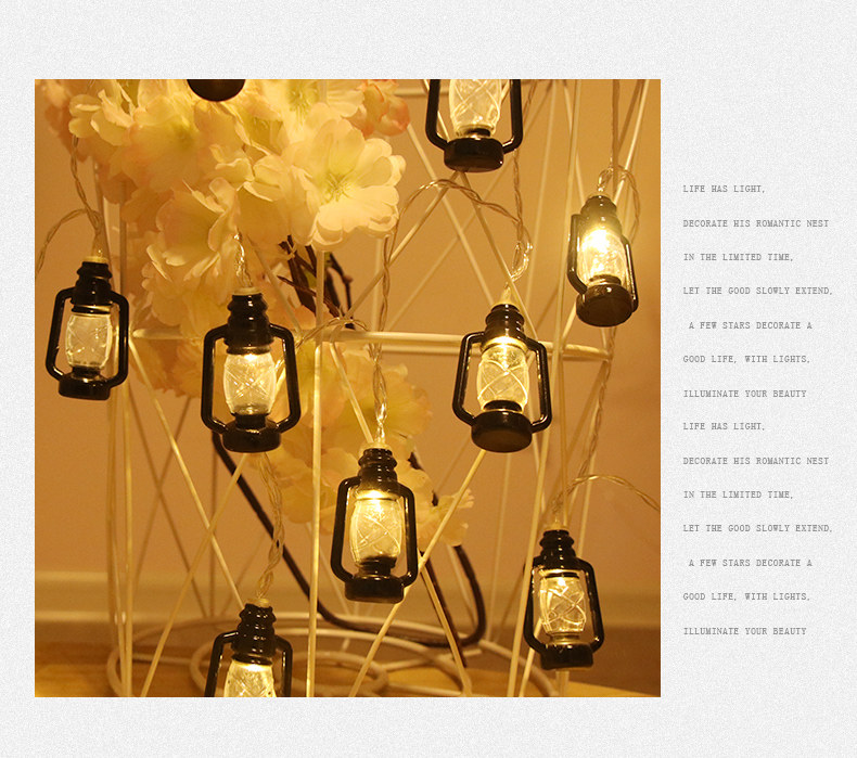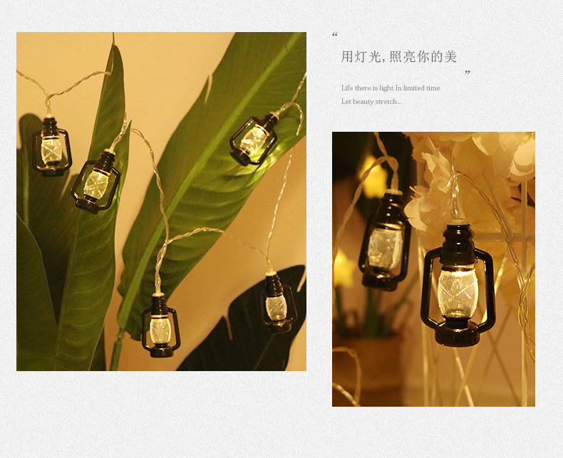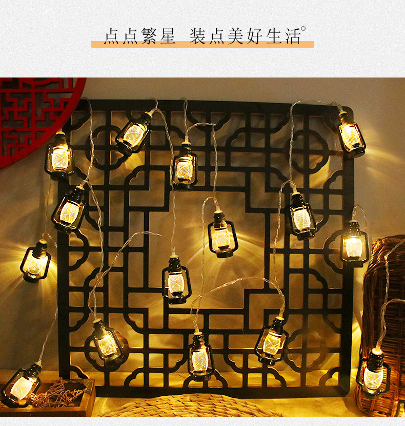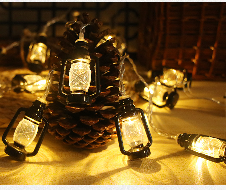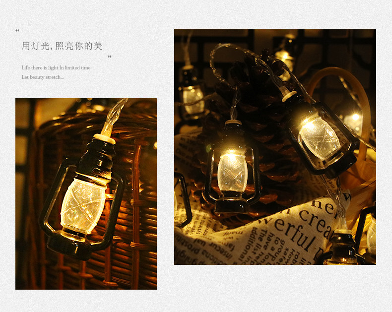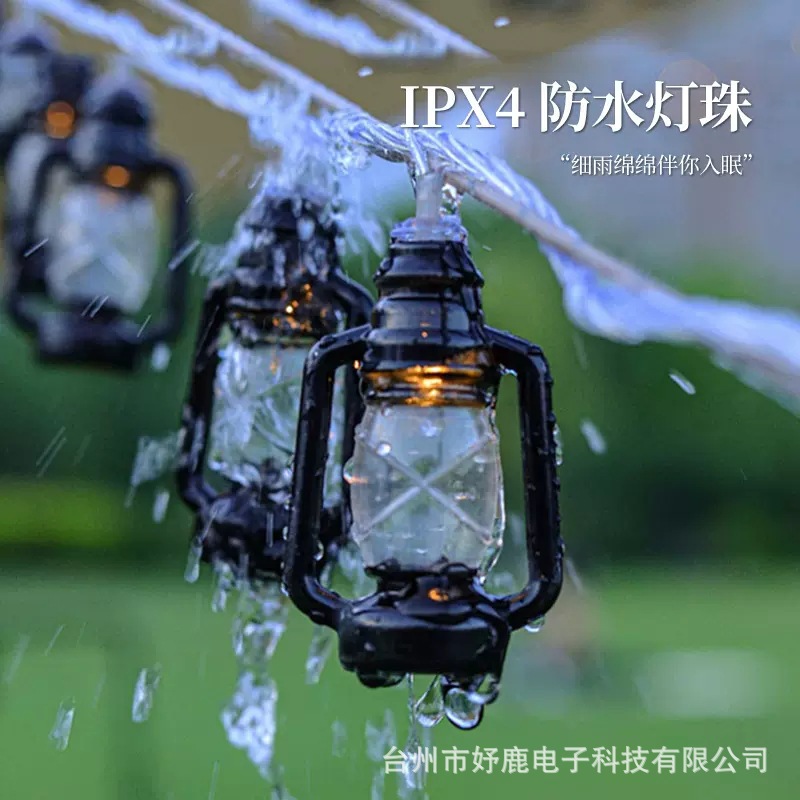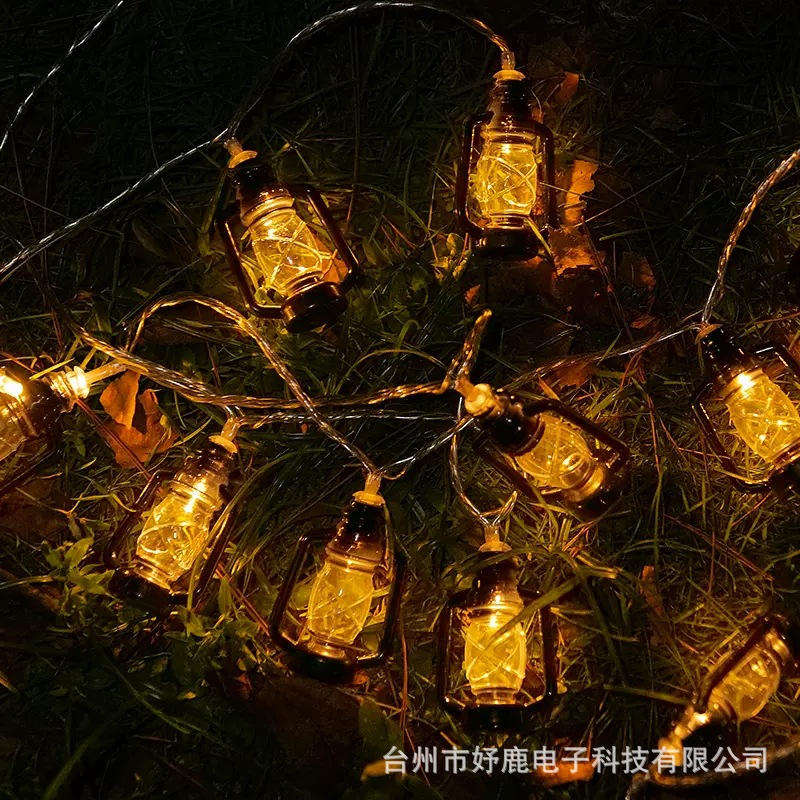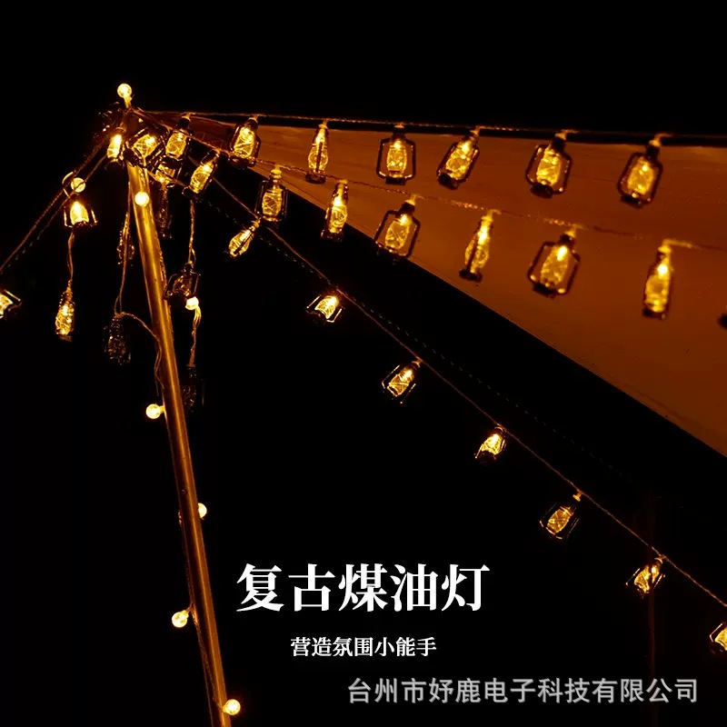 户外露营氛围灯LED灯串复古煤油灯卧室庭院布置装饰彩灯地摊灯串