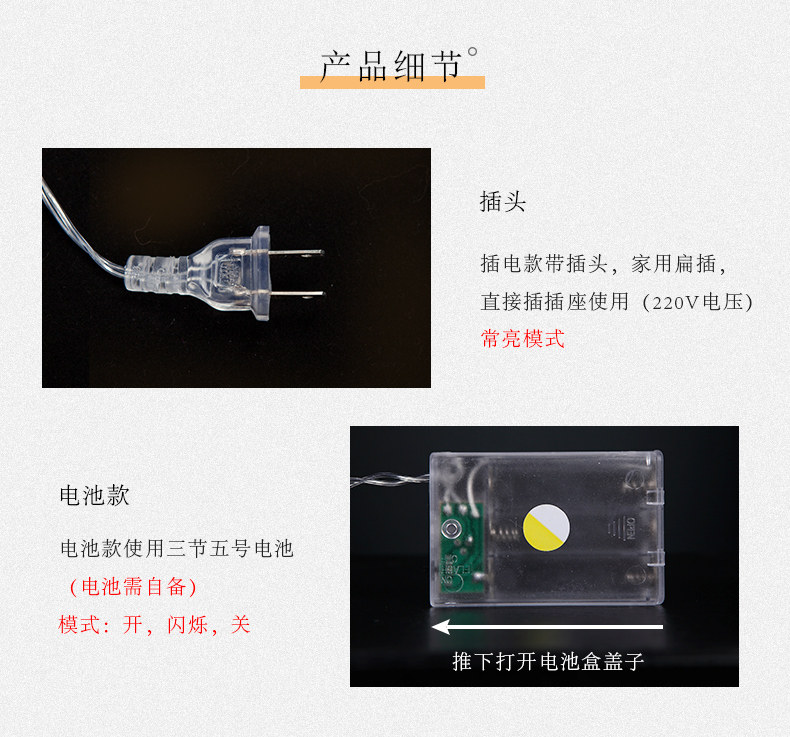 | 10 m 100 lights-plug-in type (no tail plug)(10米100灯—插电款(无尾插)) | USD $8.41 | 88888 set available |