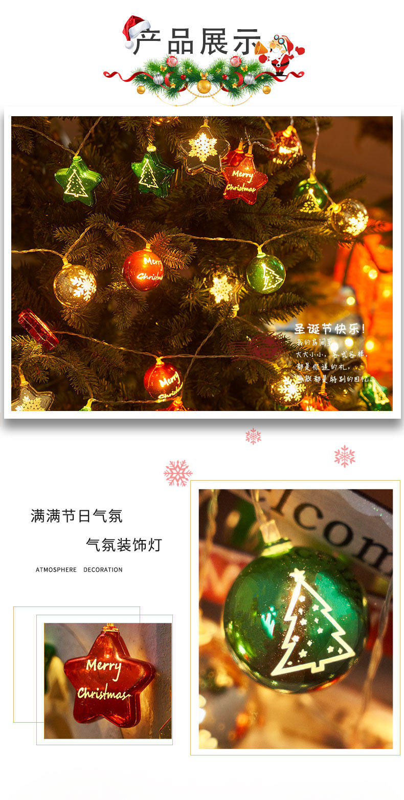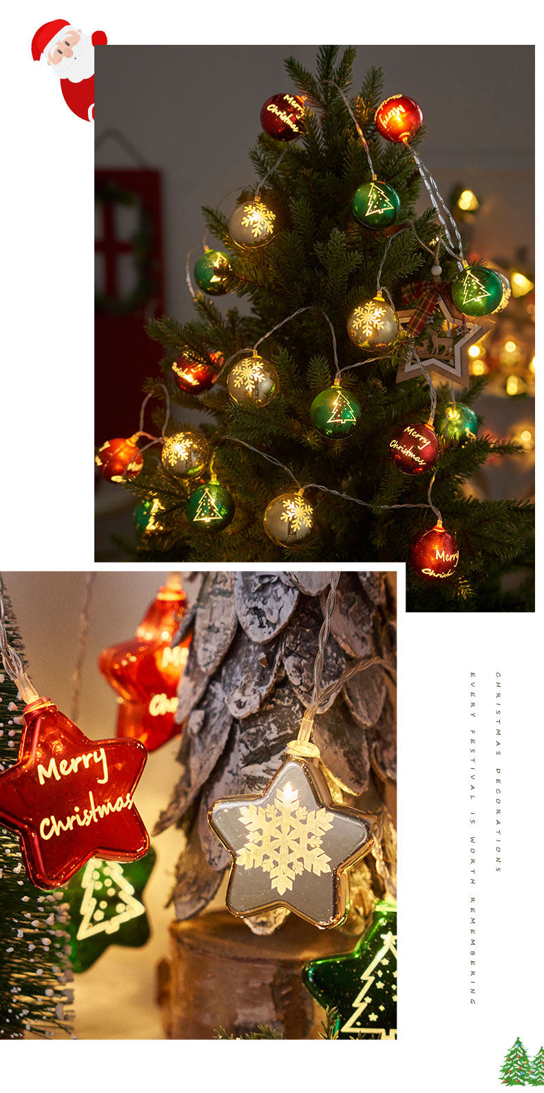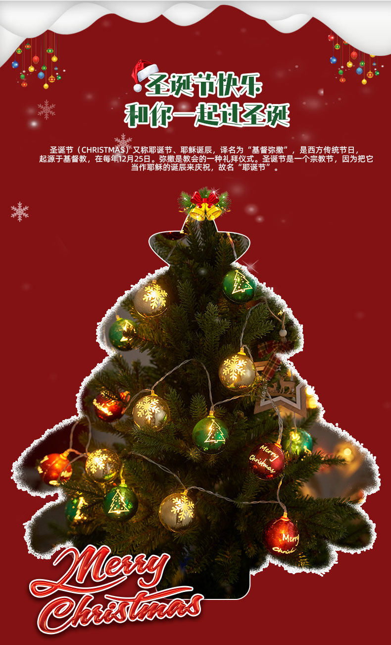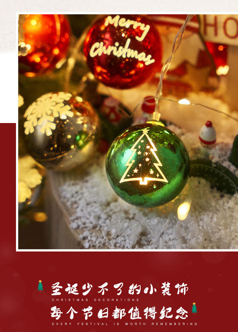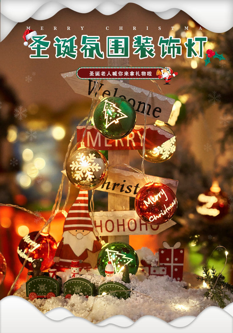 跨境圣诞元旦装饰灯橱窗客厅圣诞氛围布置挂件LED电镀球彩闪灯串