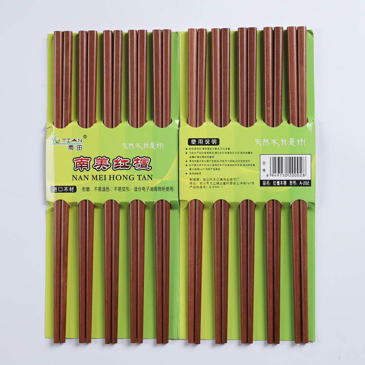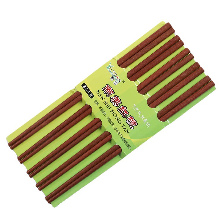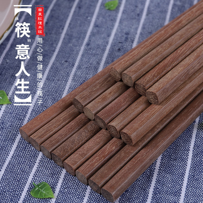 雨田南美红檀筷子高档家用10双装无漆无蜡实木餐具酒店套装批发快