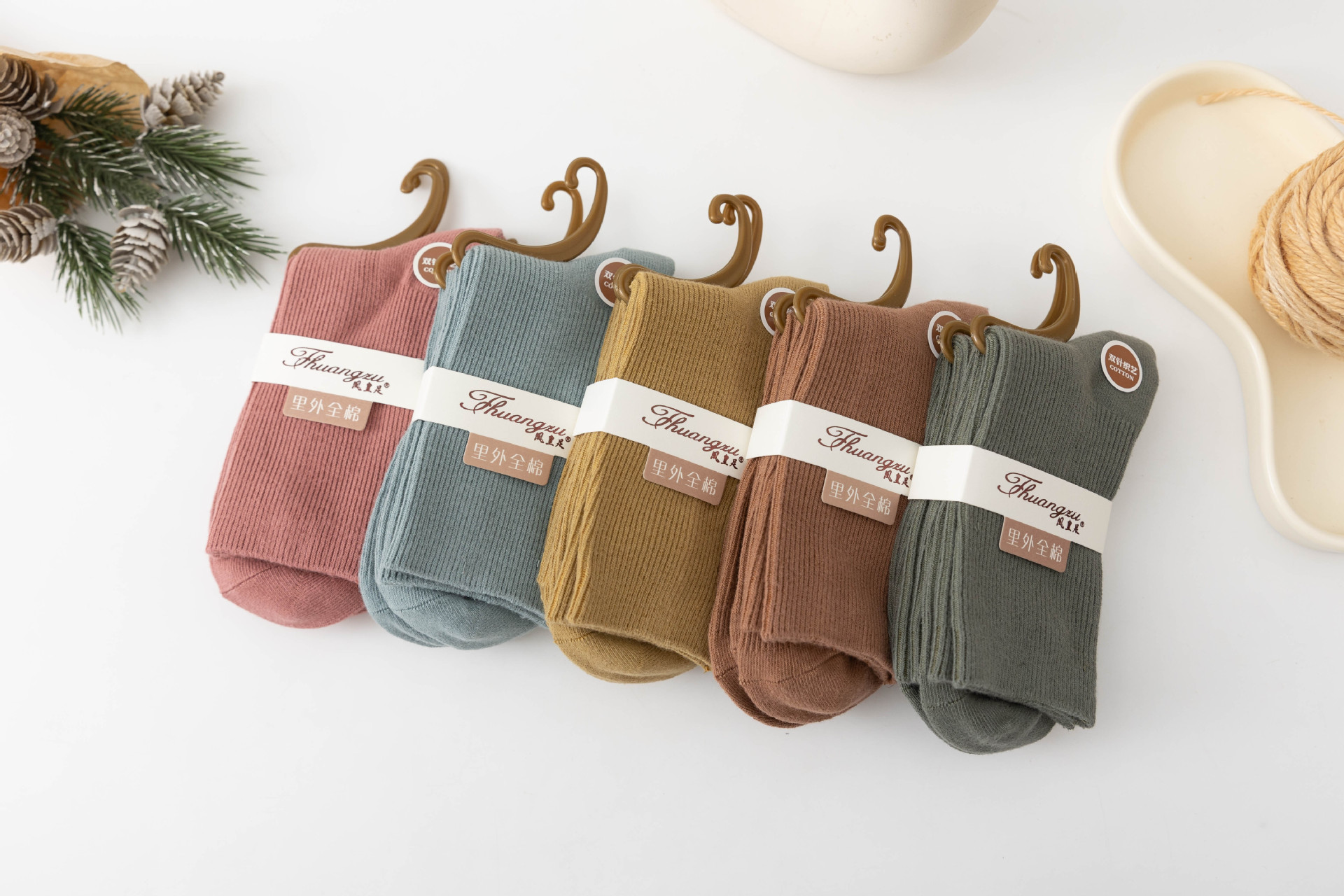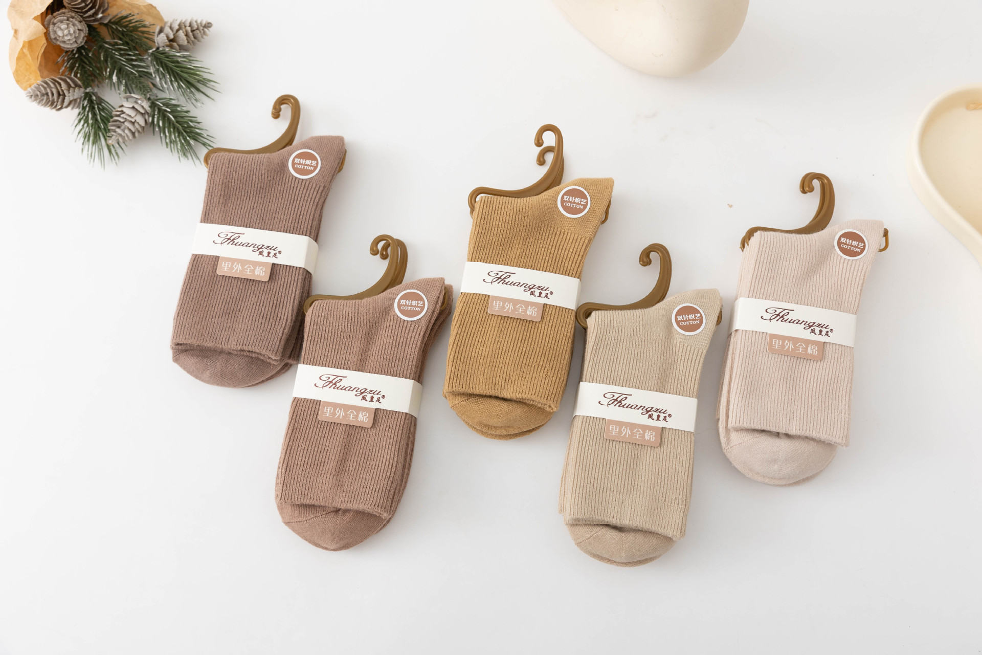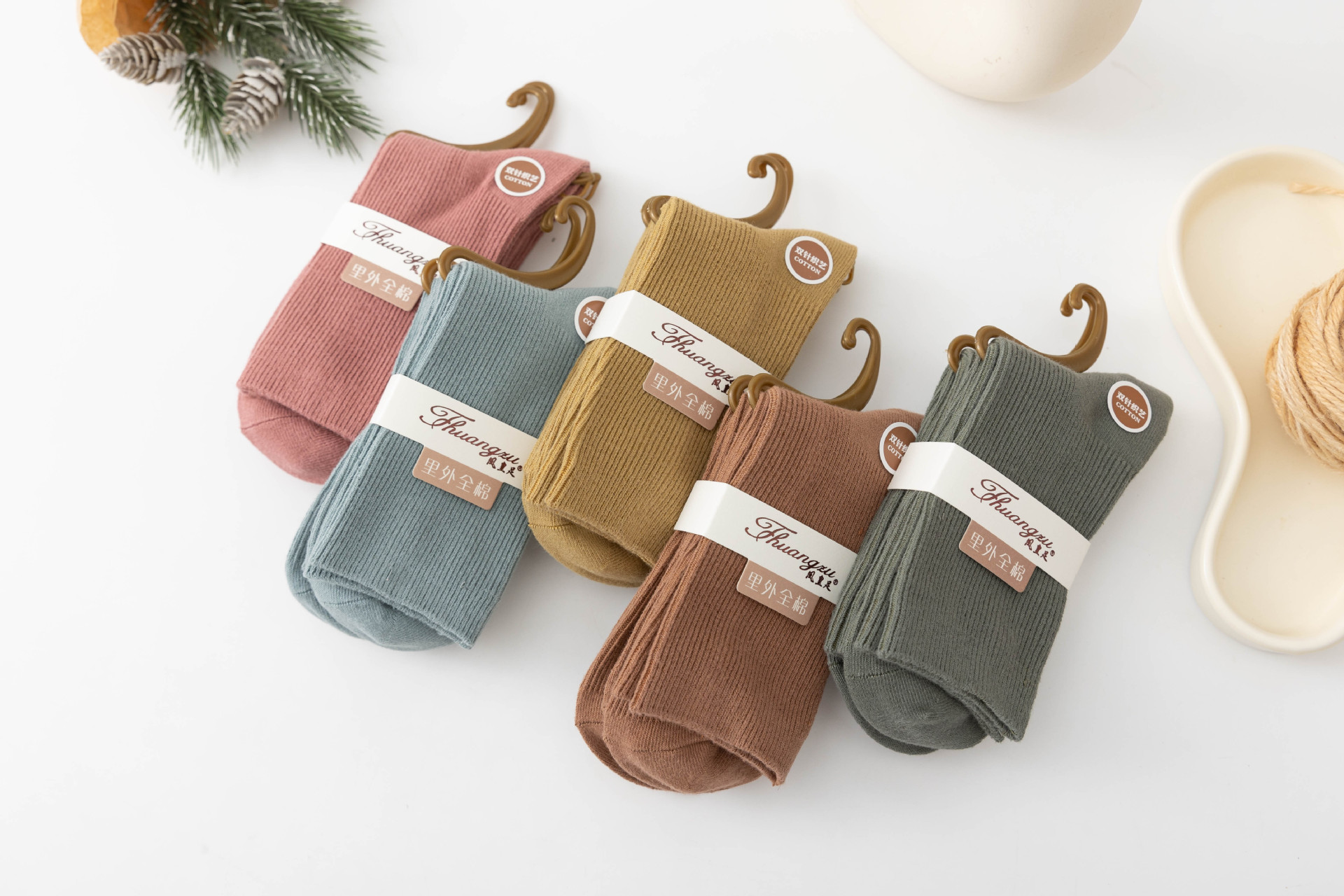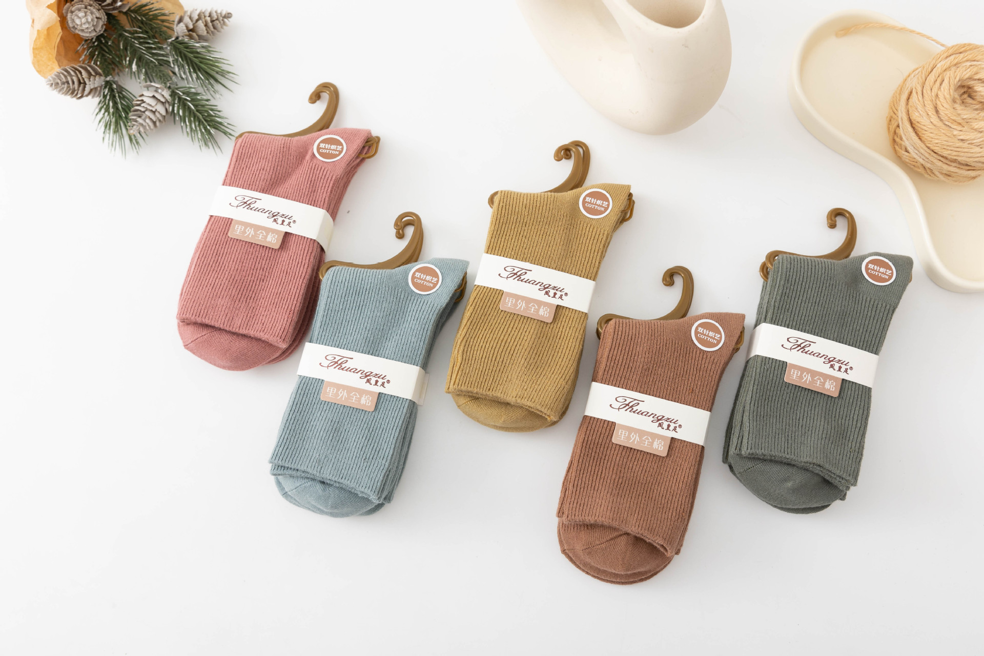 女袜中筒双针纯棉袜女士新款秋冬不勒脚舒适纯色韩系休闲厂家直售