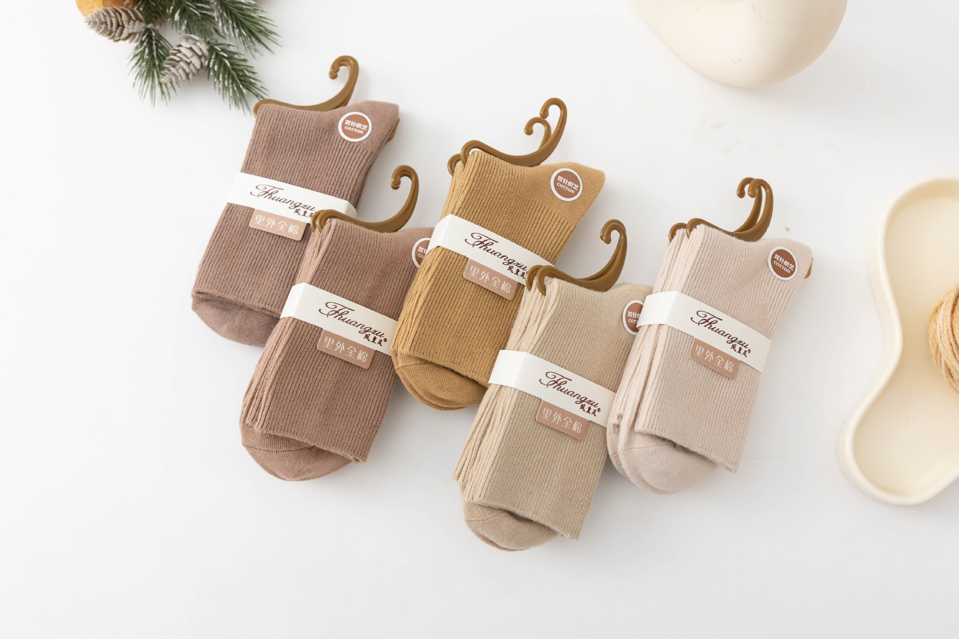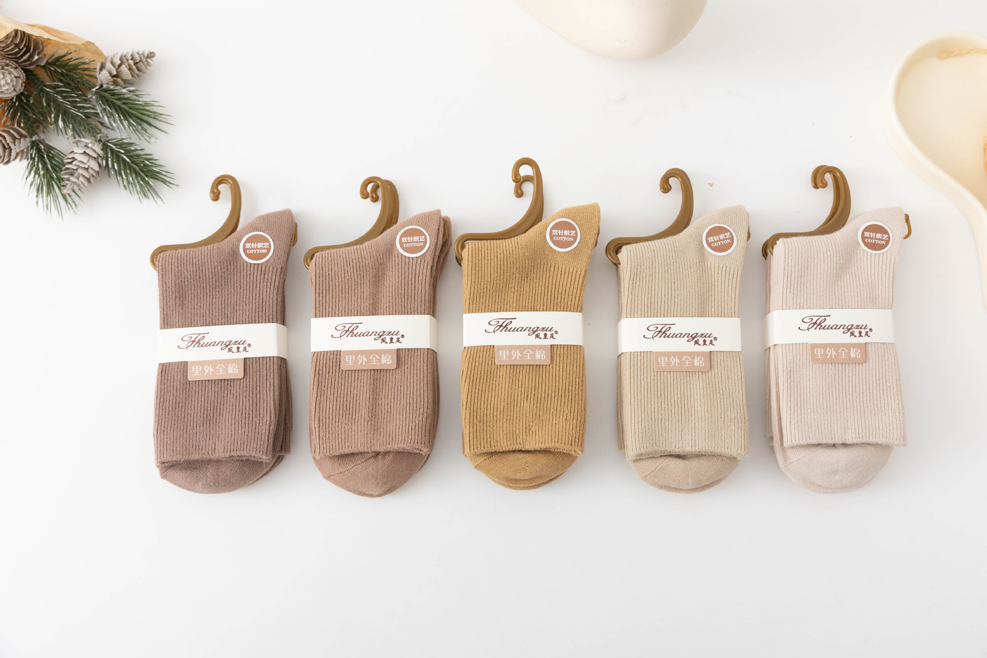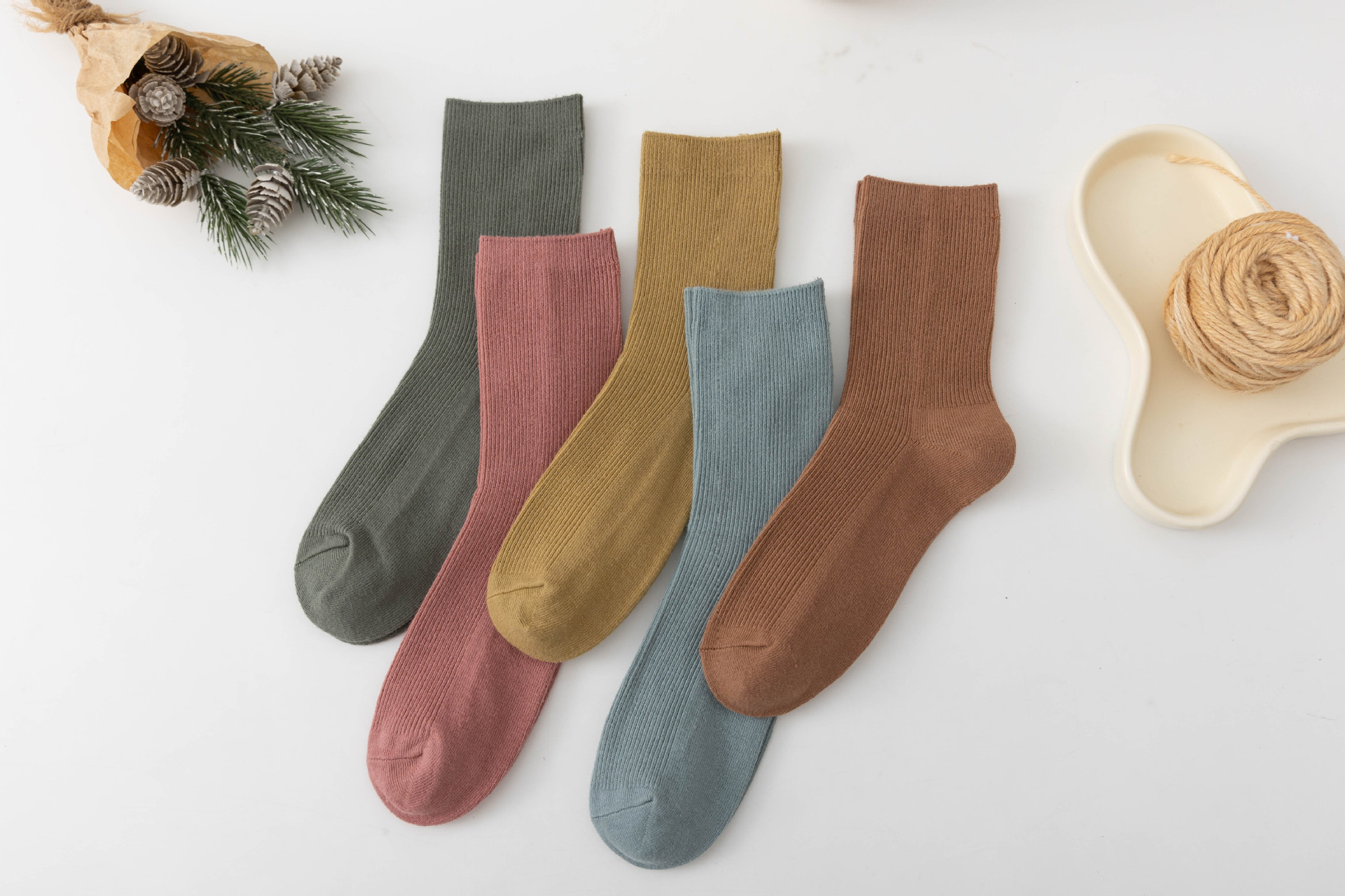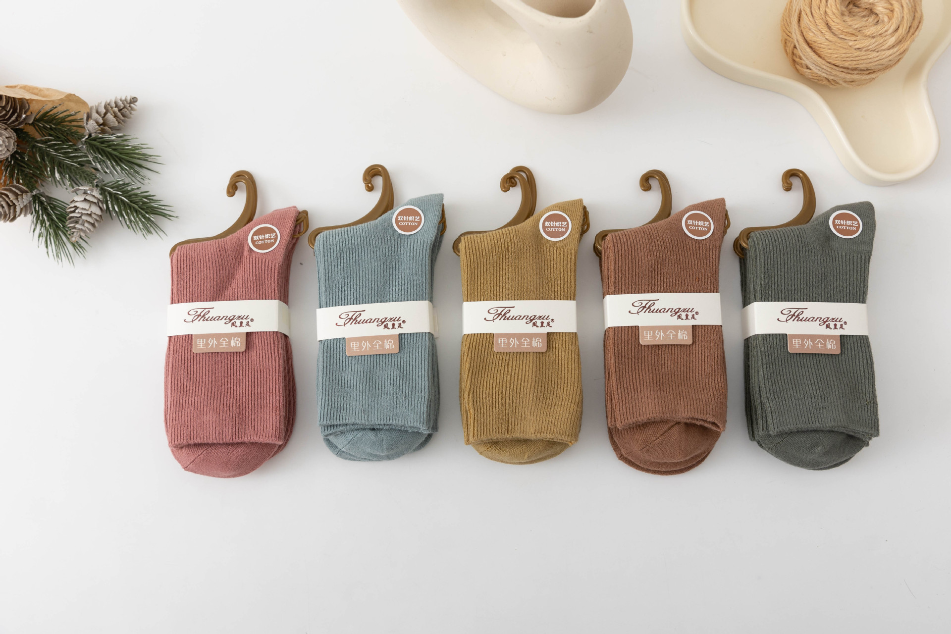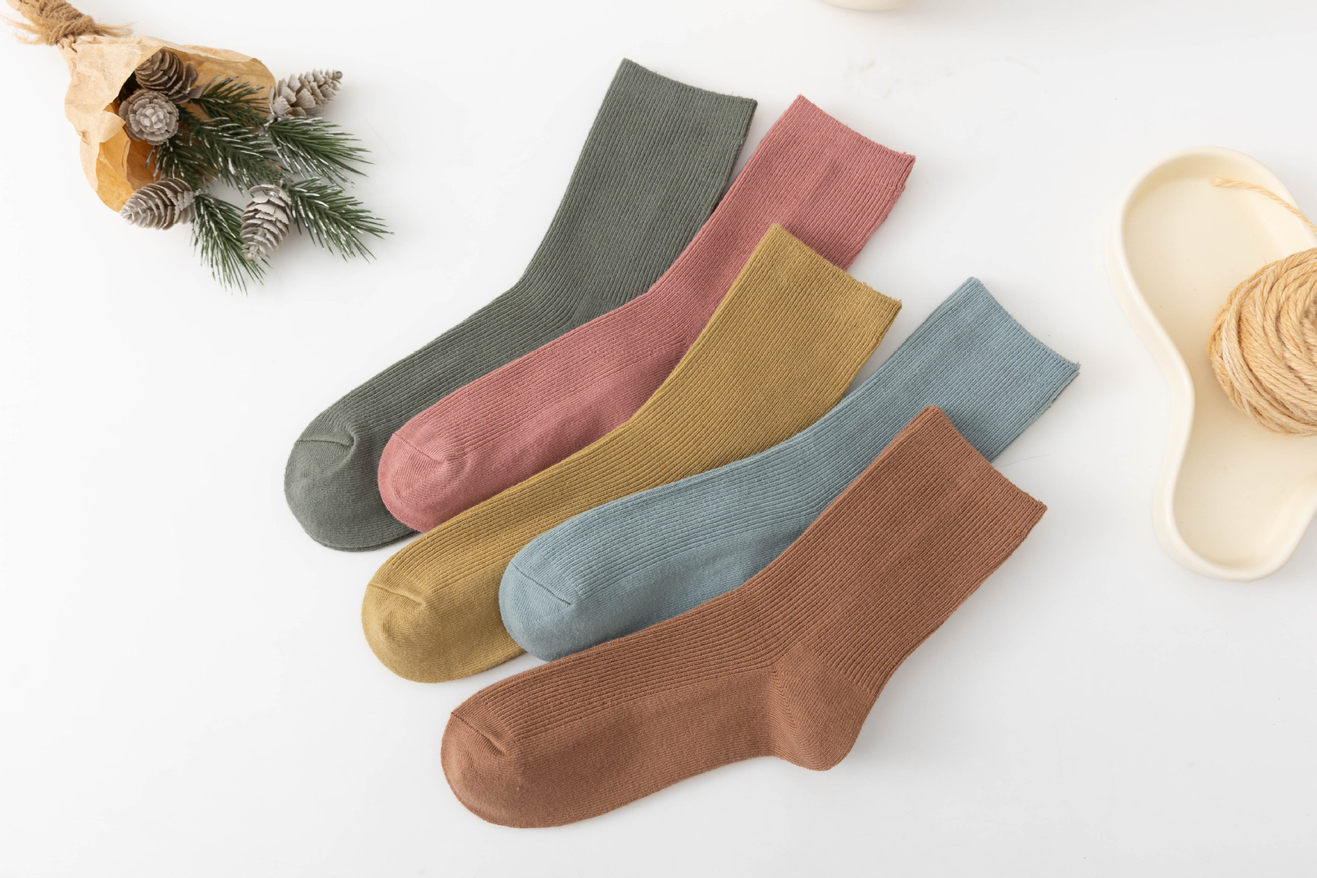 女袜中筒双针纯棉袜女士新款秋冬不勒脚舒适纯色韩系休闲厂家直售