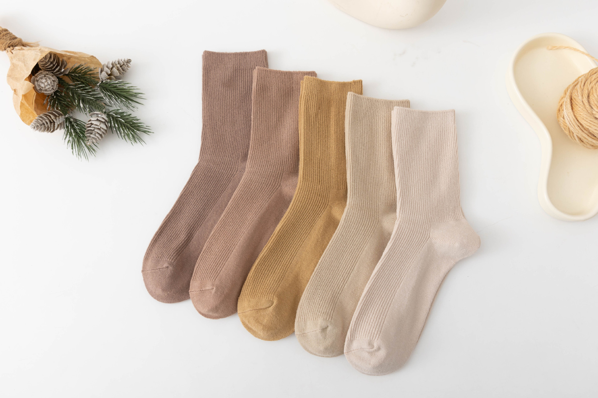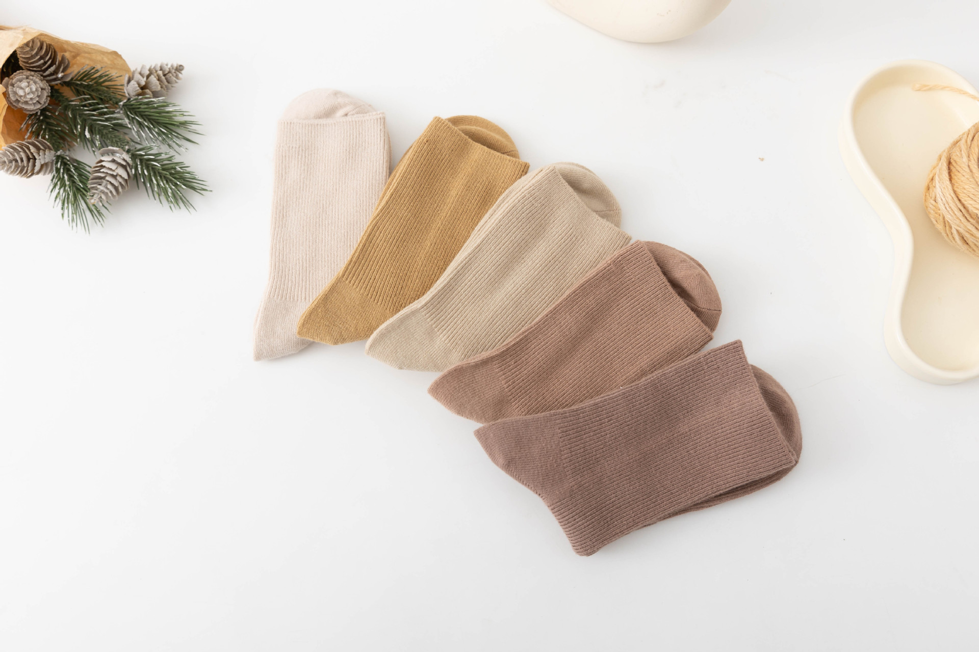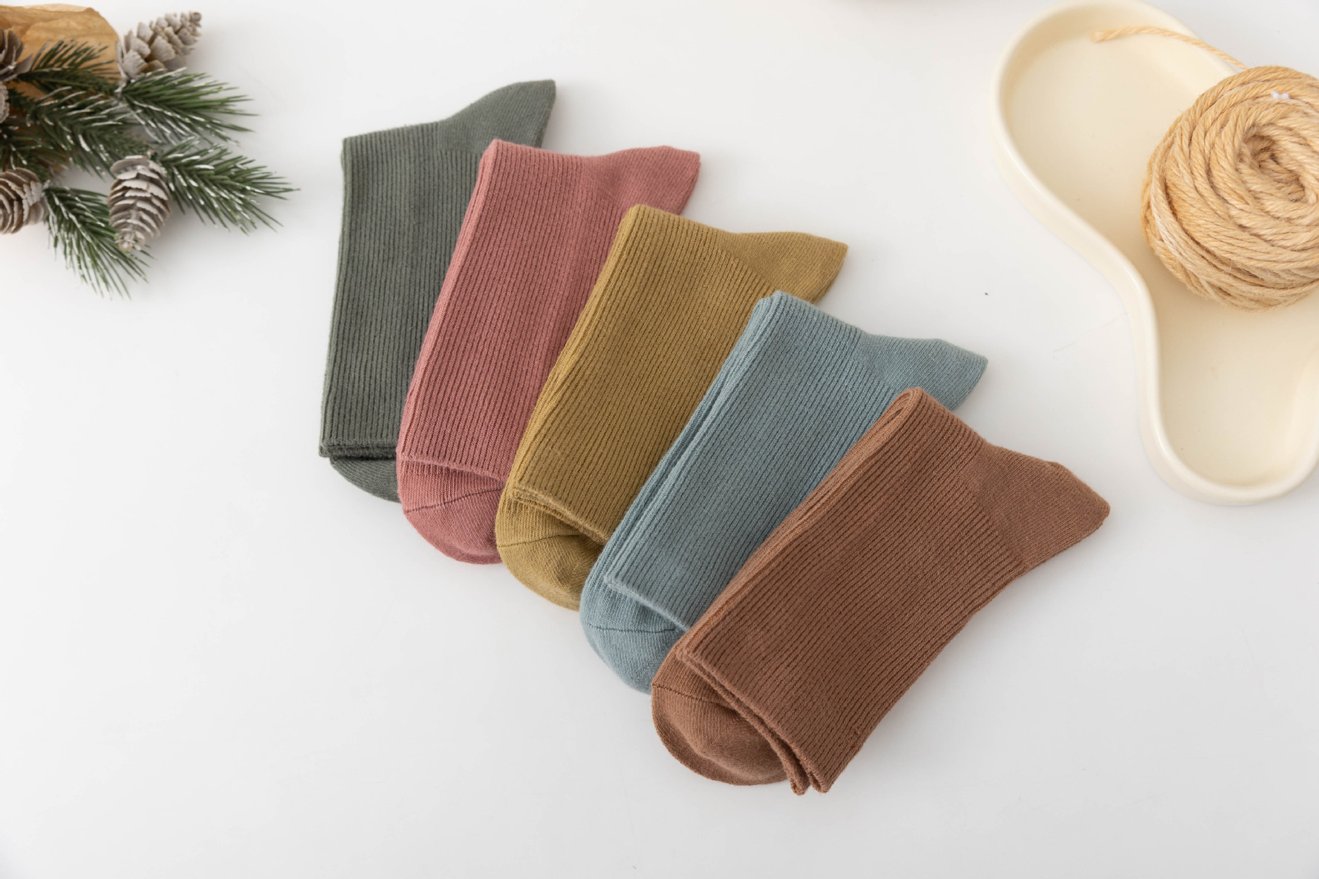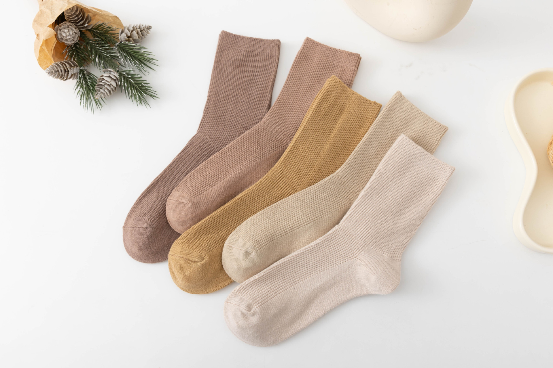 女袜中筒双针纯棉袜女士新款秋冬不勒脚舒适纯色韩系休闲厂家直售