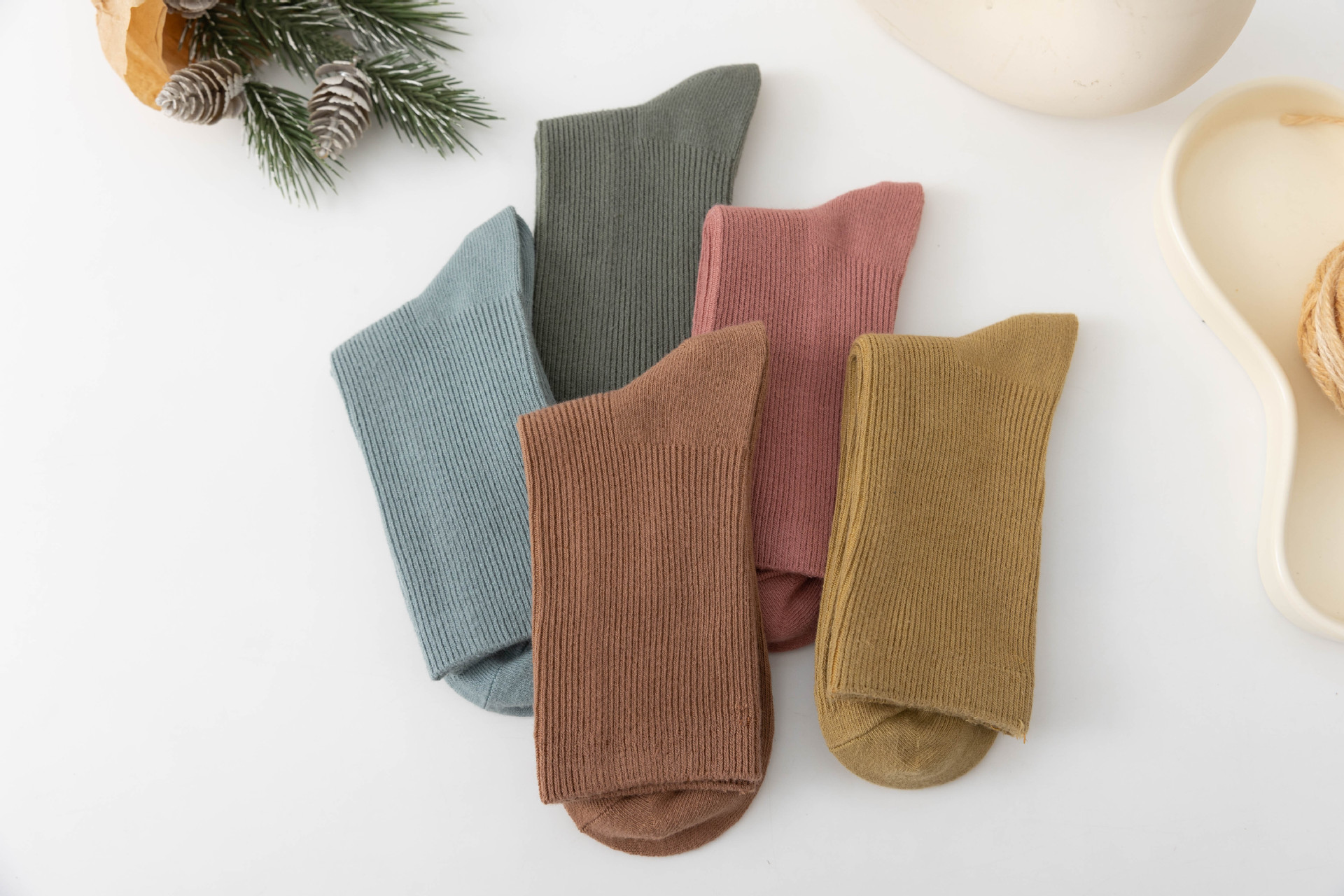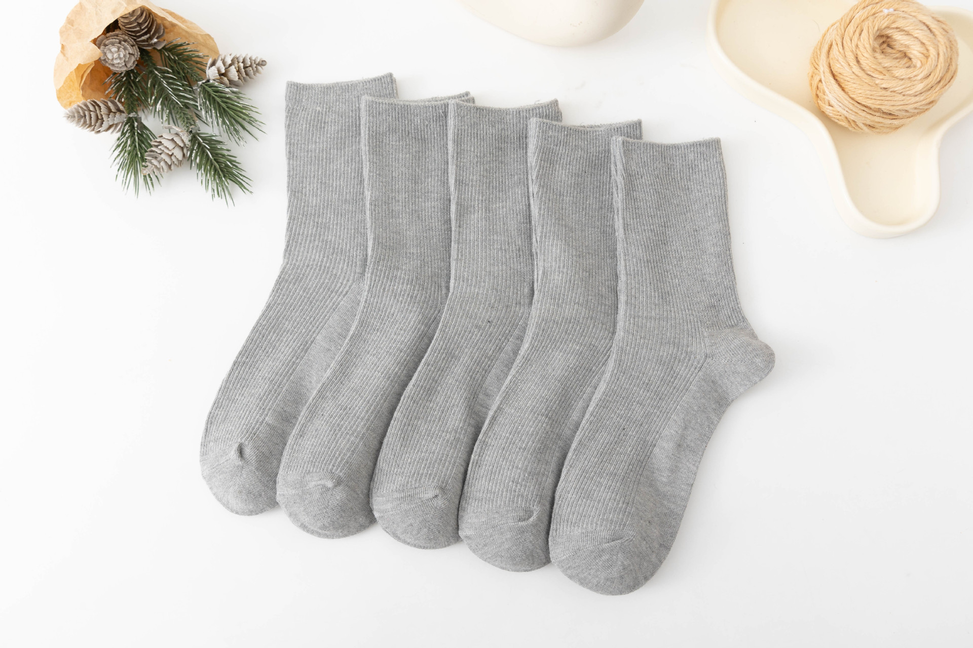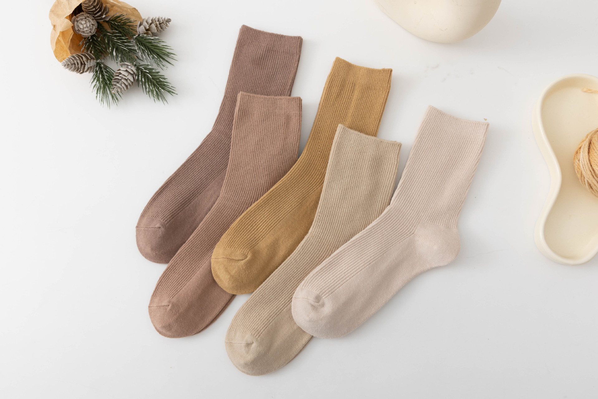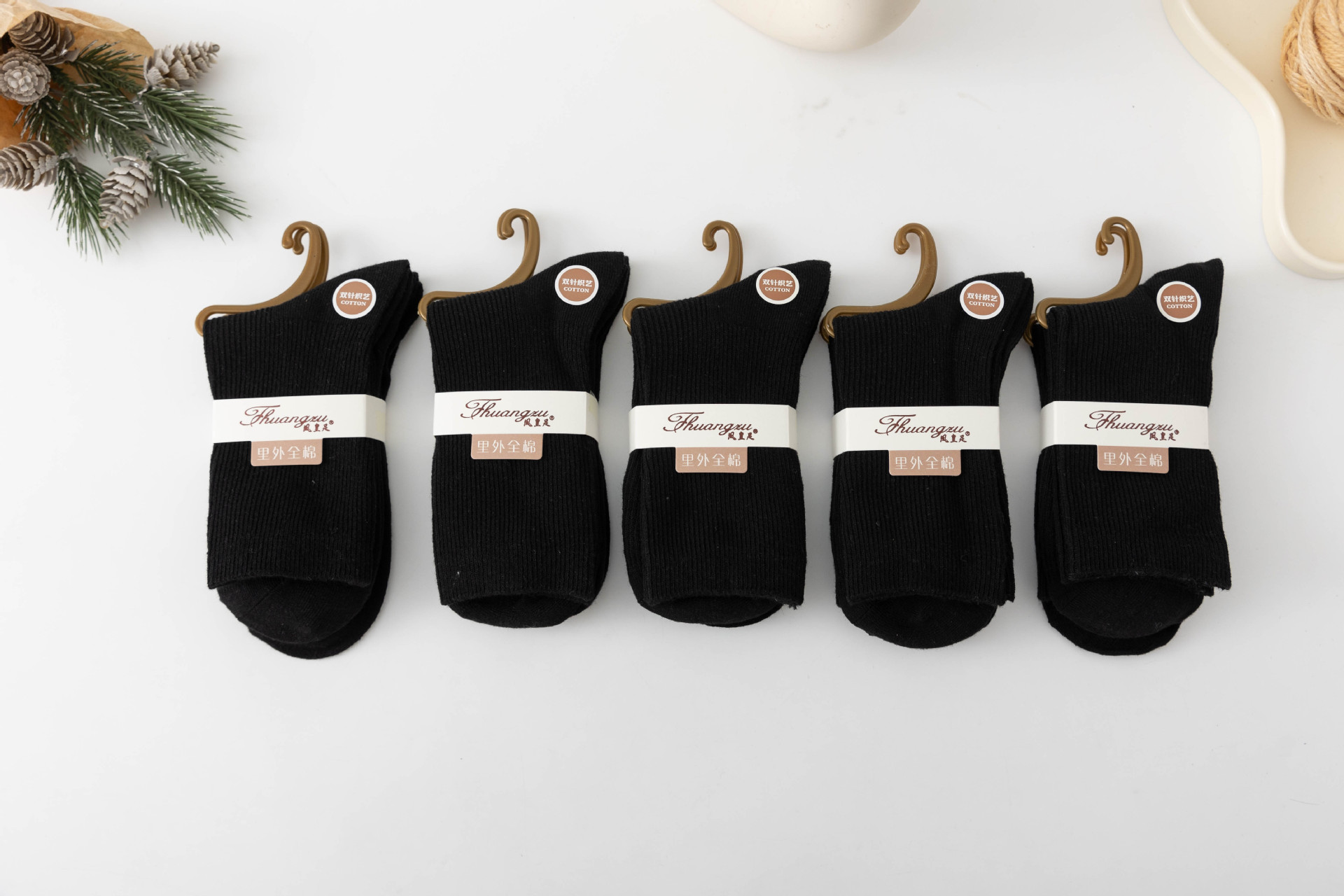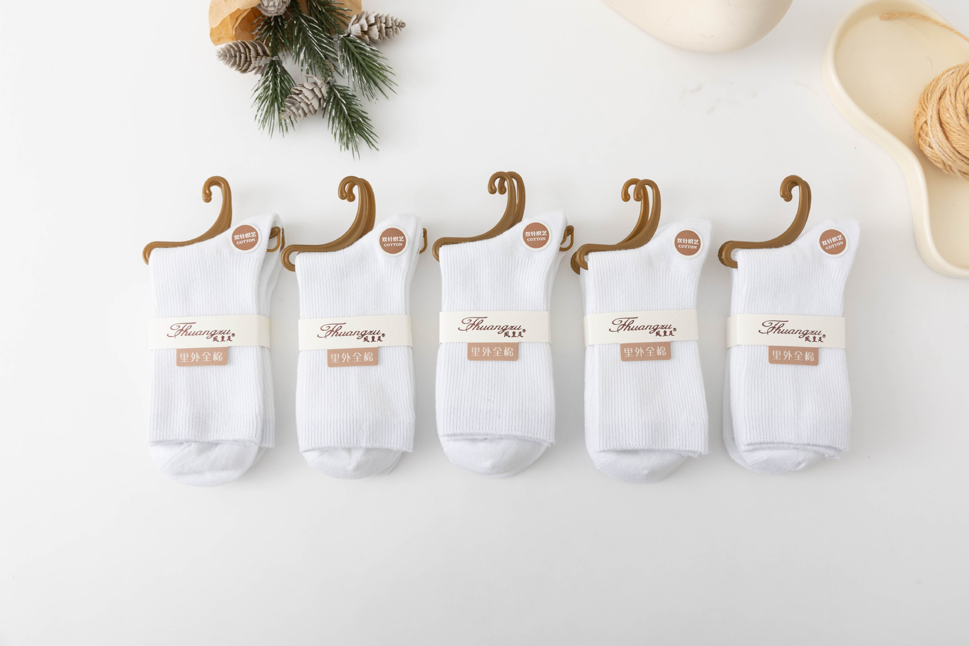 女袜中筒双针纯棉袜女士新款秋冬不勒脚舒适纯色韩系休闲厂家直售