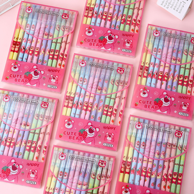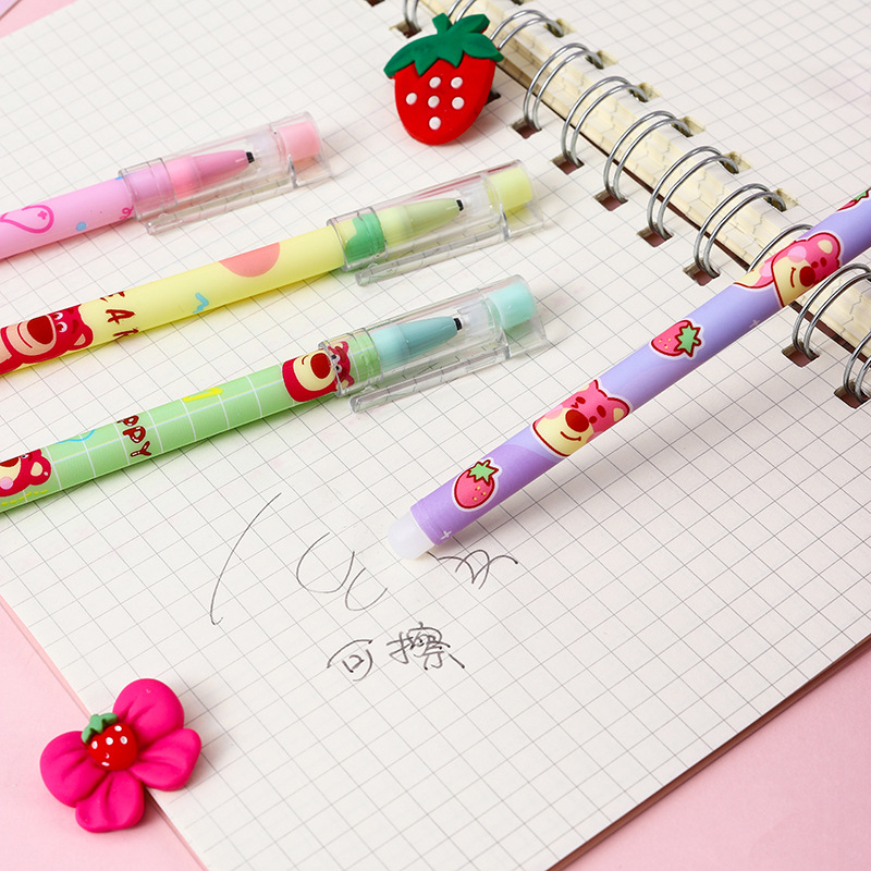 可爱草莓熊可擦中性笔ins高颜值热可擦水笔小学生卡通礼品笔文具