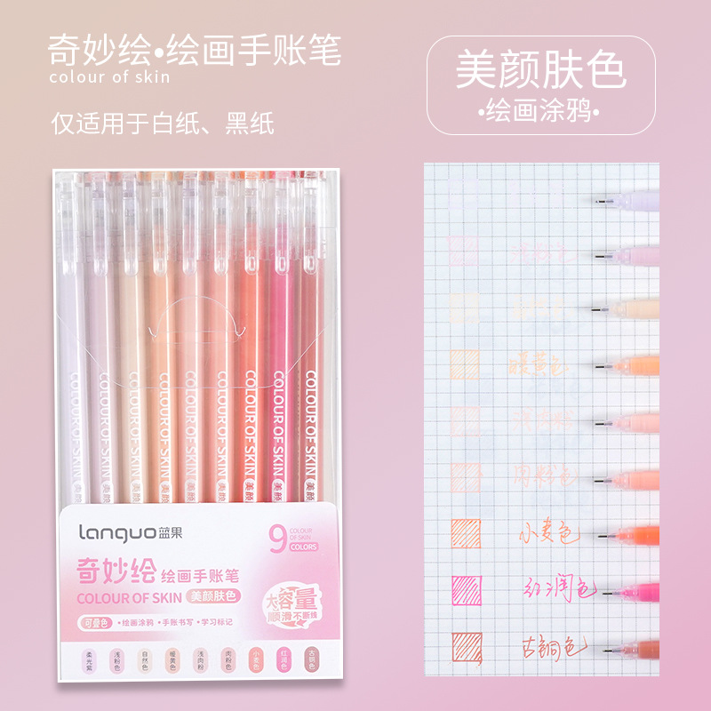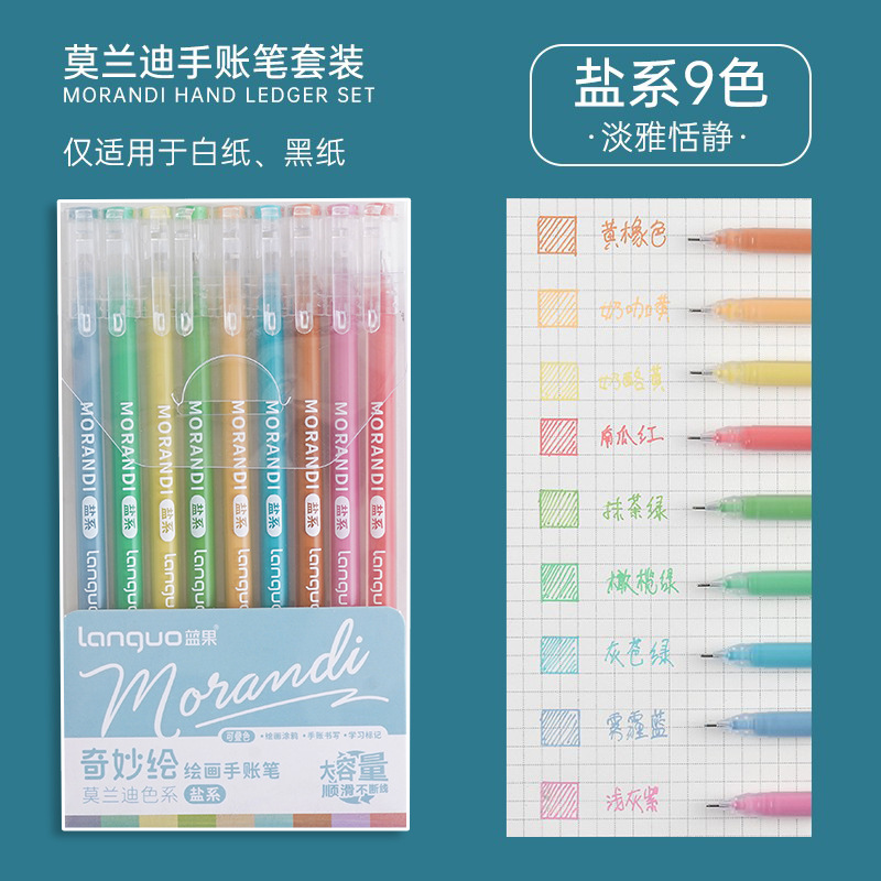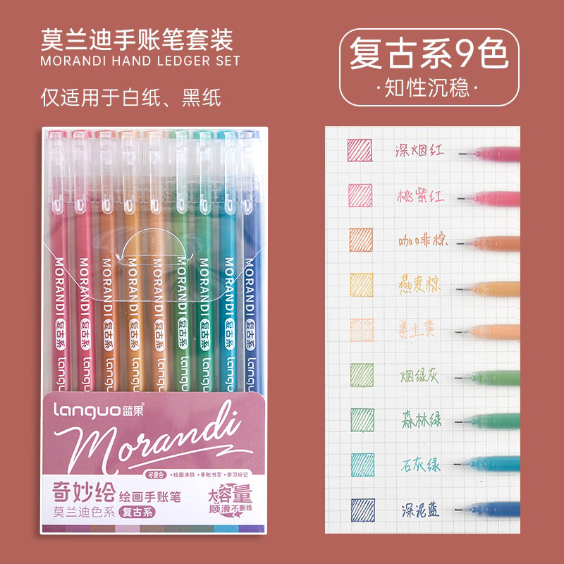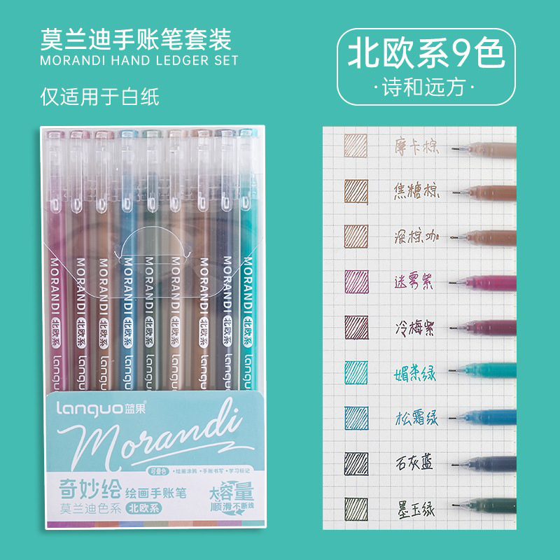 多色笔大容量彩色手帐笔9支套装 莫兰迪色学生标记笔全针管中性笔