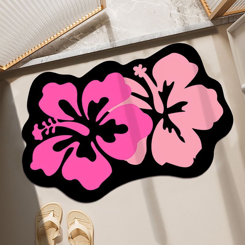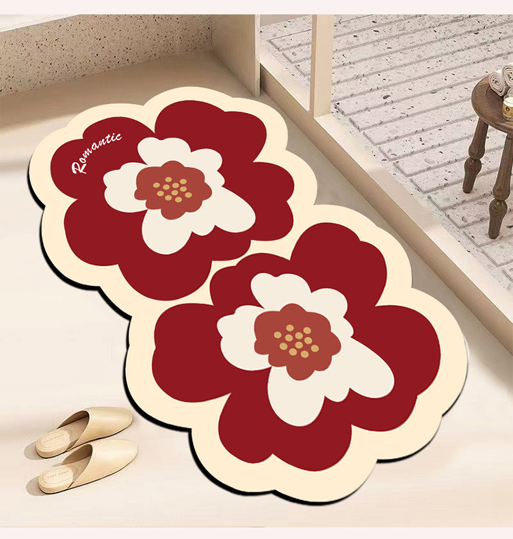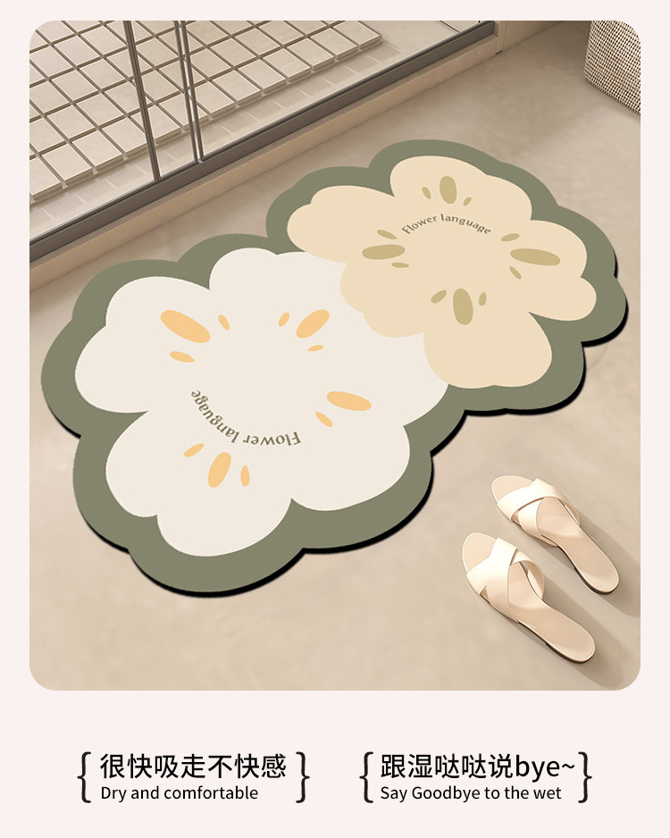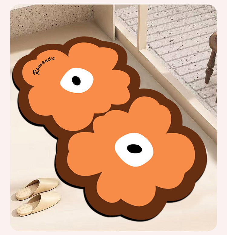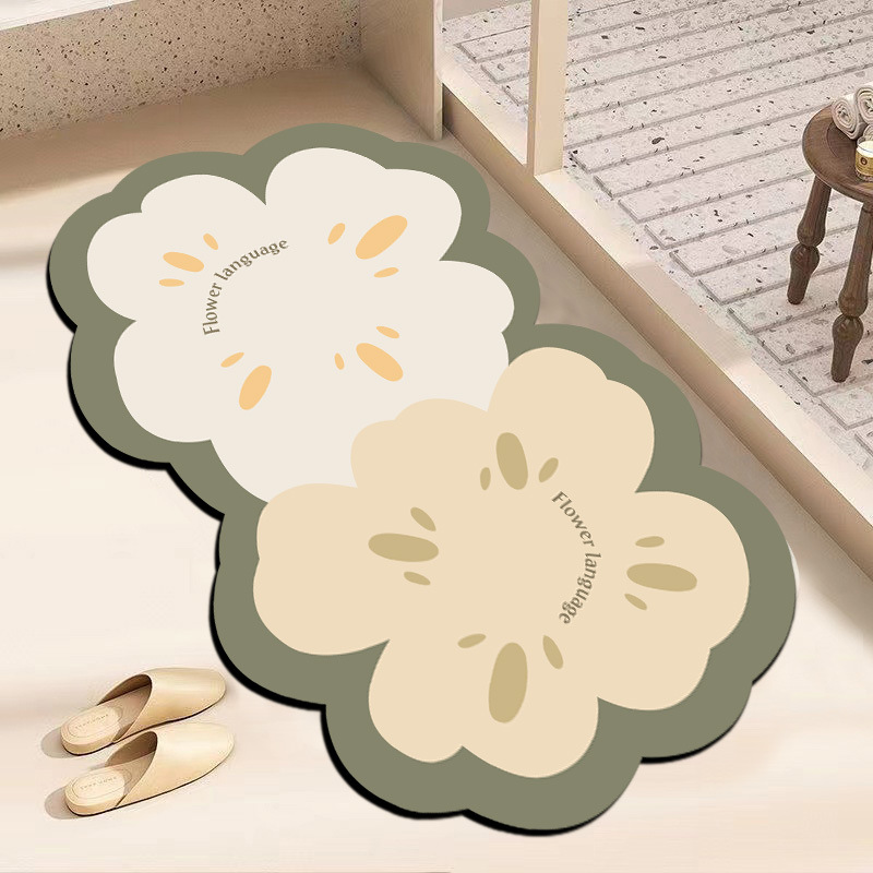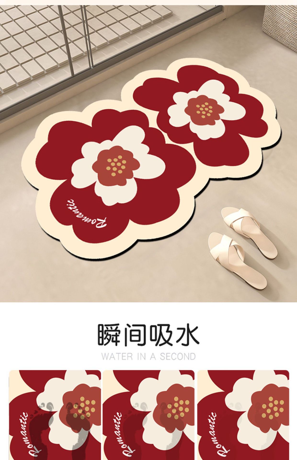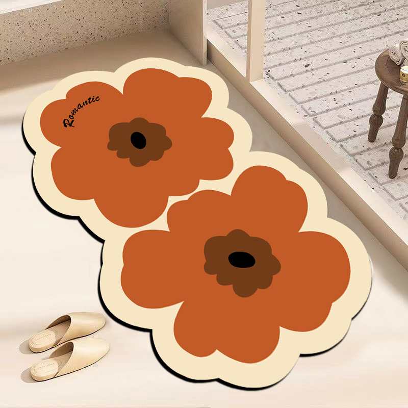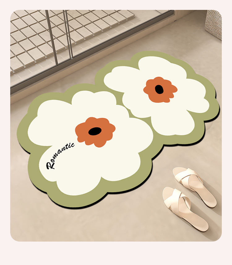 INS家用硅藻泥吸水垫卫生间进门速干耐磨脚垫清新花朵浴室防滑垫