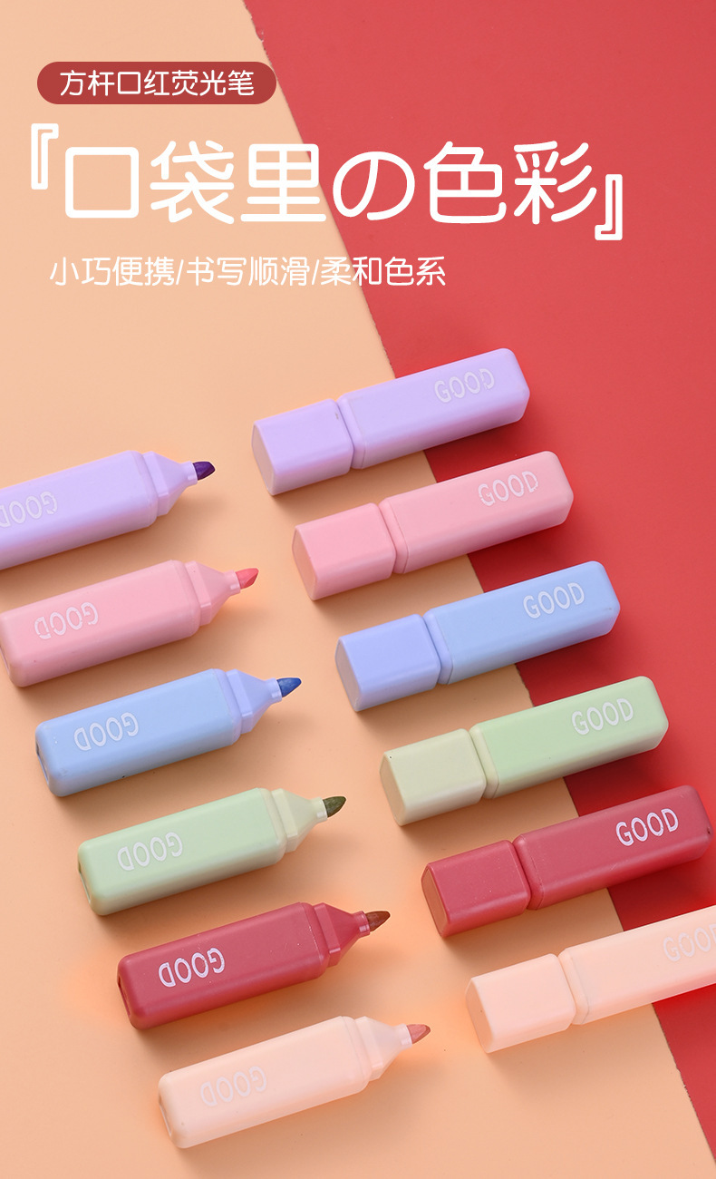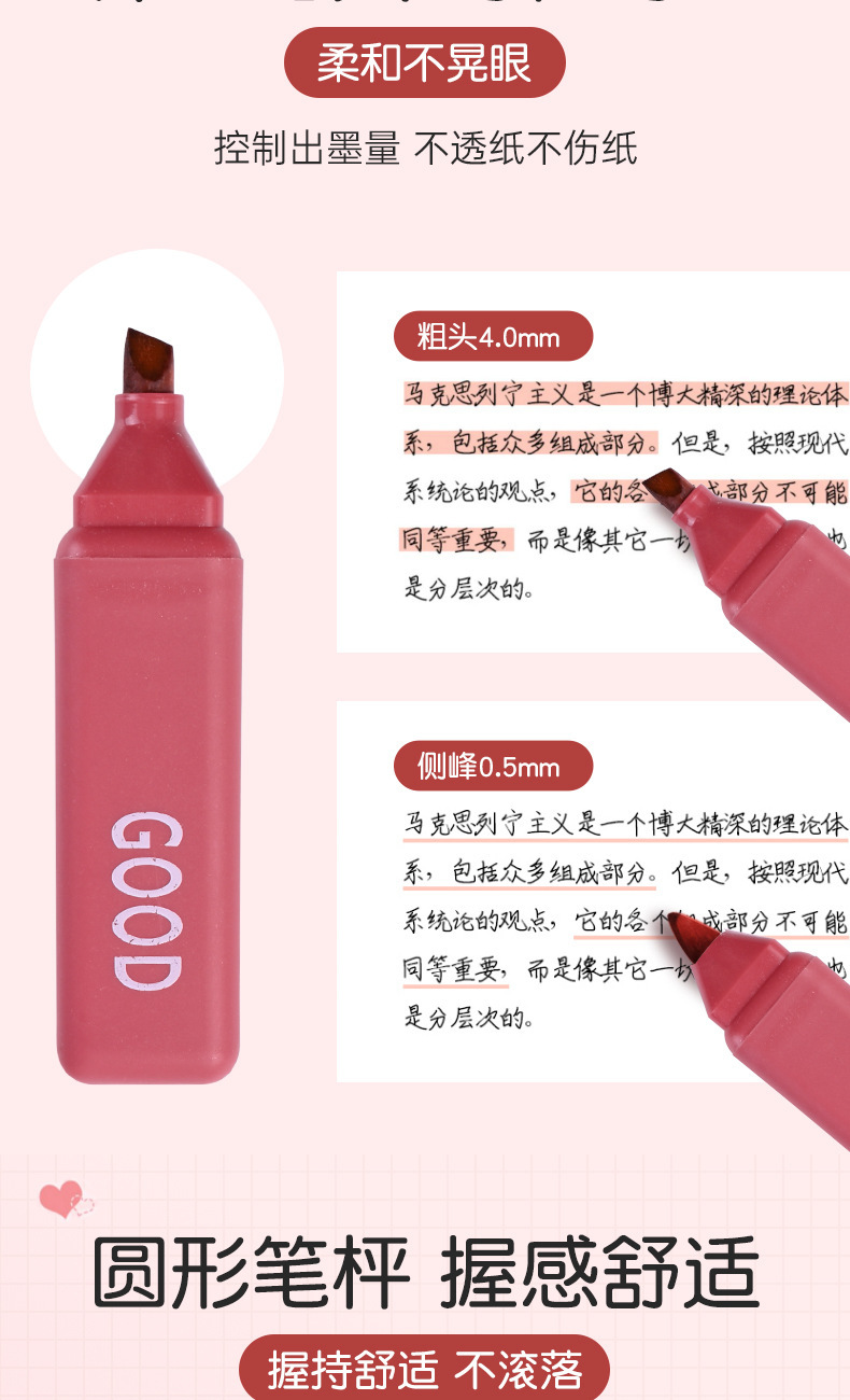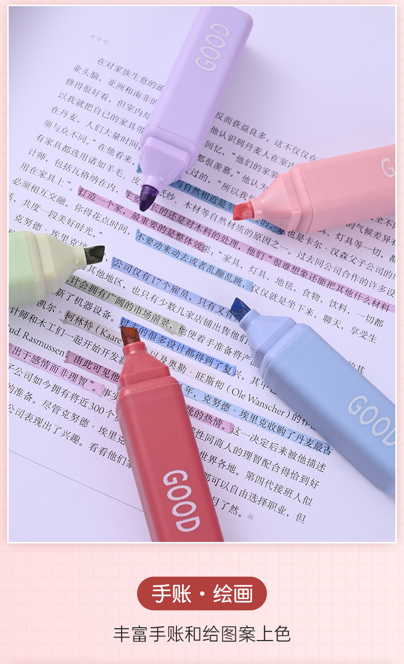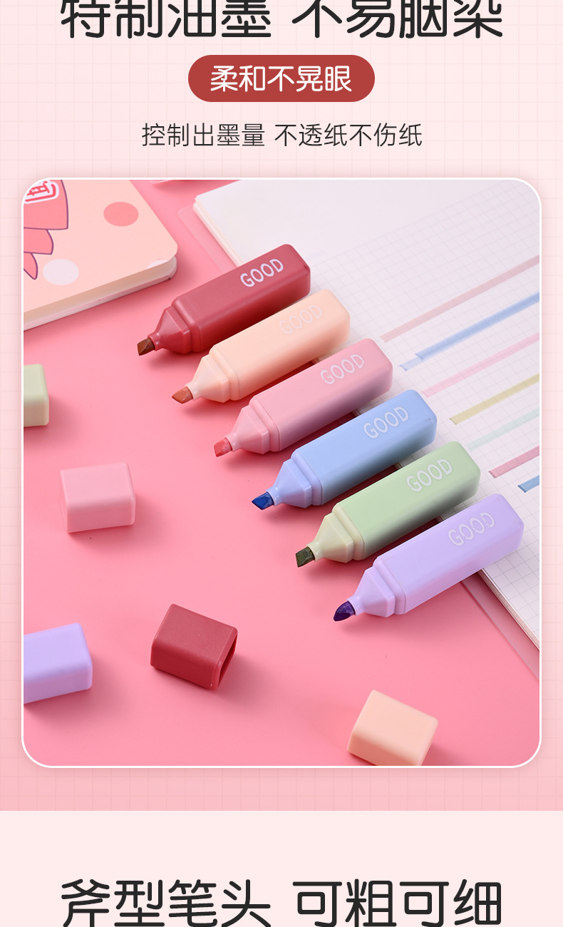 跨境6色荧光笔彩色笔学生标记笔重点淡色护眼莫兰迪手账荧光笔
