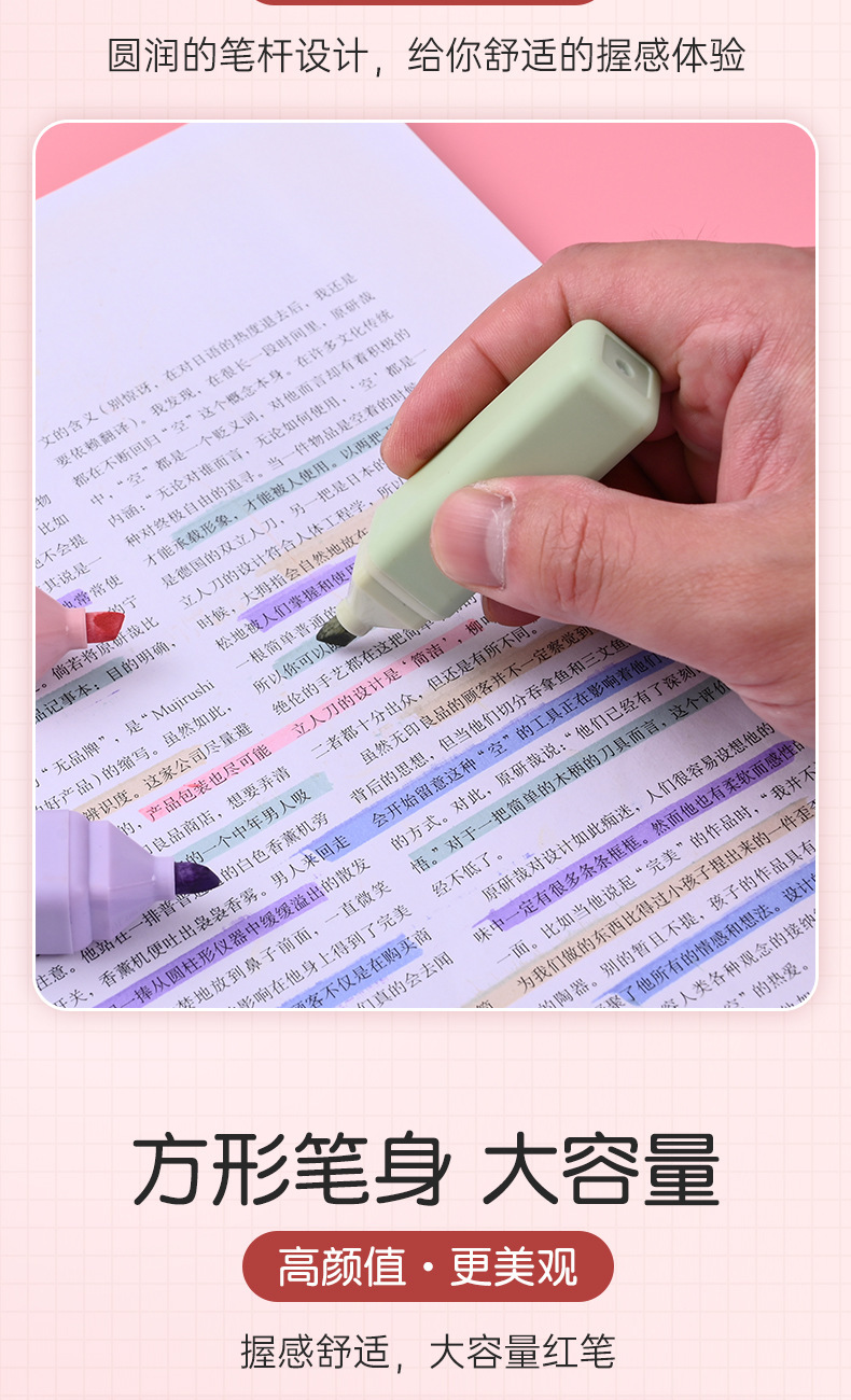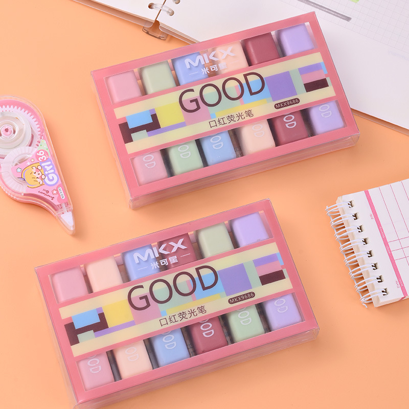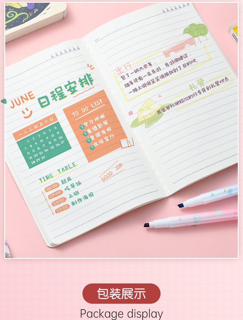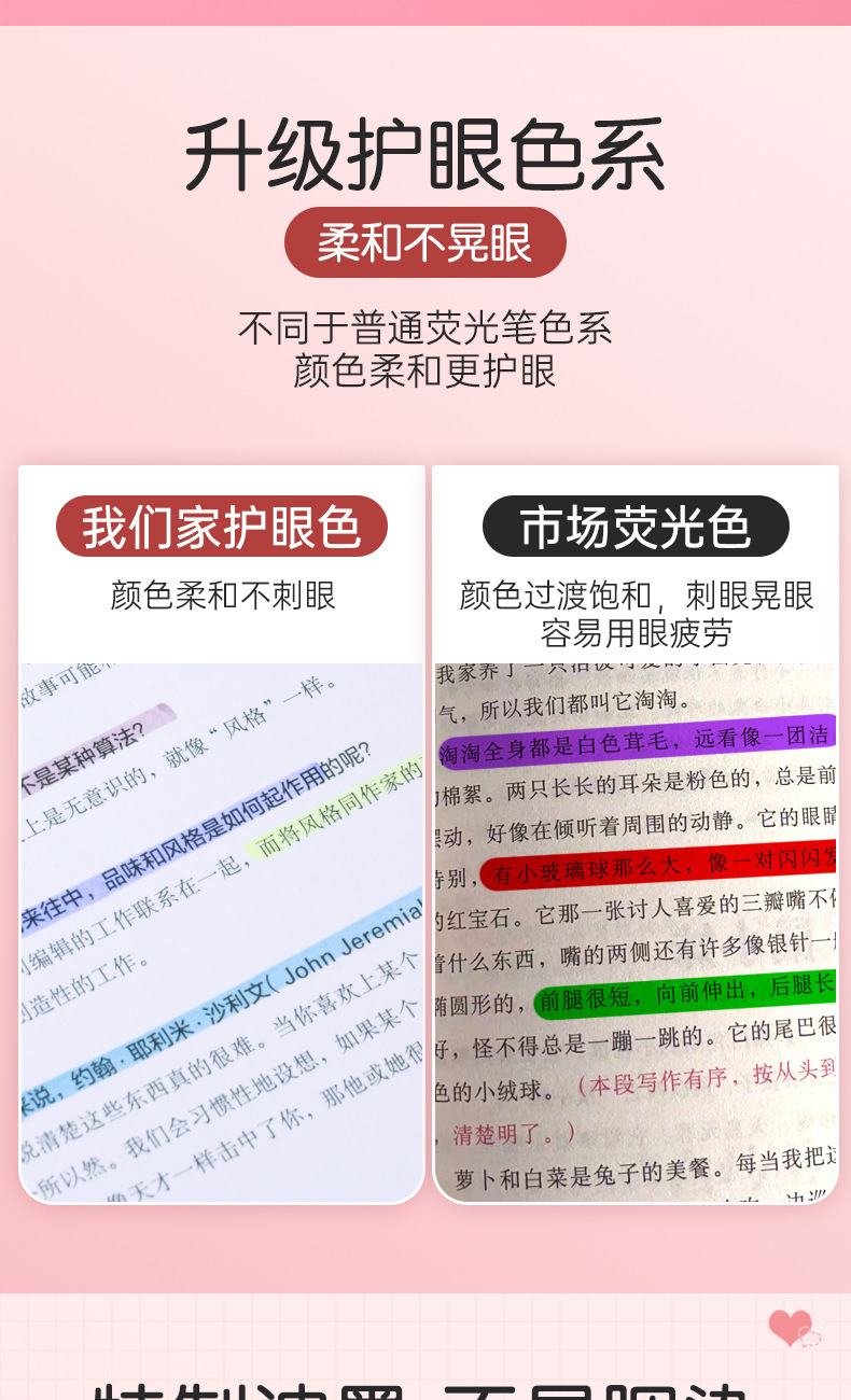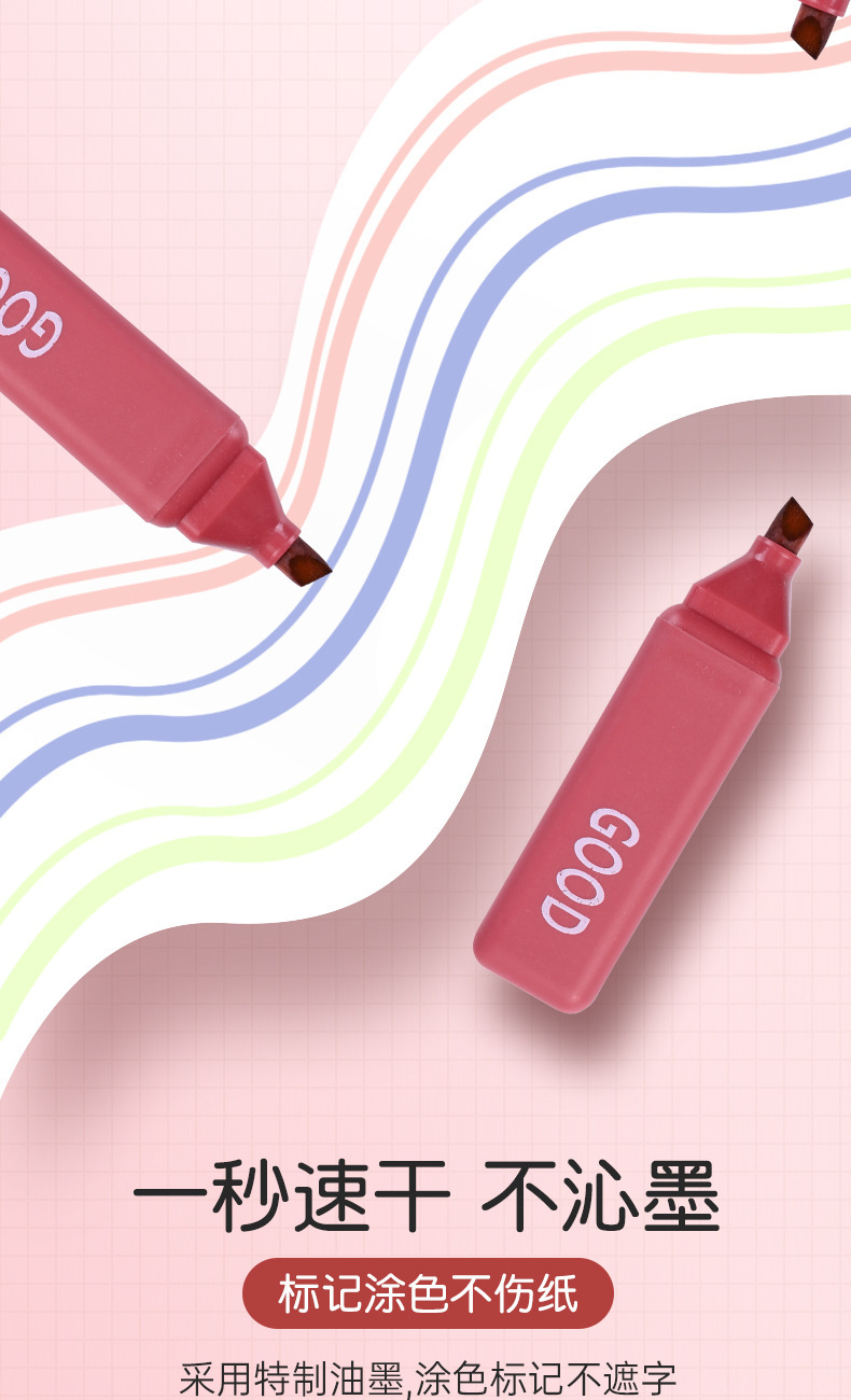 跨境6色荧光笔彩色笔学生标记笔重点淡色护眼莫兰迪手账荧光笔