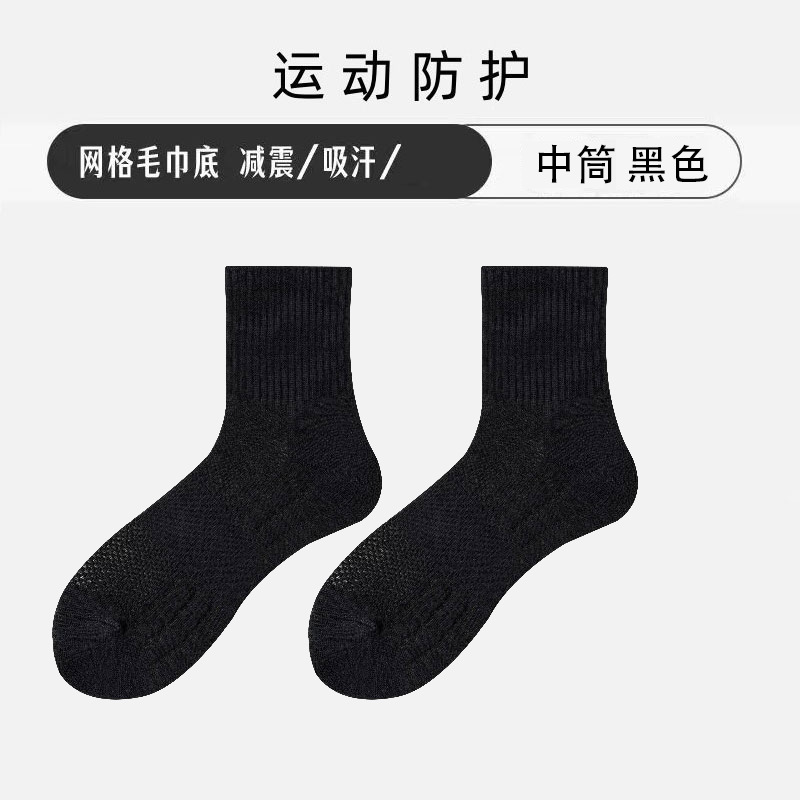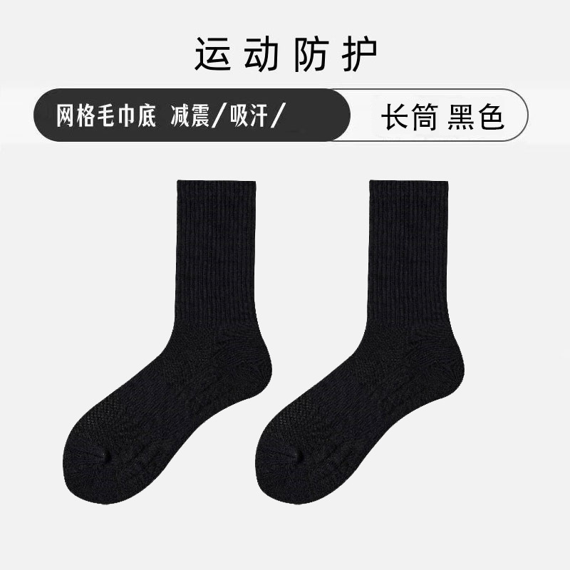 袜子男中筒袜秋冬季男士束腰高筒袜纯黑白色棉运动袜春秋长袜批发