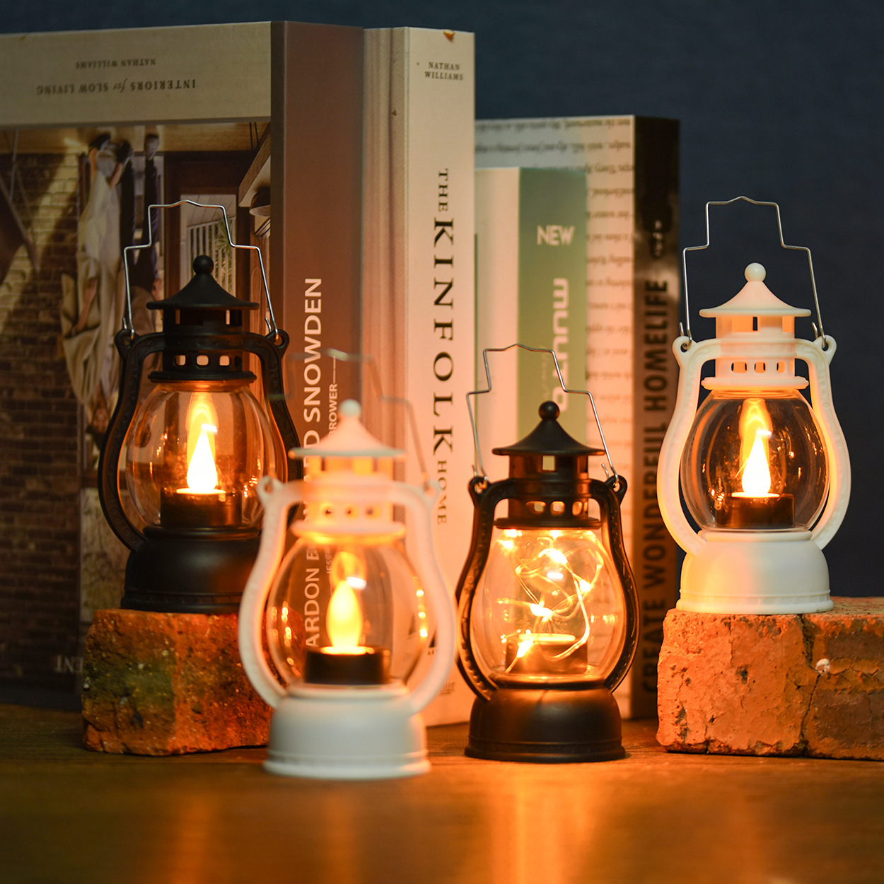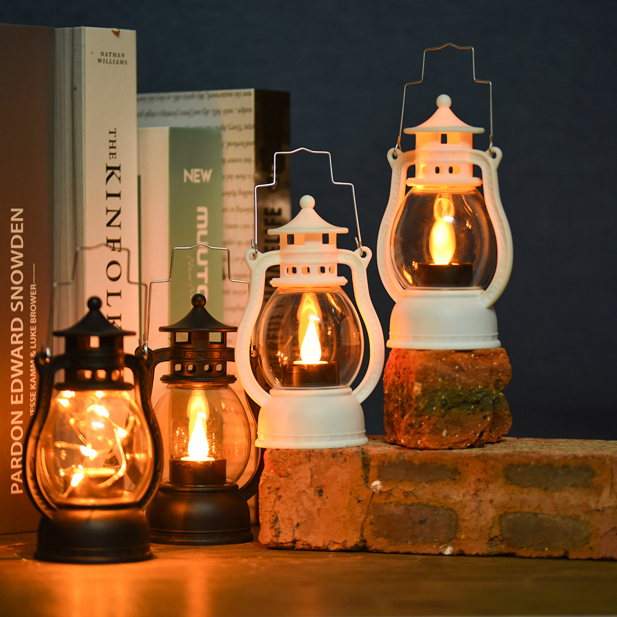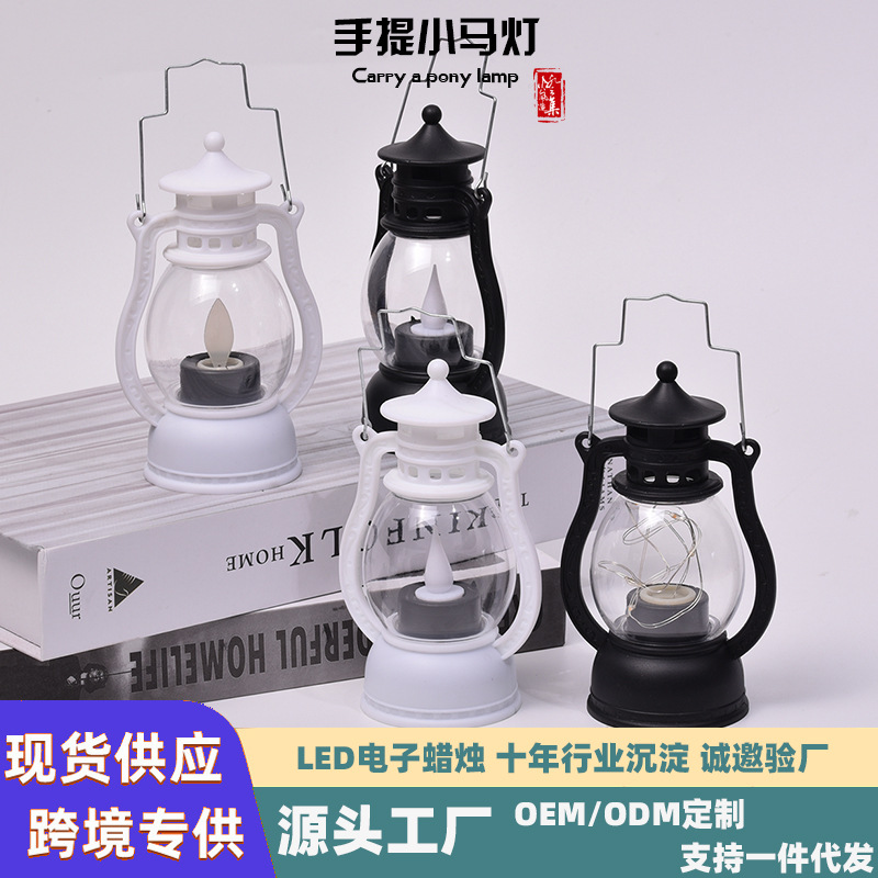 复古小马灯电子蜡烛灯跨境批发圣诞节装饰手提小油灯酒吧氛围灯
