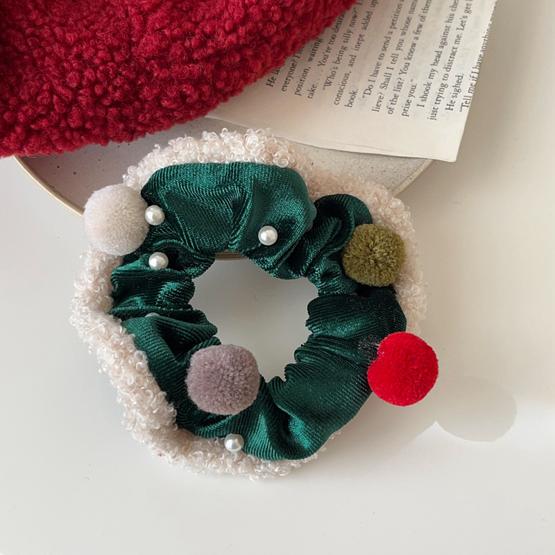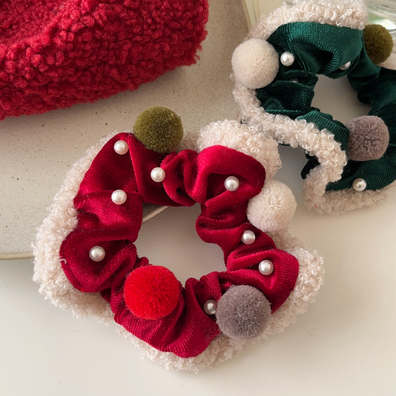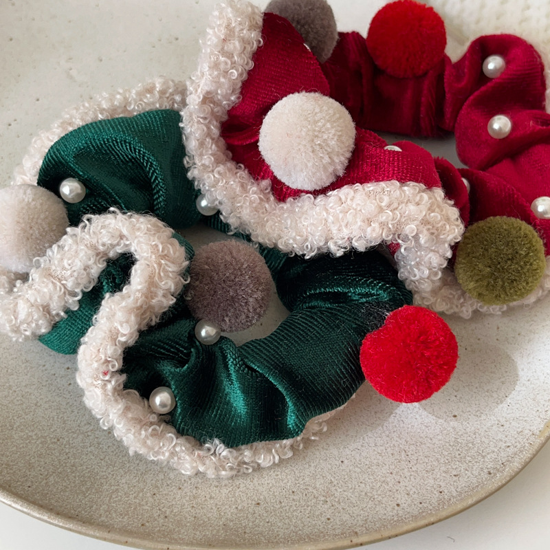 圣诞系列红绿丝绒大肠圈发绳少女心毛球头绳扎马尾皮筋发饰头饰新