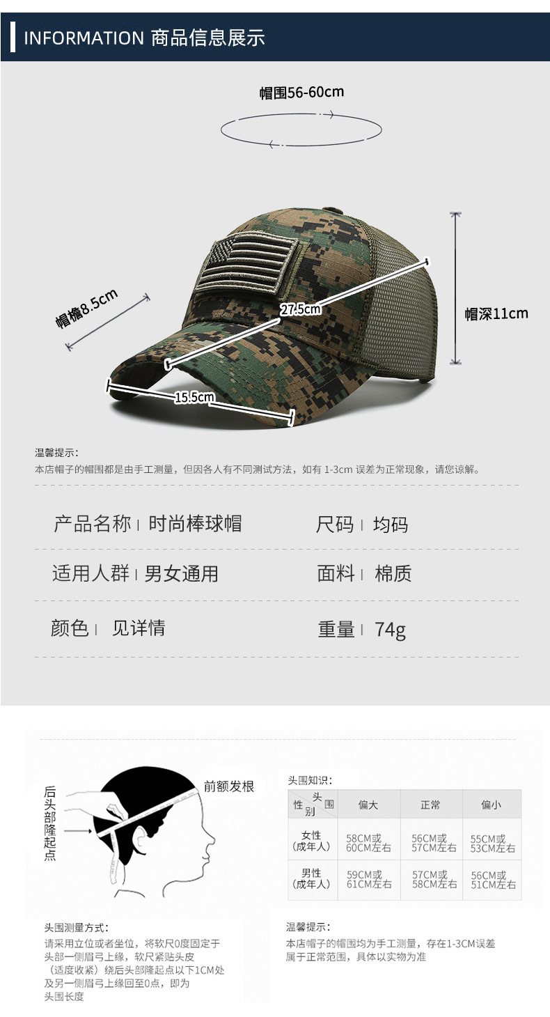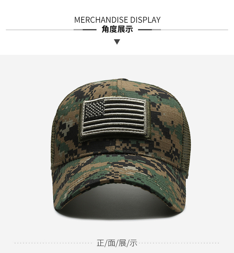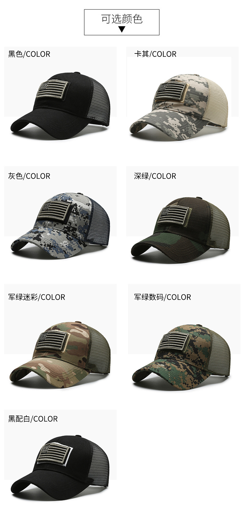 美国标志迷彩贴章绣花棒球帽网帽男士户外魔术贴鸭舌帽跨境专供