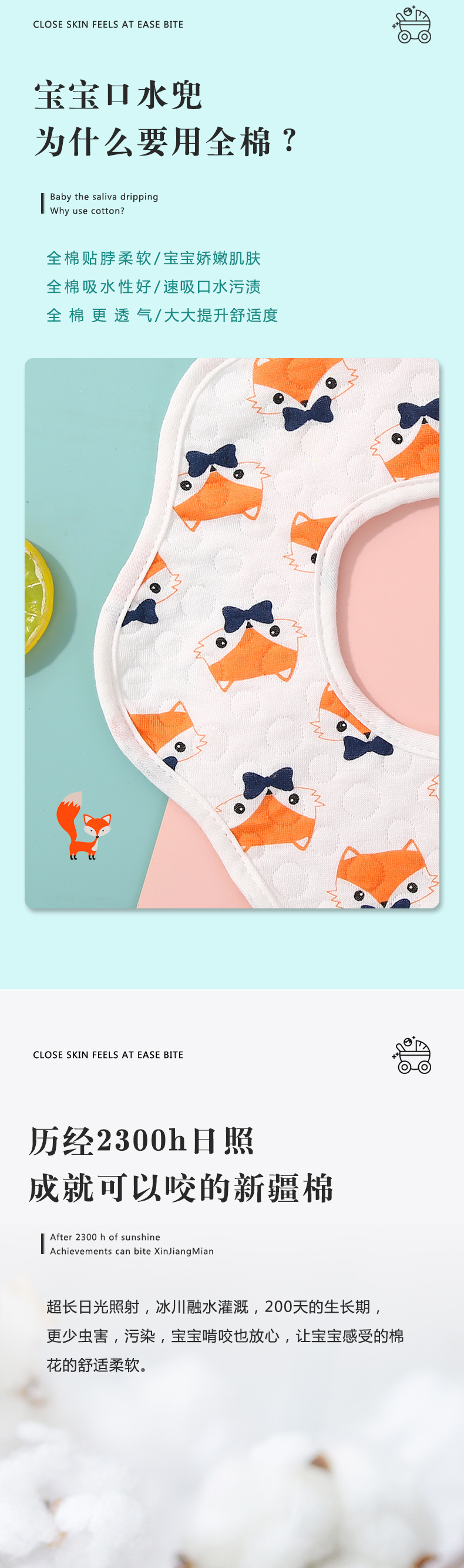 纯棉口水巾婴儿360度旋转卡通围嘴母婴用品婴幼儿宝宝防水围兜