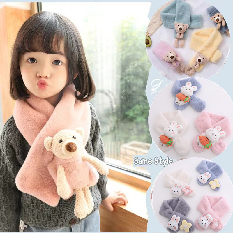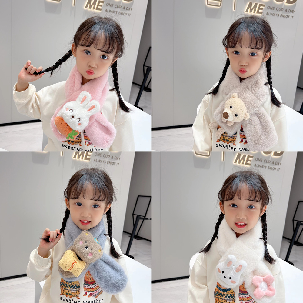 2023新款儿童围巾秋冬毛绒宝宝围巾亲子仿兔毛围脖卡通围巾儿童