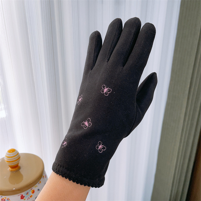 女士手套冬德绒加绒加厚保暖触屏骑行开车蝴蝶结可爱学生休闲手套