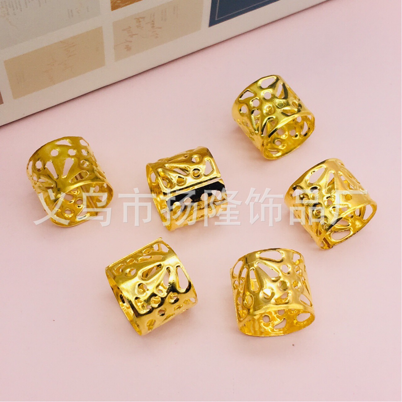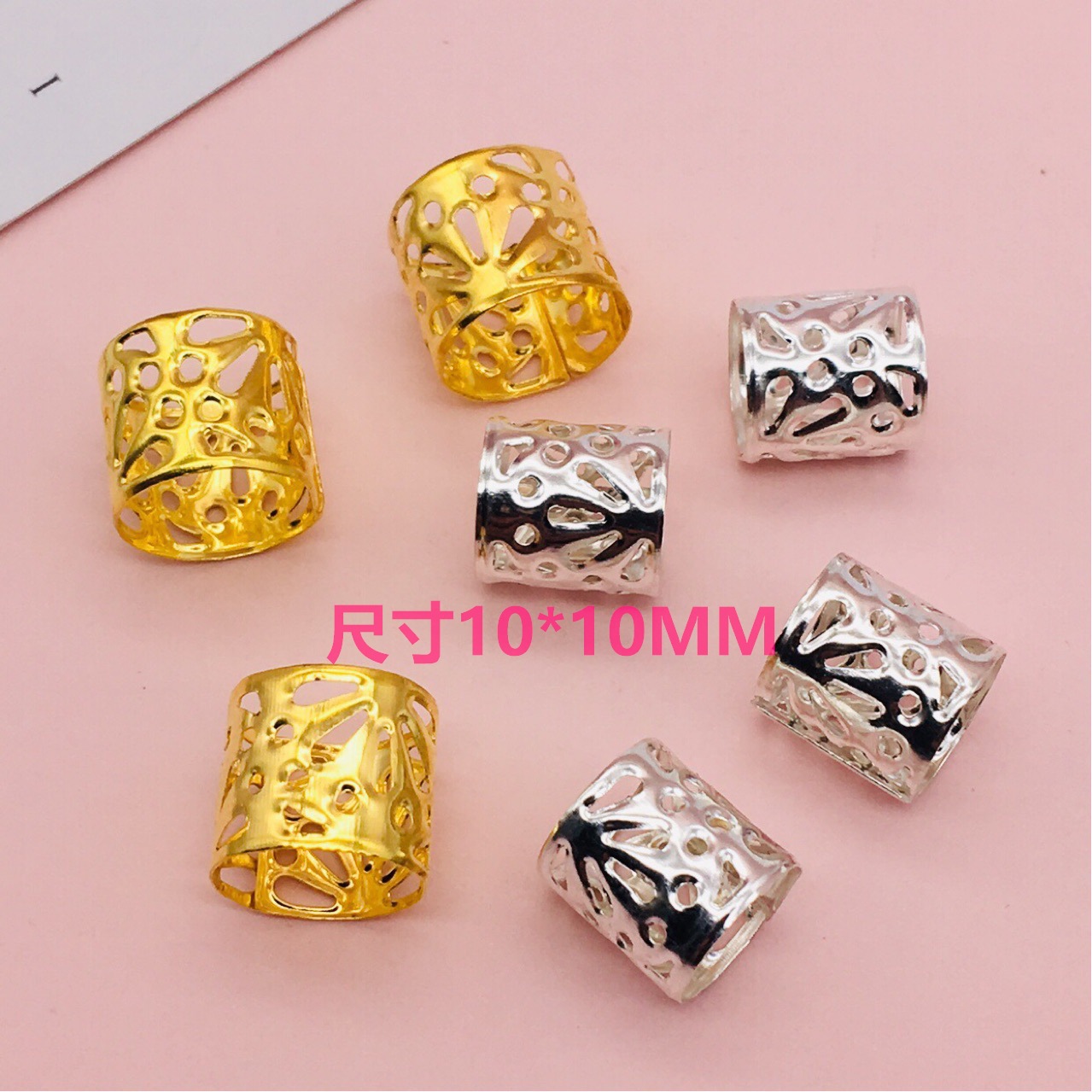 10*10跨境非洲电镀镂空脏辫扣假发接发环接发扣儿童 DIY头饰配件