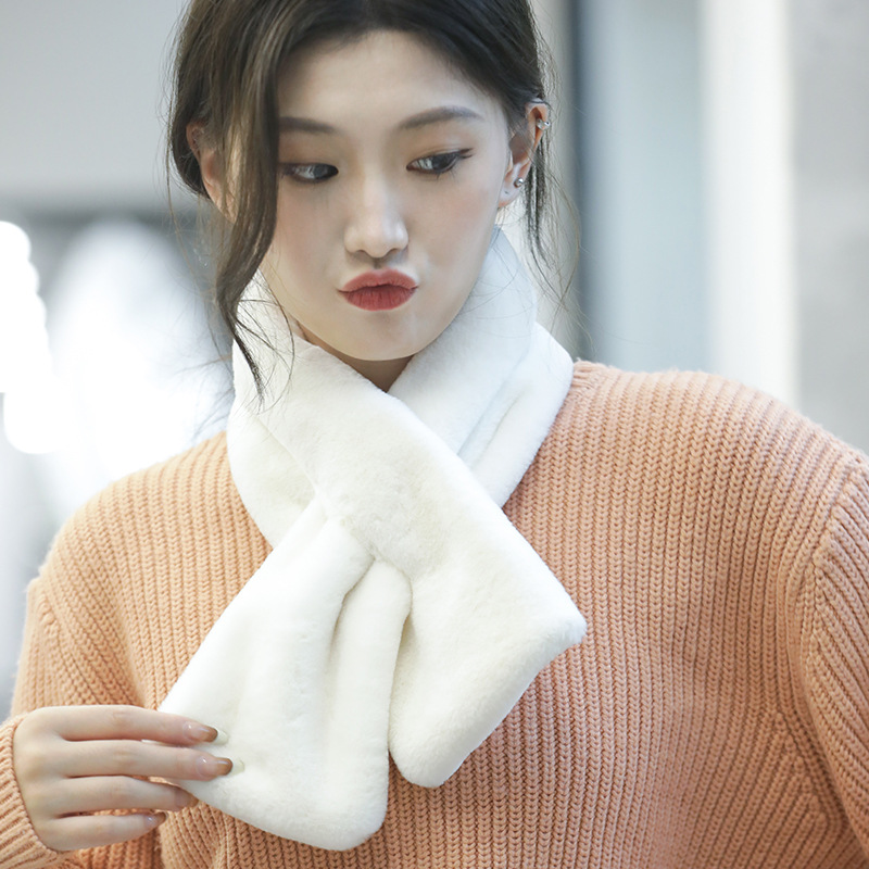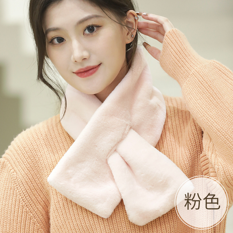 珍珠围巾女毛绒围脖冬季仿獭毛加厚保暖时尚百搭韩版纯色护颈围巾
