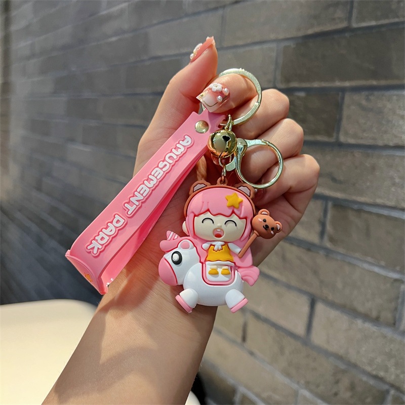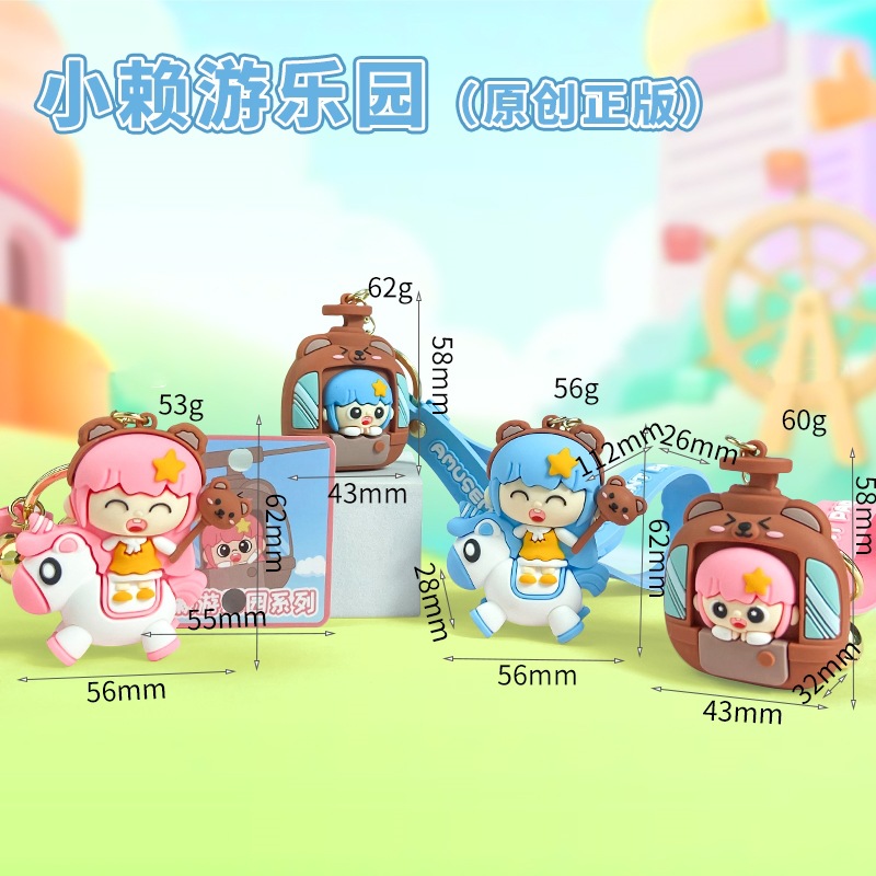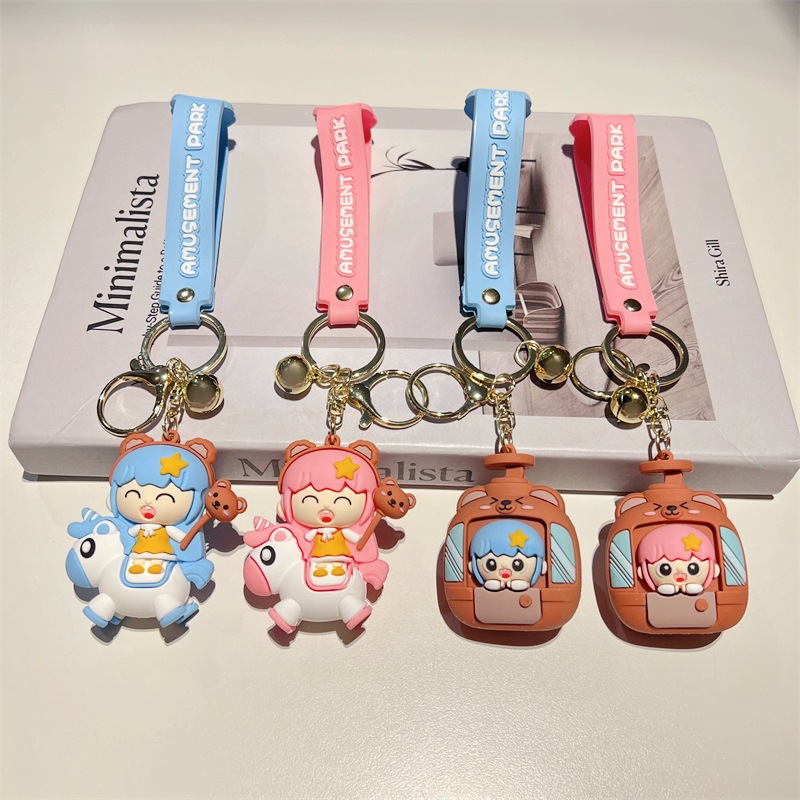 正版创意小赖游乐园钥匙扣可爱木马女孩小熊女孩钥匙链男女包挂件