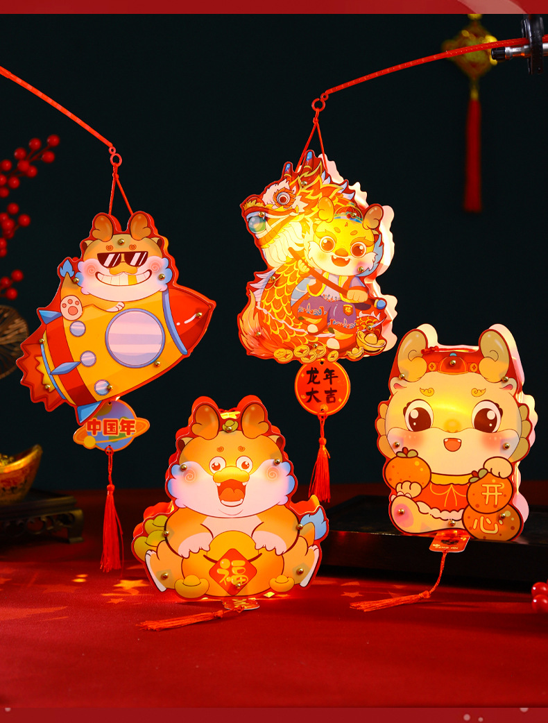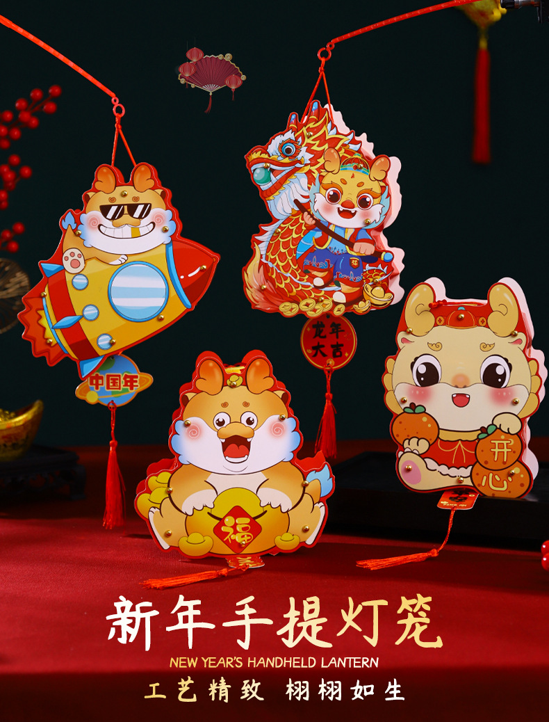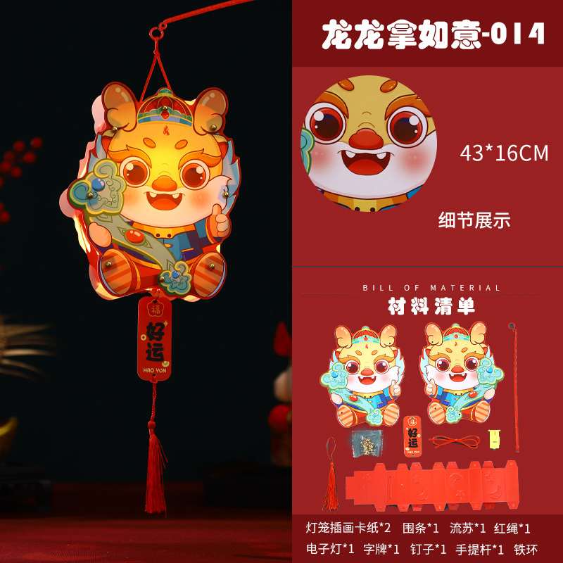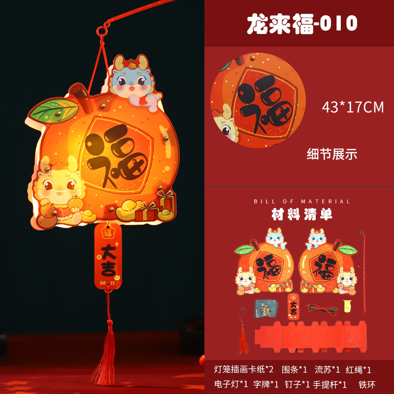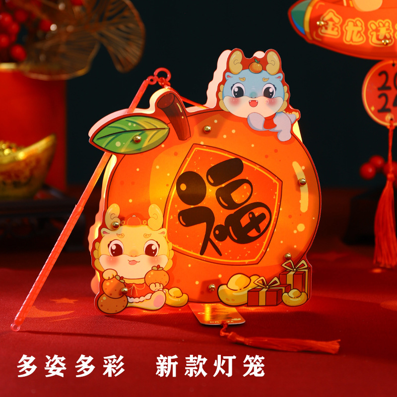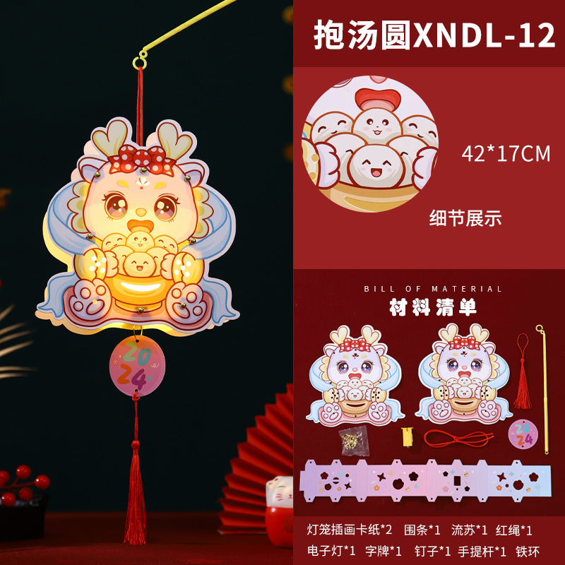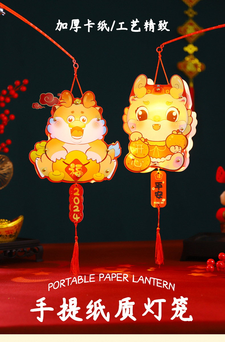 2024龙年新年灯笼元宵节手提发光灯笼儿童diy材料包元旦花灯宫灯
