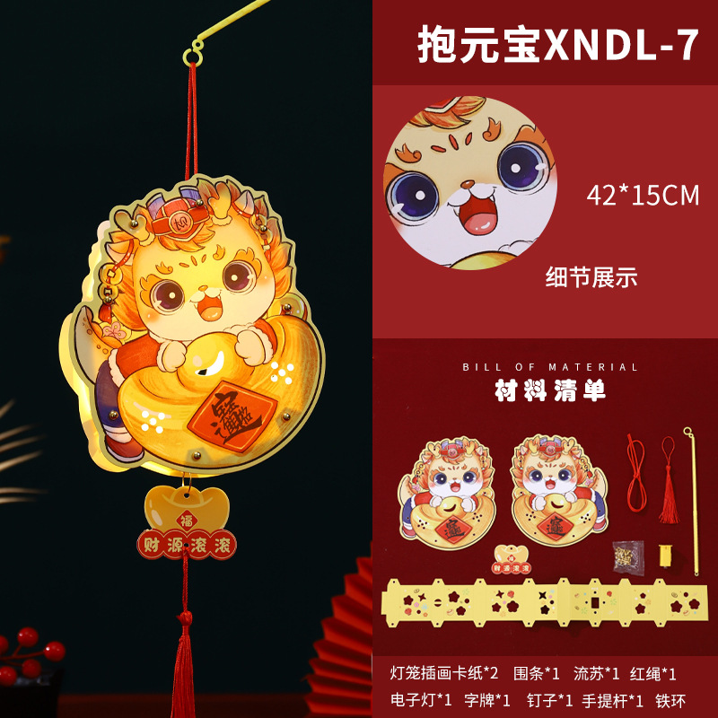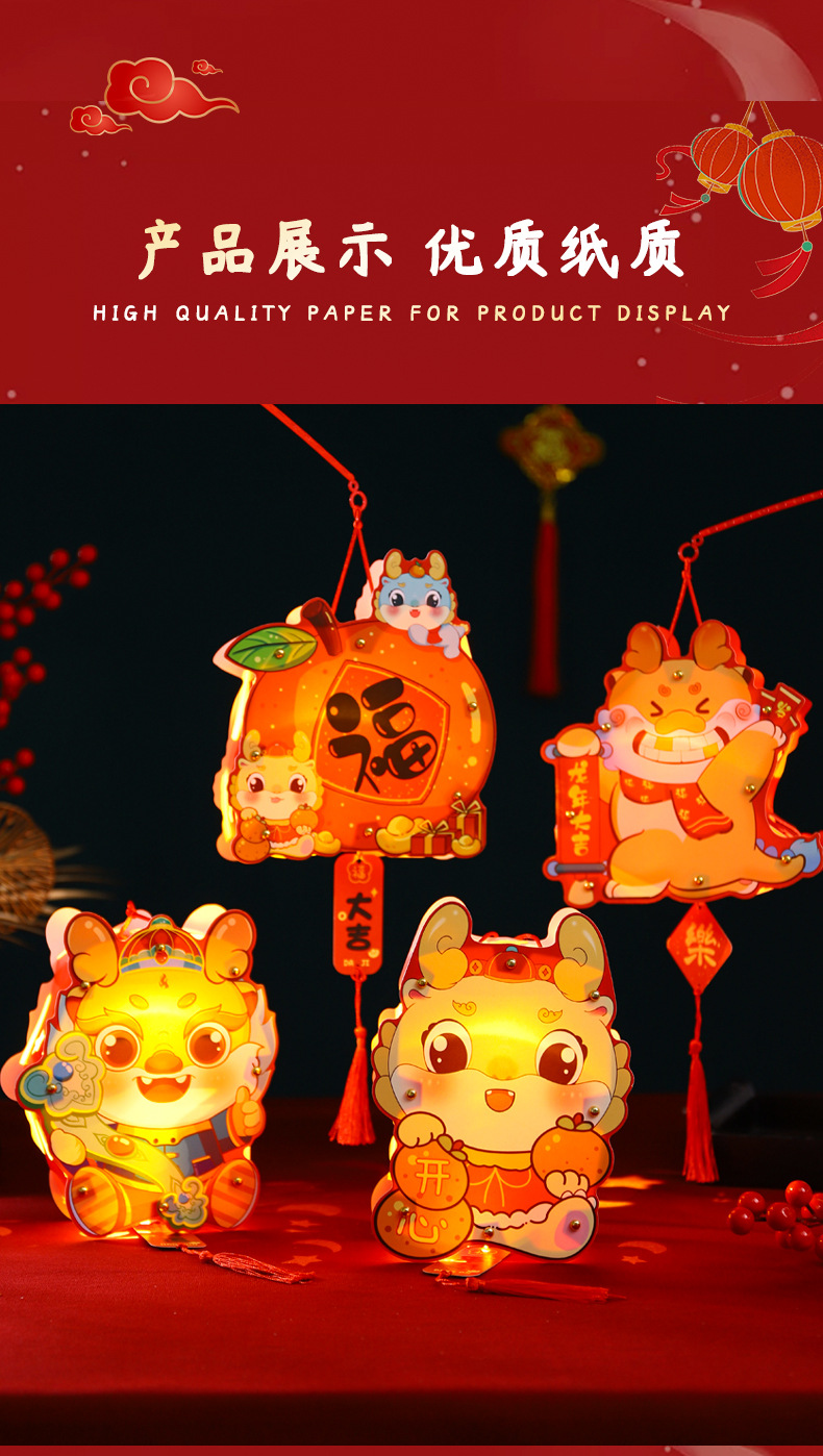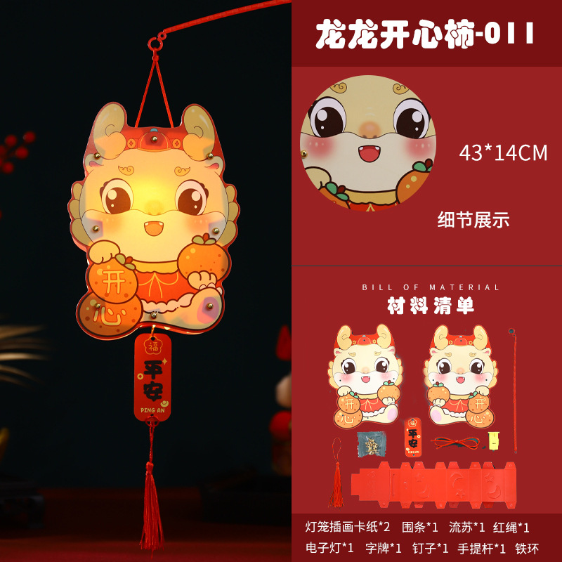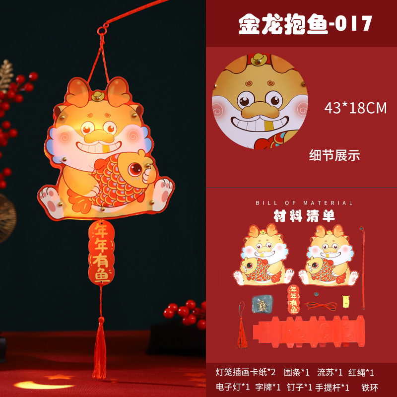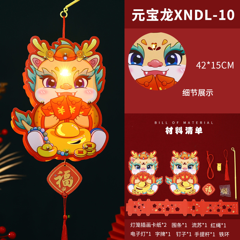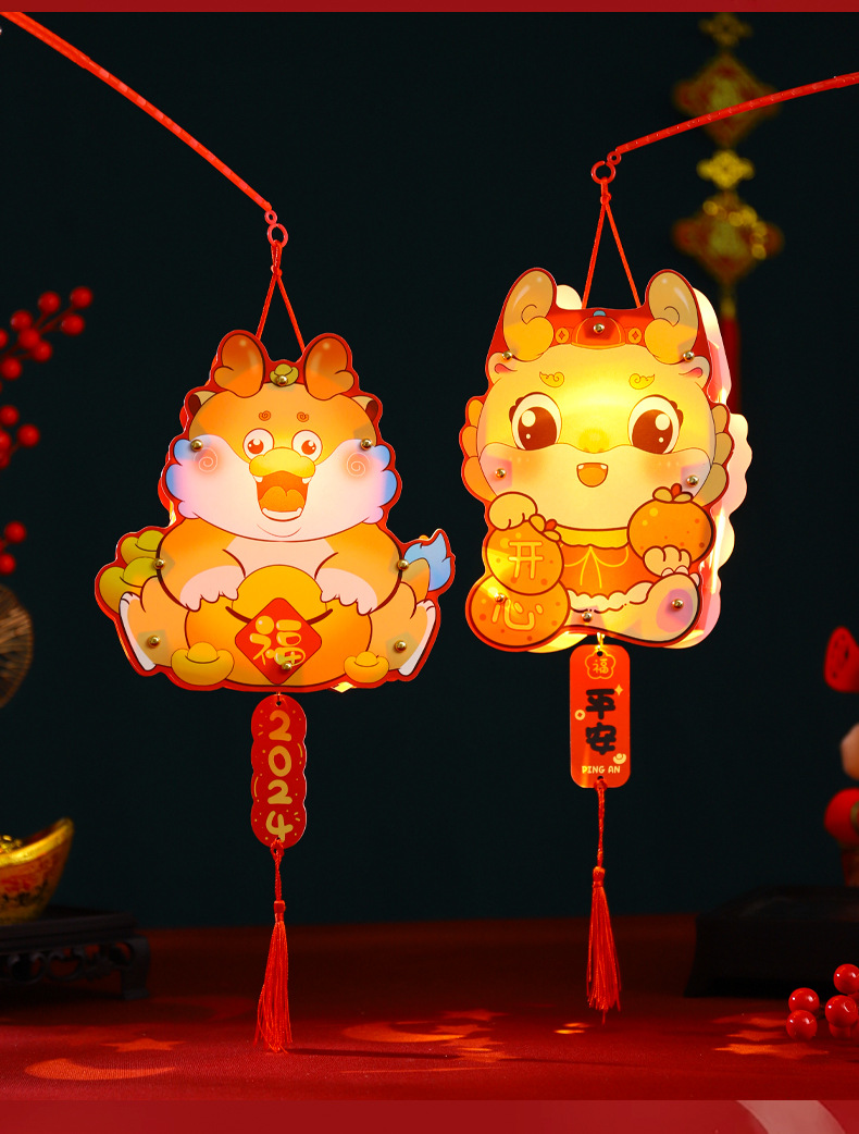 2024龙年新年灯笼元宵节手提发光灯笼儿童diy材料包元旦花灯宫灯