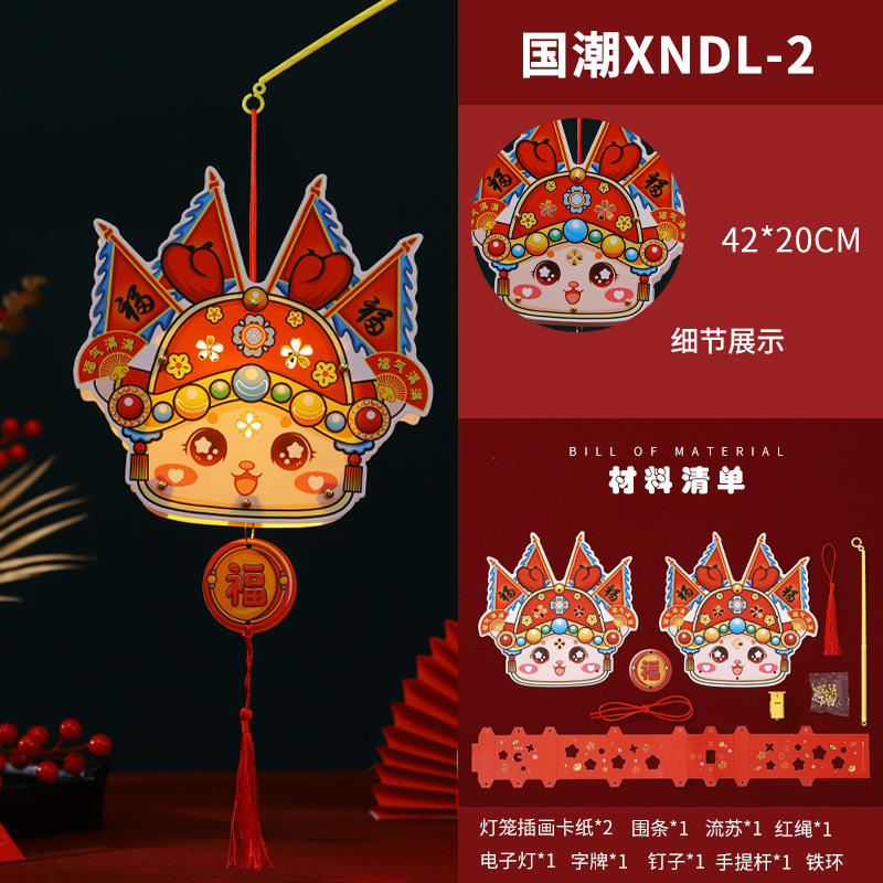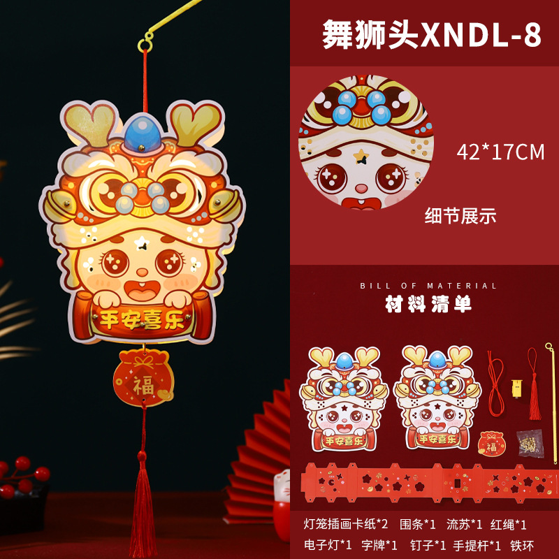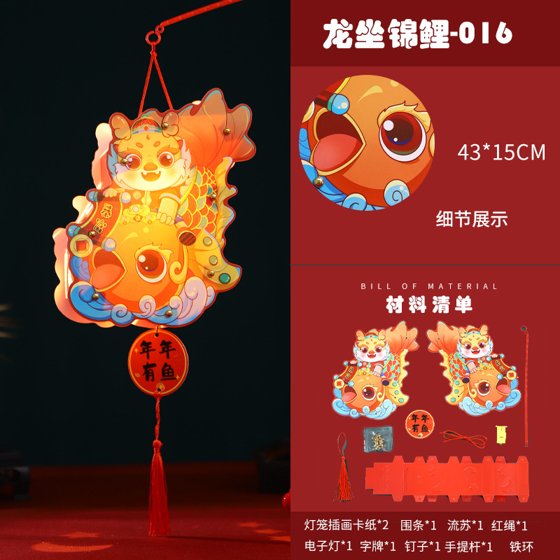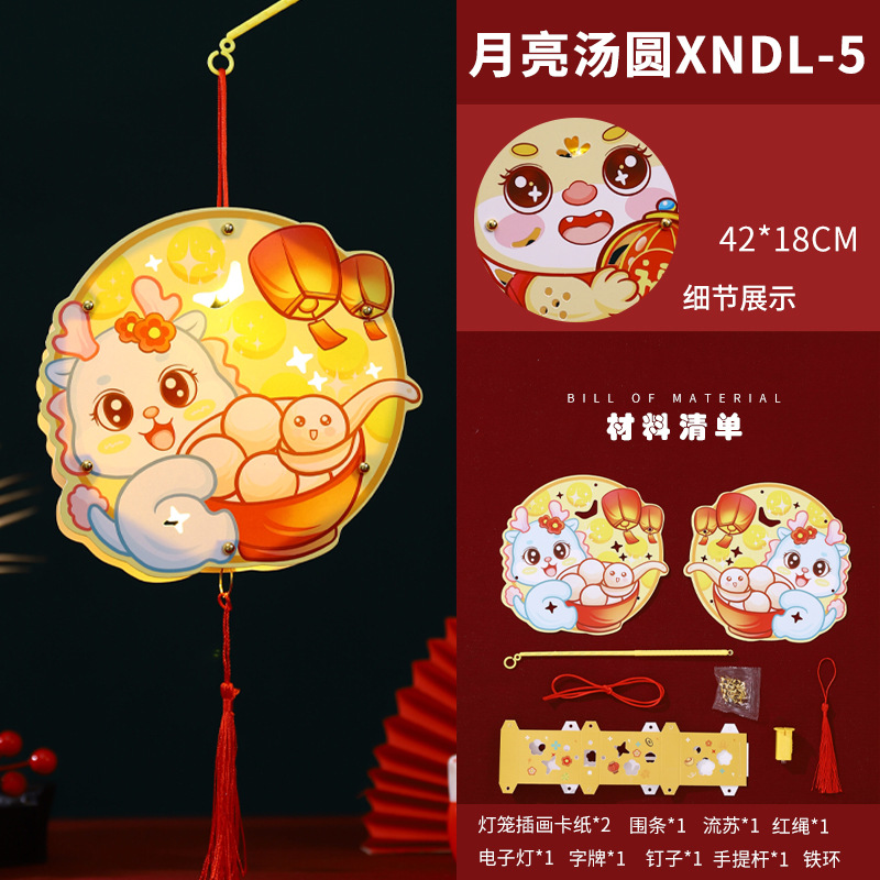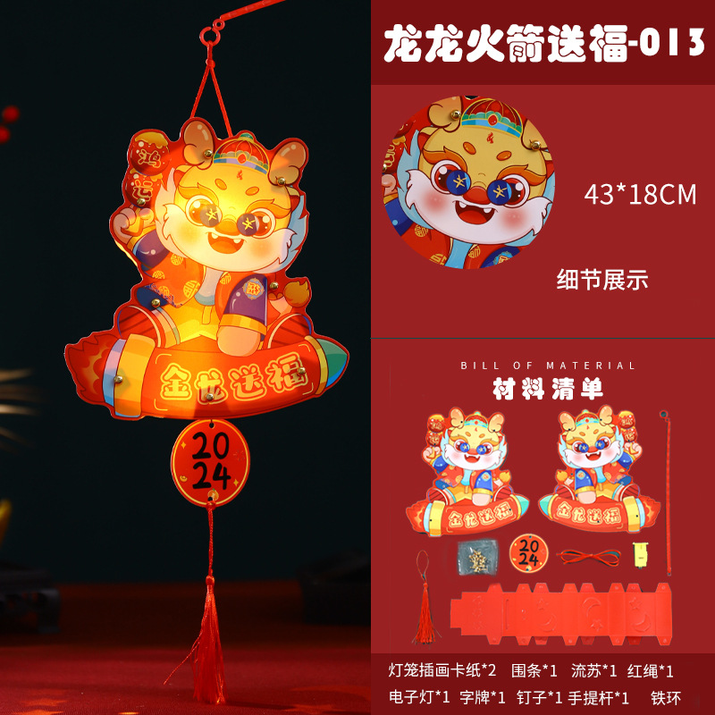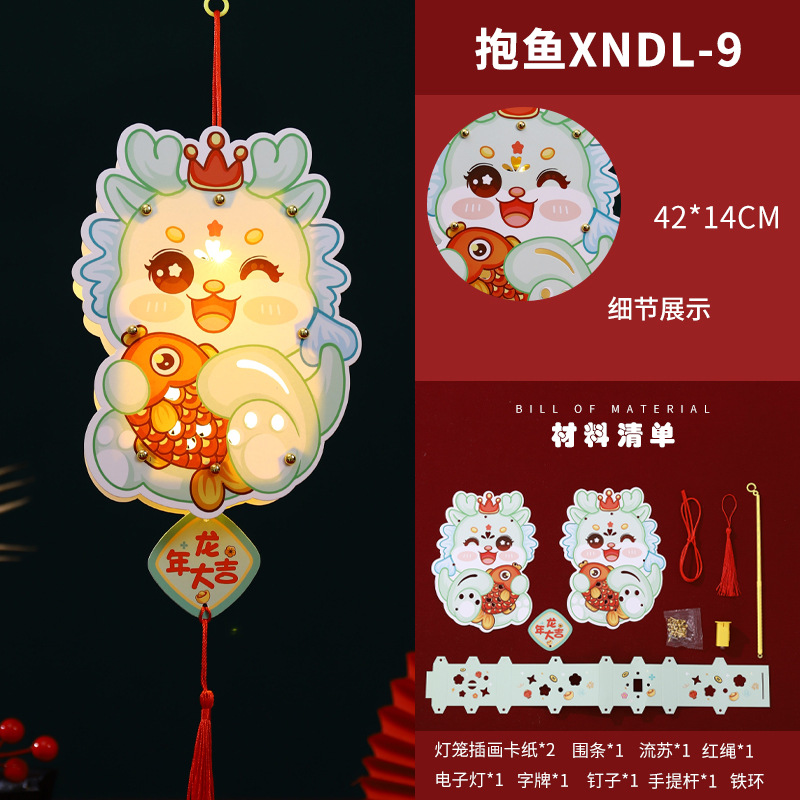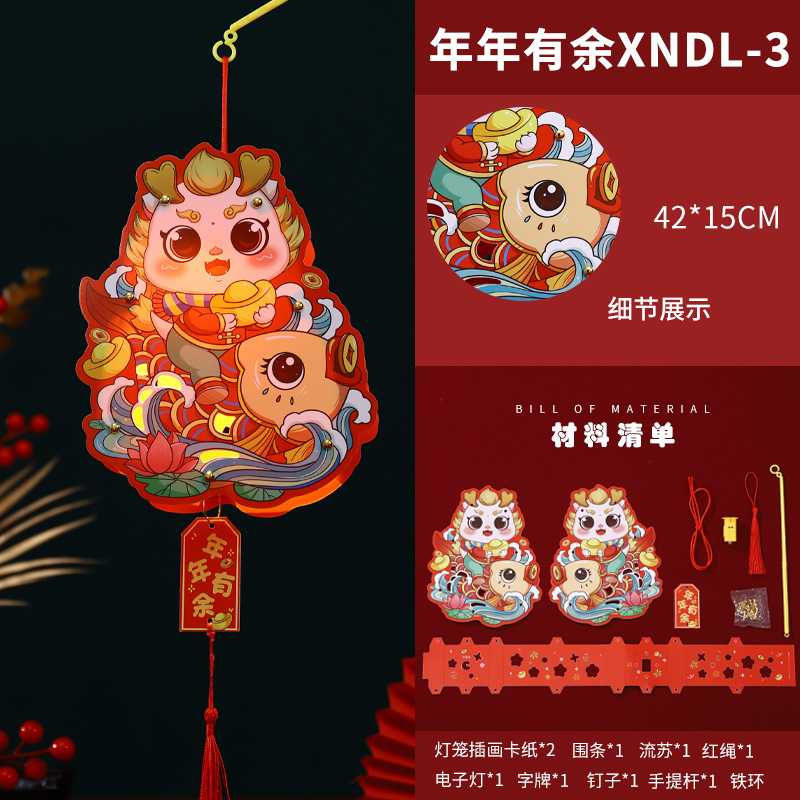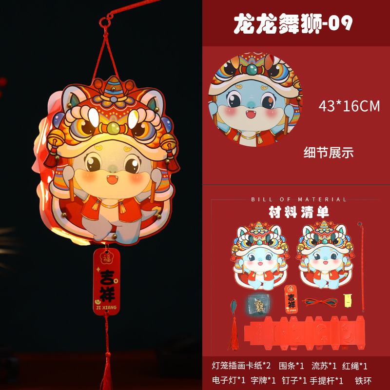 2024龙年新年灯笼元宵节手提发光灯笼儿童diy材料包元旦花灯宫灯
