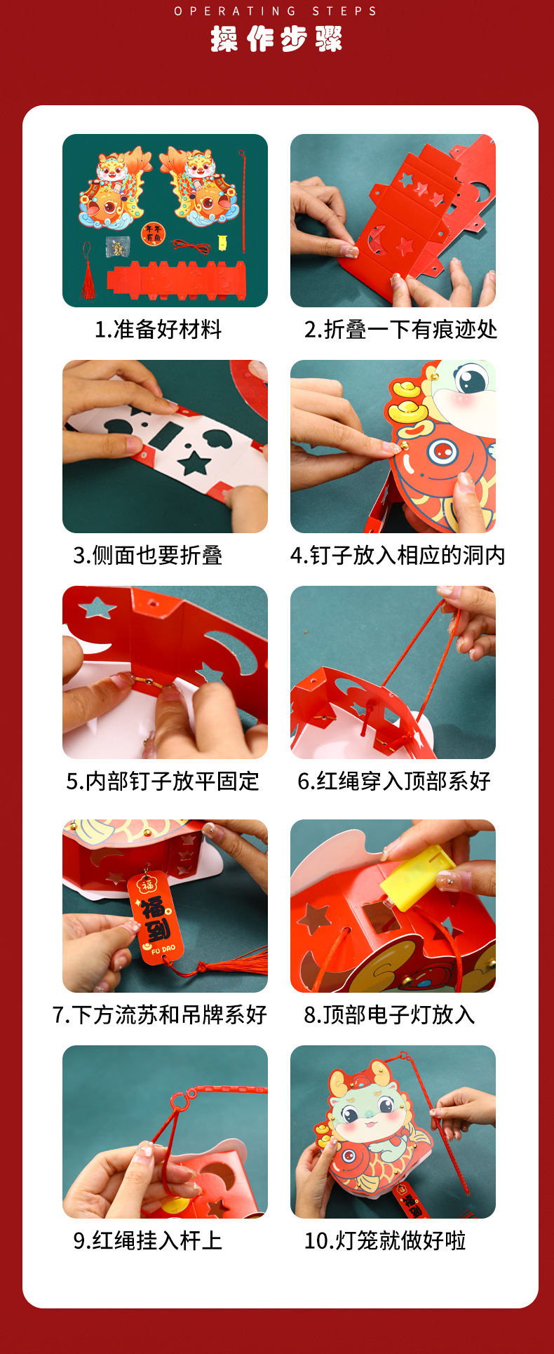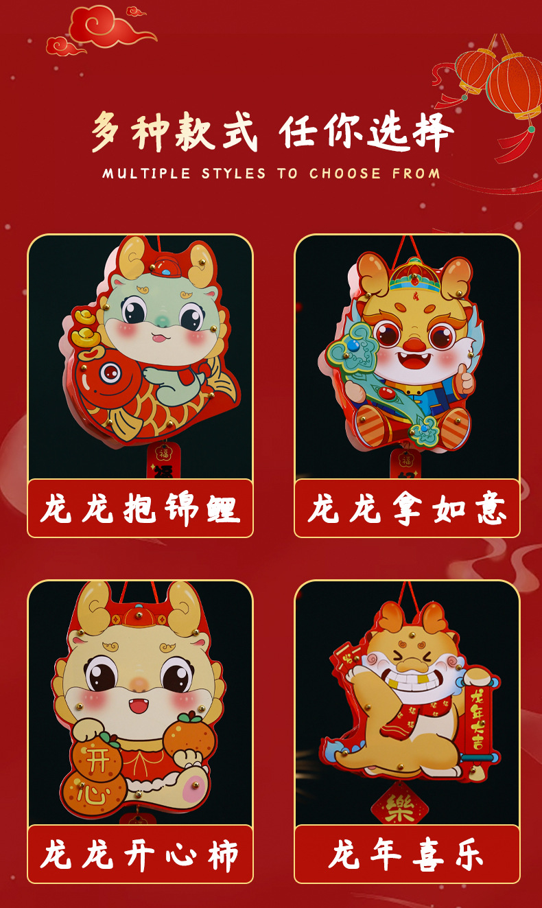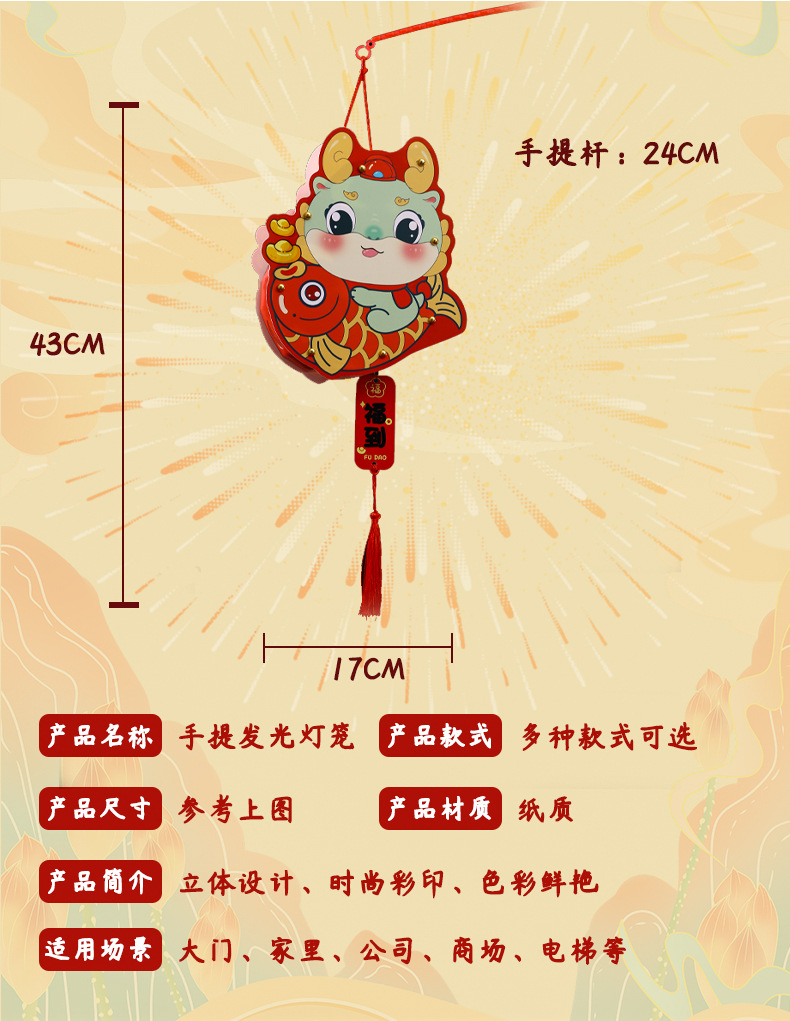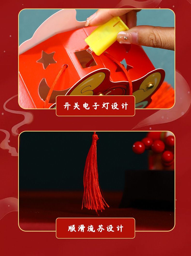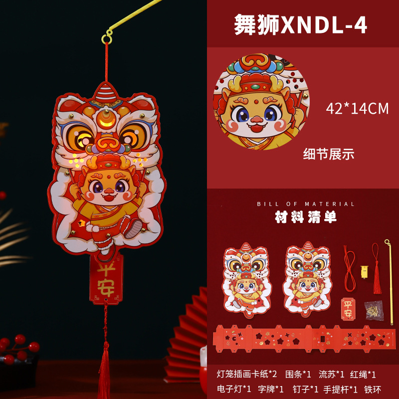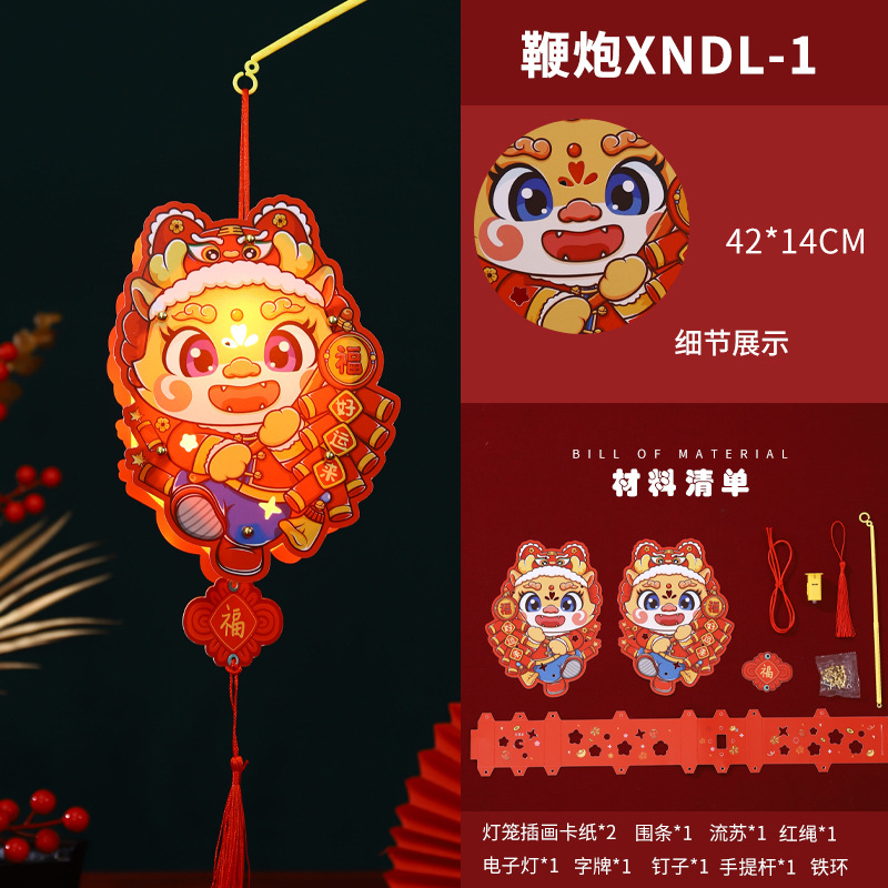 2024龙年新年灯笼元宵节手提发光灯笼儿童diy材料包元旦花灯宫灯